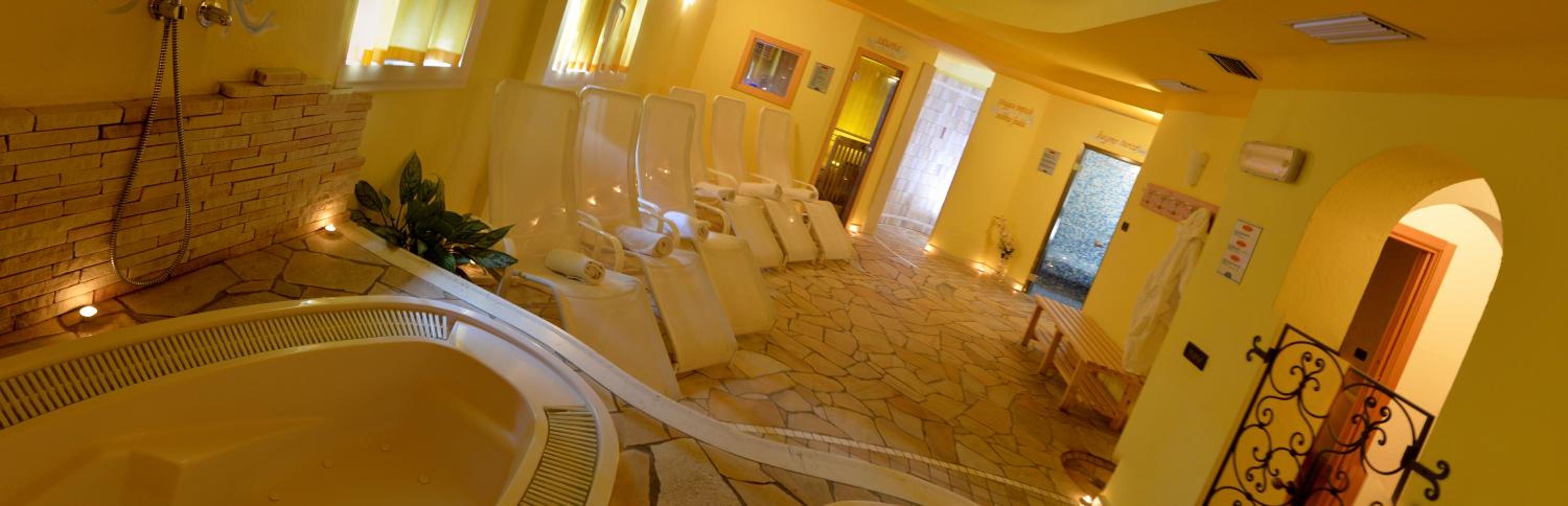 A hot tub in the spa is available at an extra cost.