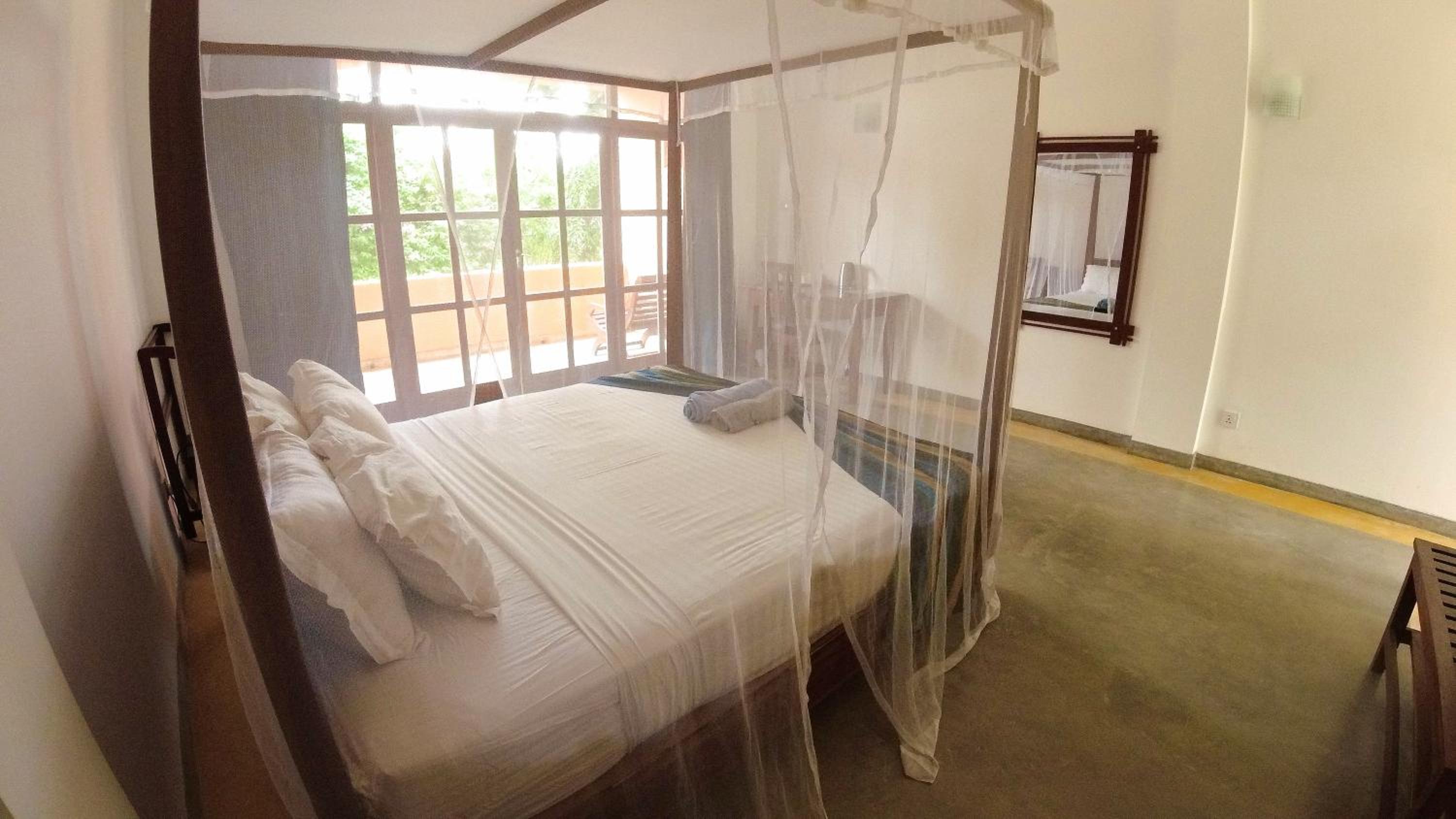 Experience comfort and elegance with our rooms featuring four-poster beds, balconies, and modern amenities like fans and en suite bathrooms.