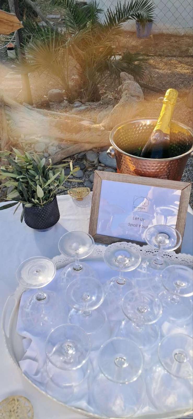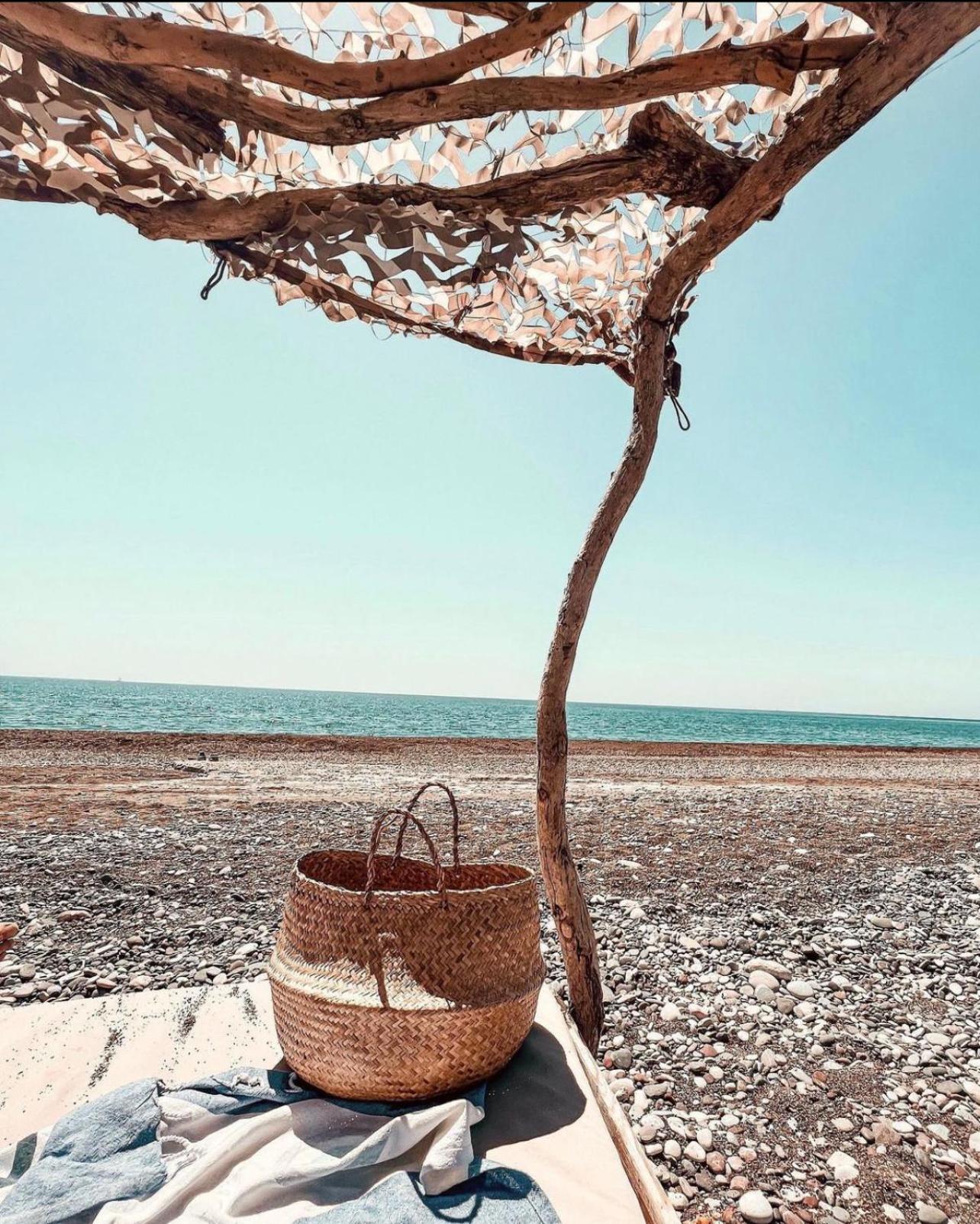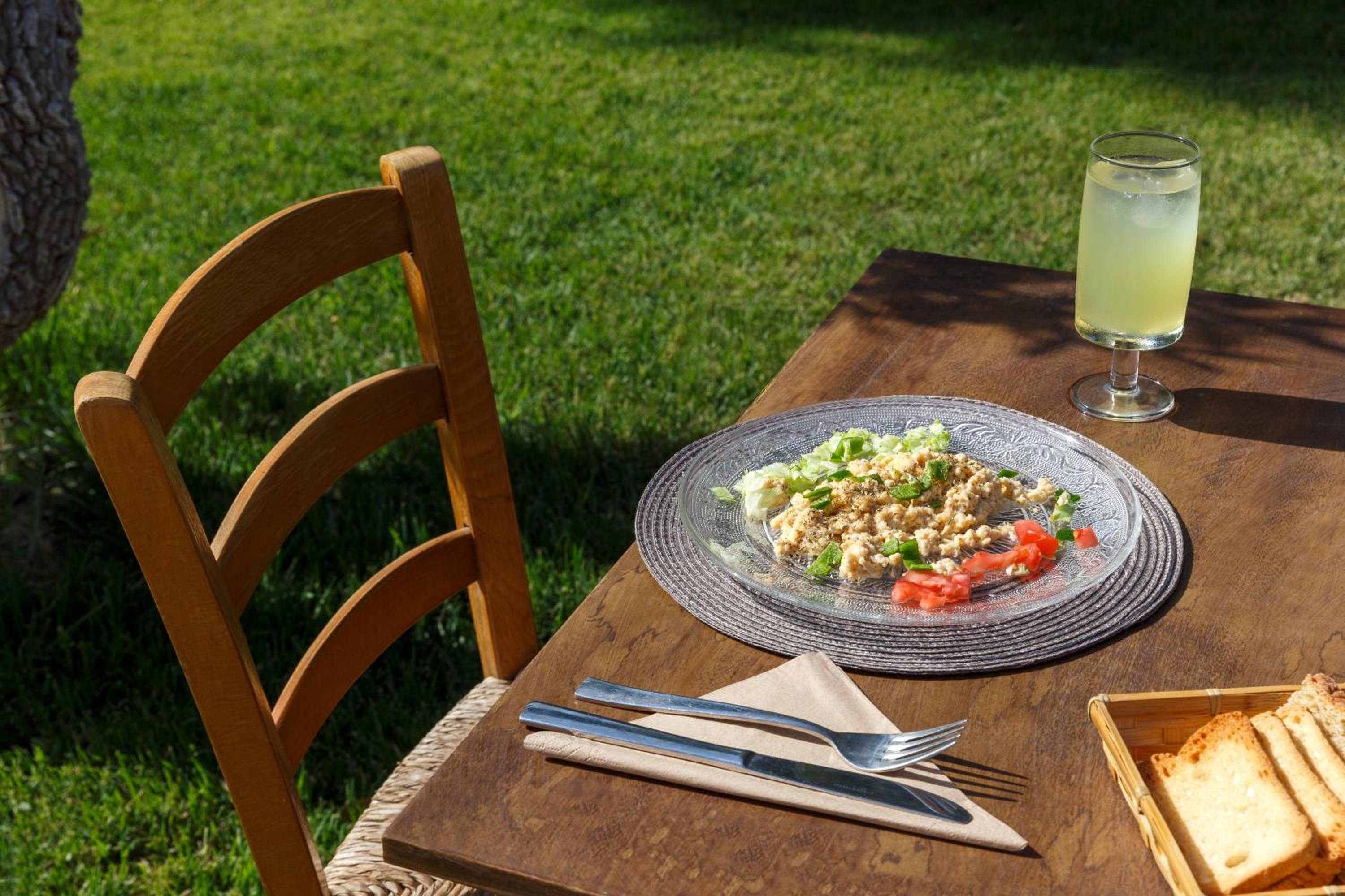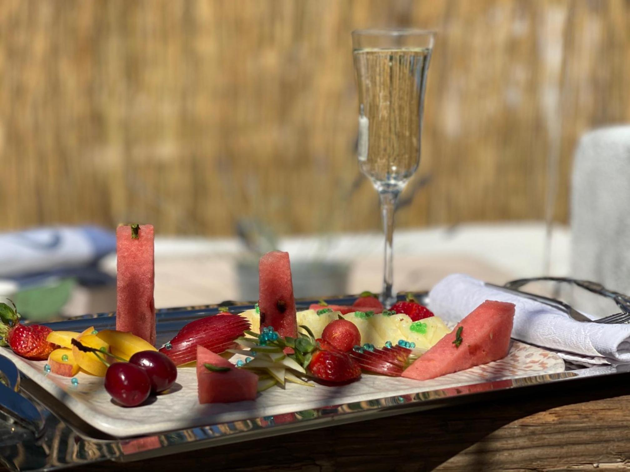 Breakfast with feet in the sand in a beautiful garden close to the beach.