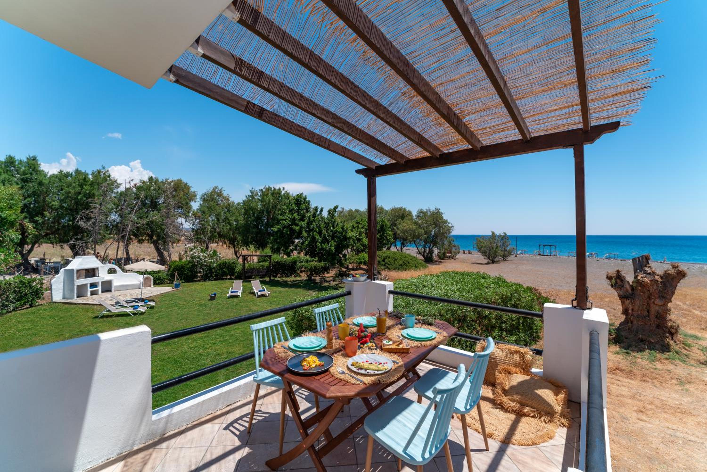 Sehr ruhig und direkt am Strand mit sehr gutem Frühstück. Sehr gepflegter Garten. Fussläufig ist ein Dorf mit sehr guten Tavernen und Einkaufsmöglichkeiten. Wir haben uns sehr wohlgefühlt, zum Relaxen ein wunderbarer Ort.