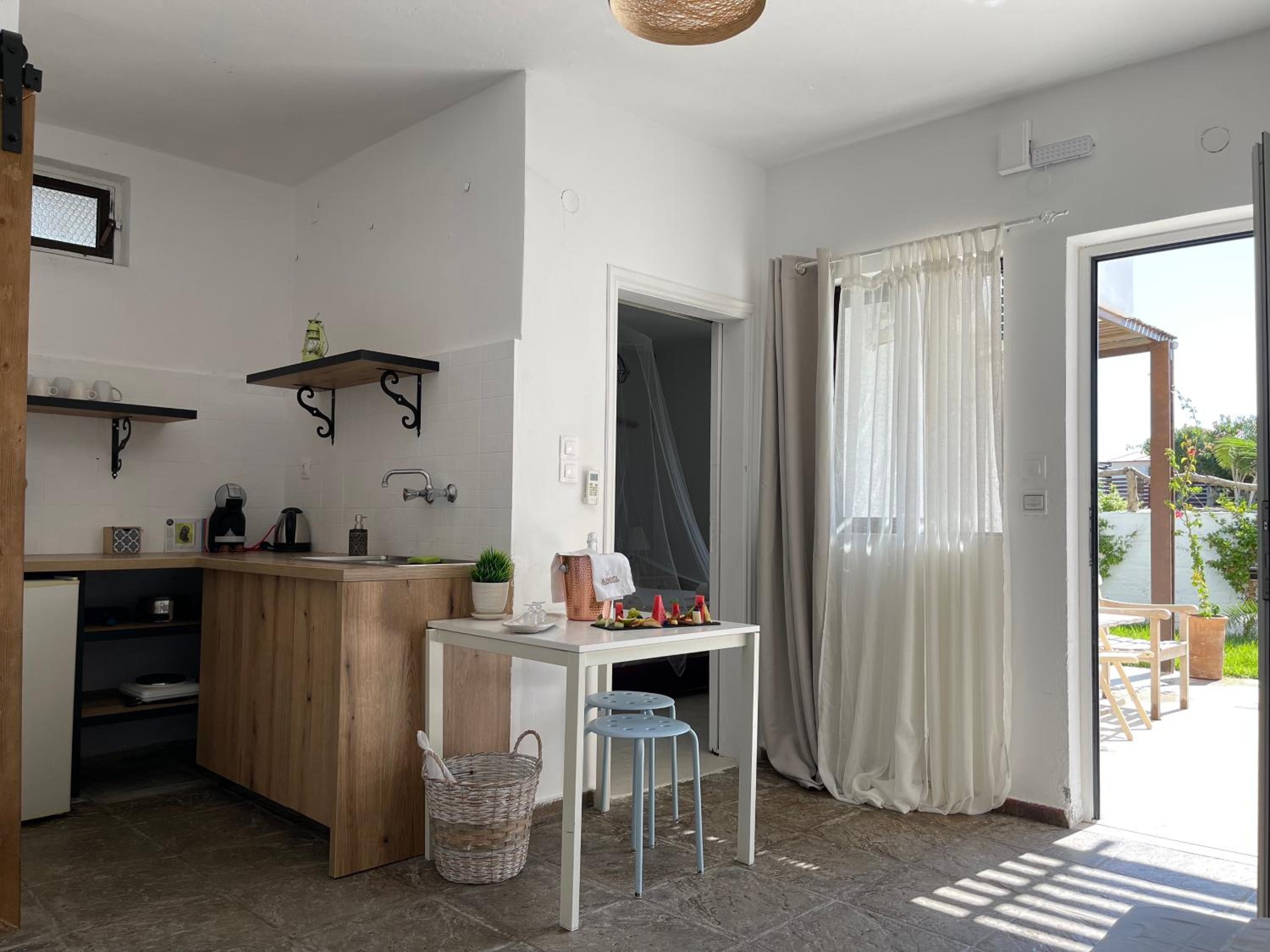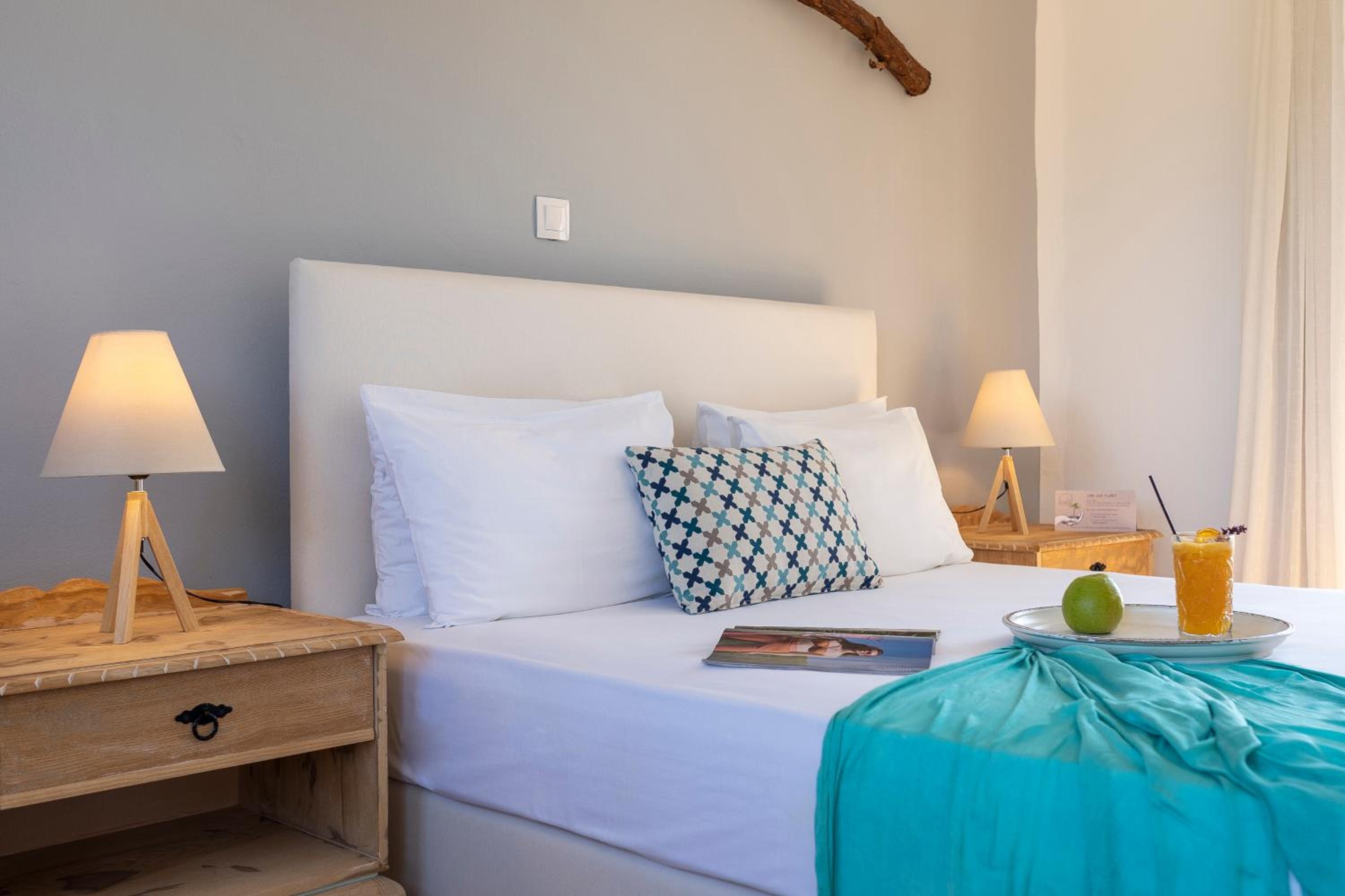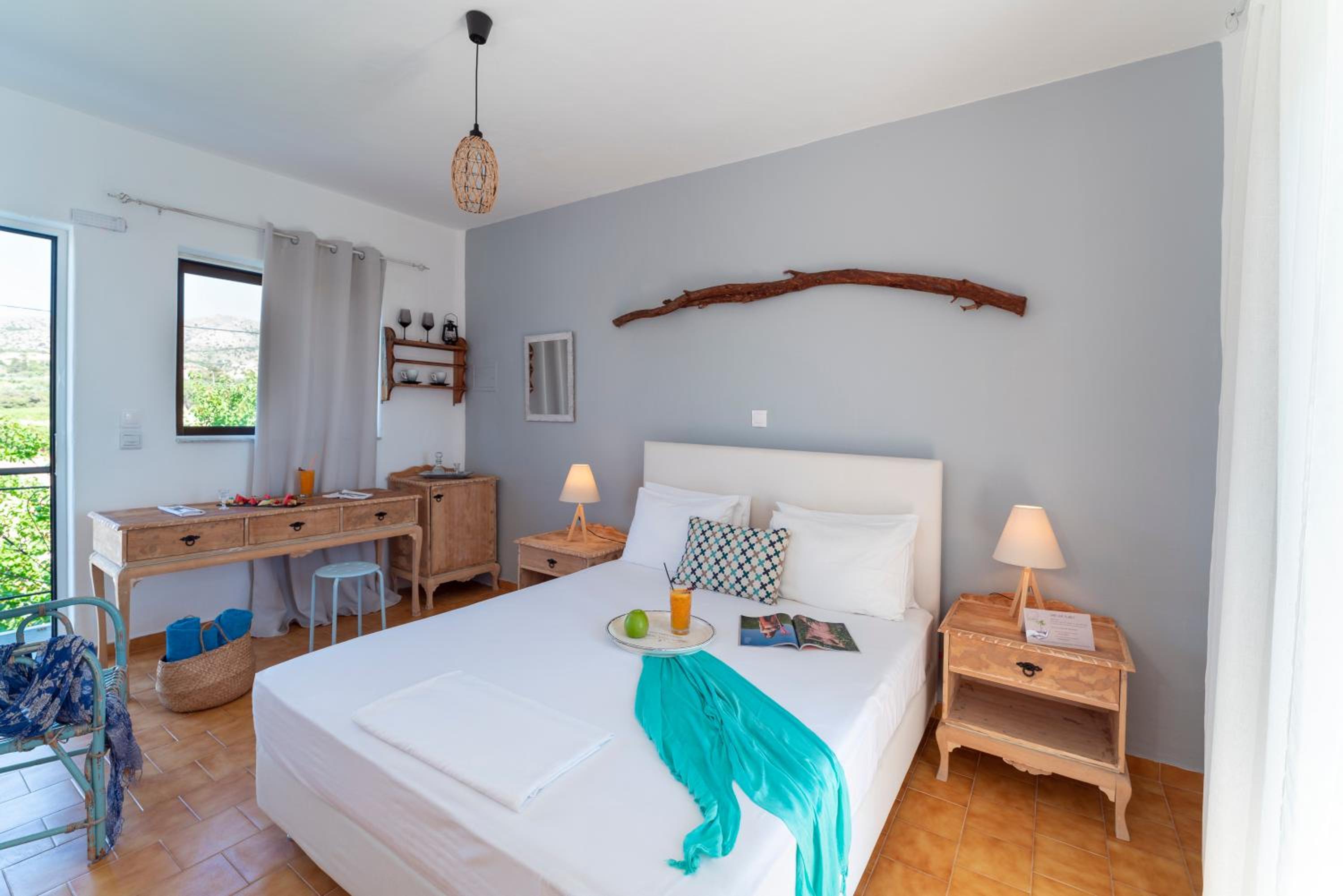 Great location, Management team, extremely helpful, booked taxi for us from the airport short notice and helped us with other taxi driver numbers, Welcome drink on arrival, relaxed but professional vibe, very friendly and helpful staff, clean natural materials used for deco to give a rustic boho feel. beds comfy, nice balcony with views to sea. al fresco dining, continental breakfast included which is a great start to the day. 50 metres walk to the mixed pebble and sand beach, with Sun loungers included in the price, felt like a private beach, for a lovely swim. easy 10 minute walk to Gennadi town, for a great bakery, supermarket and fruit and veg shop, plus a choice of restaurants and a couple of nice gift shops.