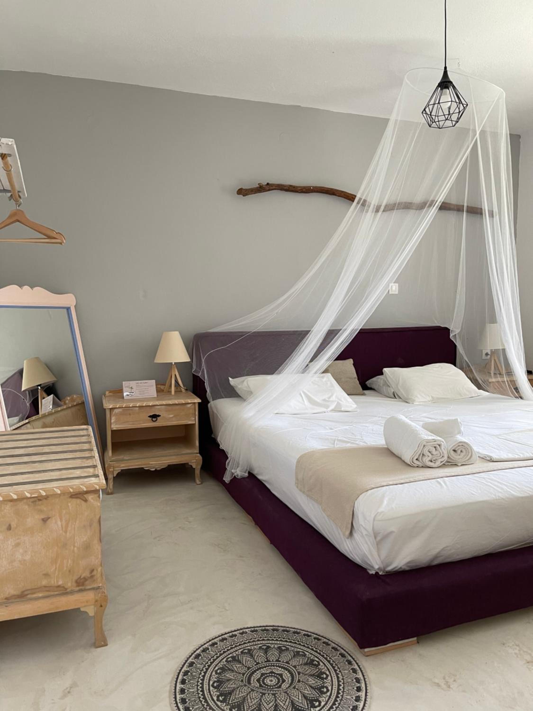 Das Zimmer war,für griechische Verhältnisse, wirklich groß, das Bett (mit Moskitonetz) sehr bequem, das Bad gemütlich klein und der Balkon leider auch. WLAN war okay, einen Fernseher gab es nicht. Also richtig schön zum runterkommen, wie in der gesamten Anlage. Wer entschleunigten & ruhigen Urlaub sucht ist hier bestens aufgehoben, so wie wir.