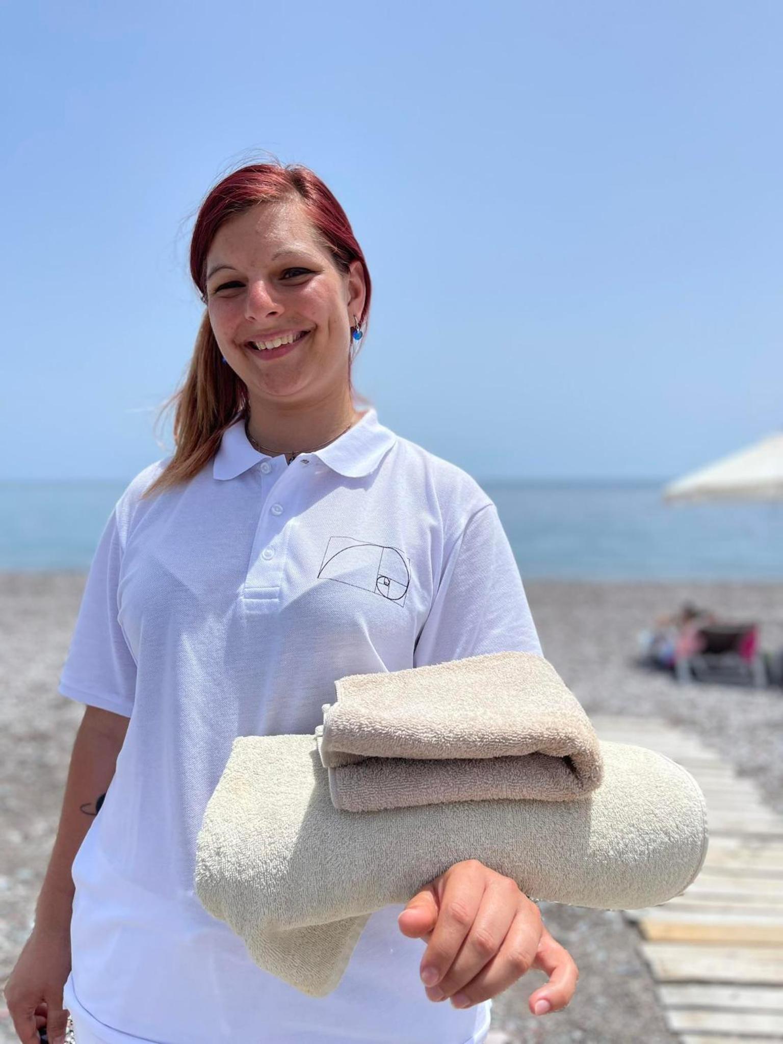 Schöner und sauberer Privatstrand (grobe größere Kiesel) mit Platz für alle Gäste, egal wann man gekommen ist. Duschen und ne Umkleidebox gab es dort auch. Ältere und neuere Liegen waren vorhanden (kostenlos).