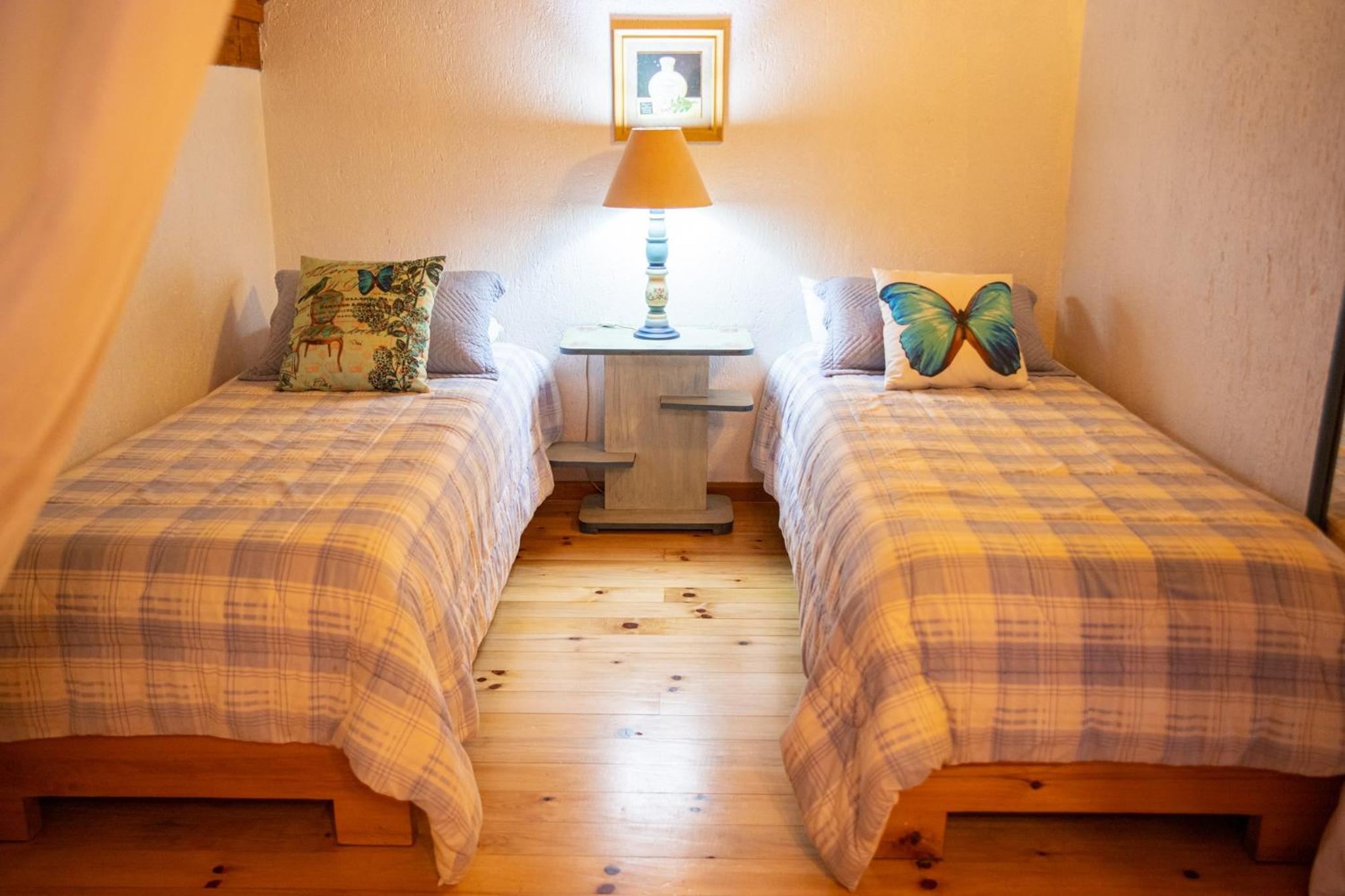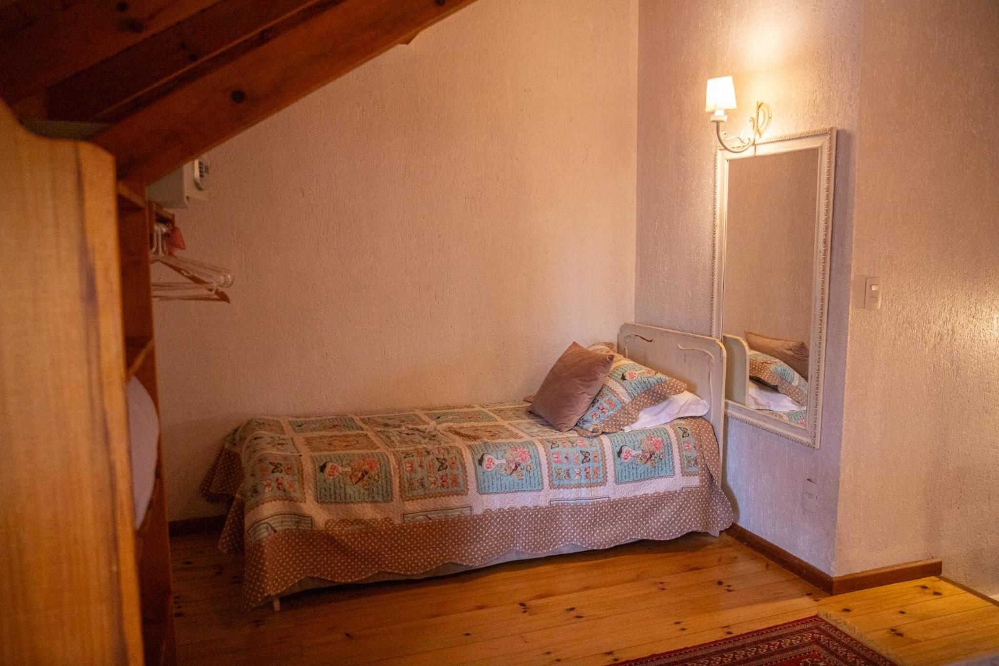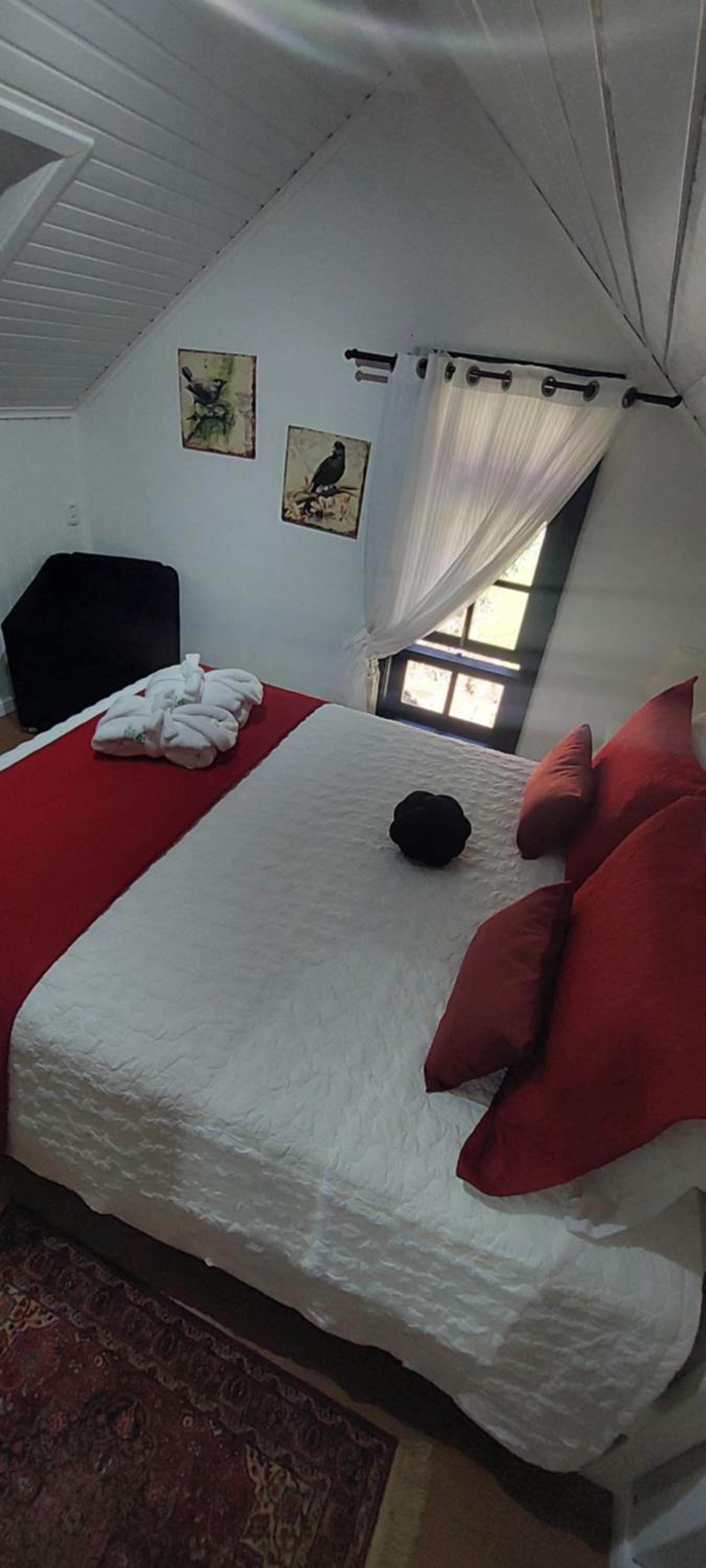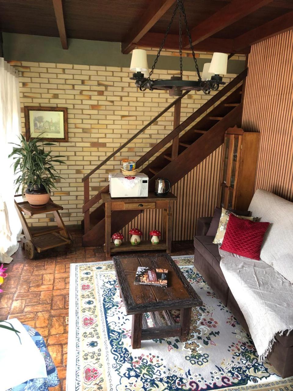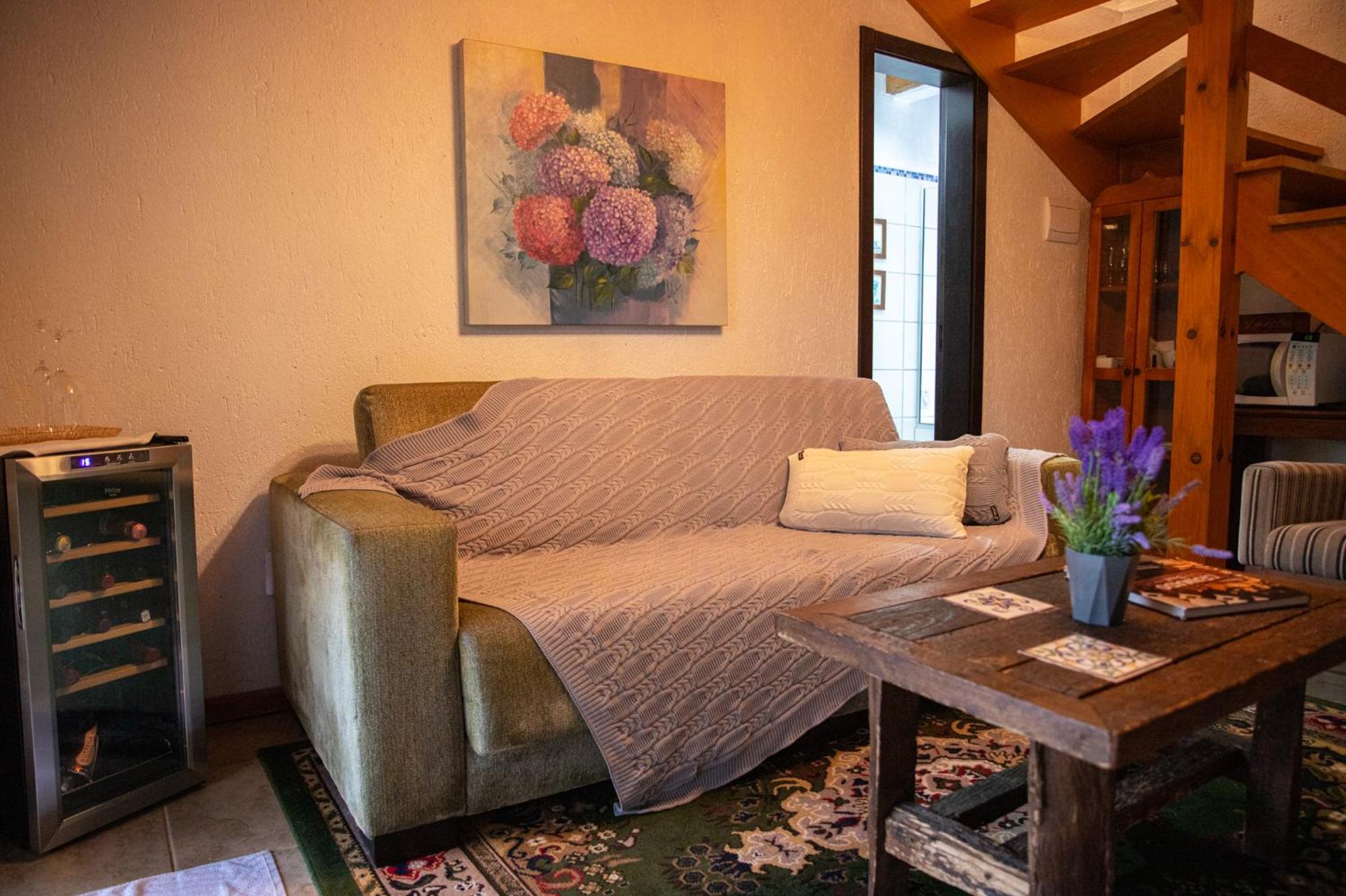 O chalé é amplo e confortável, porém as camas ficam no piso superior, enquanto o banheiro, a lareira e a TV no térreo. Isto causa alguns desconfortos. Se na madrugada há necessidade de ir ao banheiro é preciso descer a escada, algo perigoso. Também se as malas ficarem no piso superior, tem-se de descer com as roupas para tomar banho no térreo. E não há espaço adequado para as malas ficarem no térreo. Se você quer dormir com a lareira acesa, não pode, pois camas e lareira ficam em pisos diferentes. Outro desconforto é quanto ao ar condicionado (quente e frio) que só tem no piso superior. Para dormir é ótimo, mas se você quer assistir TV ou jantar no piso térreo é muito frio. Há necessidade de acender a lareira, mas a lenha só dura 1 ou 2 horas. Ou seja, em dias frios ou em dias muito quentes o piso térreo é desconfortável demais, o que impossibilita almoçar, jantar, assistir TV. Até para tomar banho há desconforto em dias frios, pois não há aquecedor no banheiro, nem no piso térreo.
