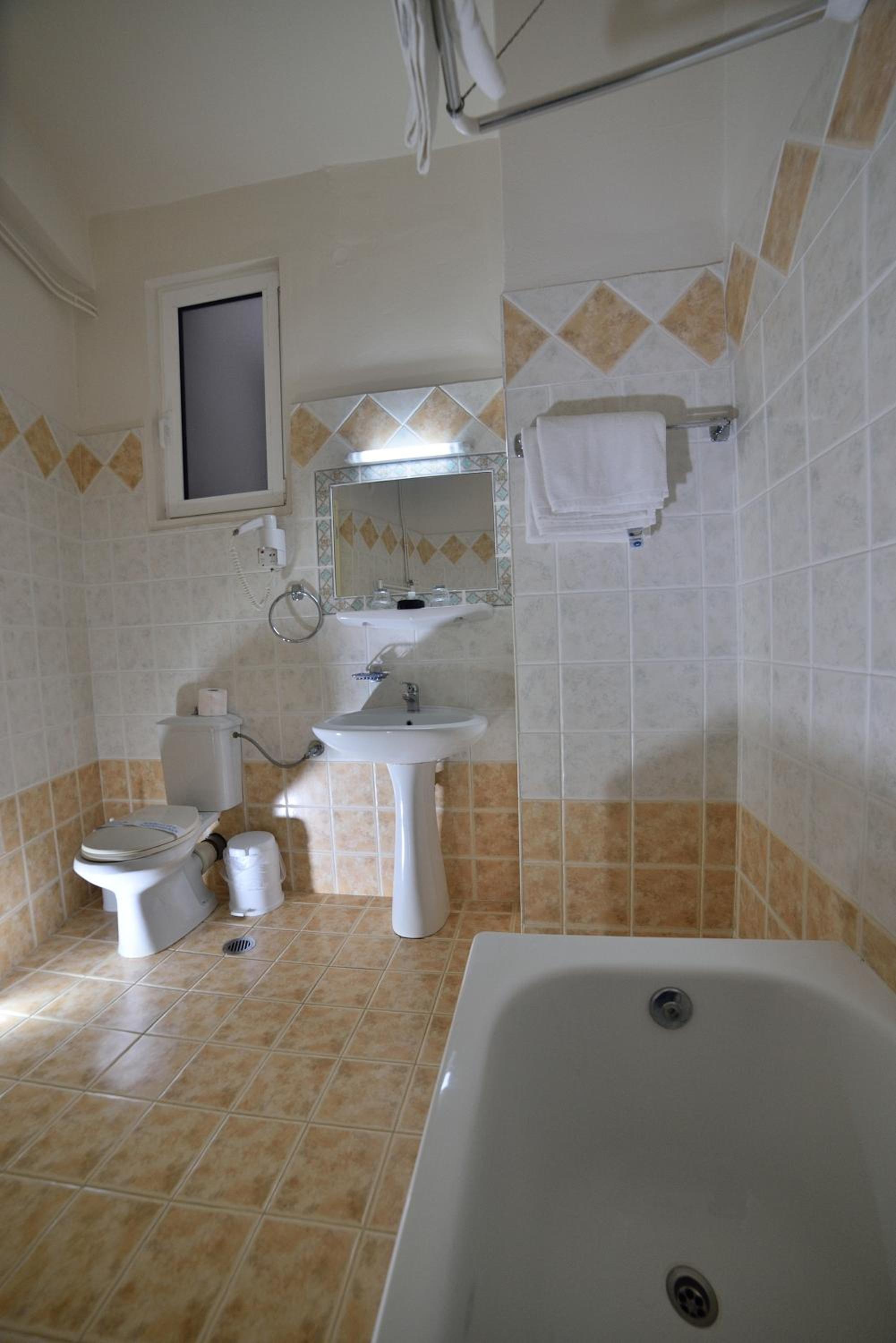 Old school hotel in New Mystras, perfectly comfortable with friendly service.