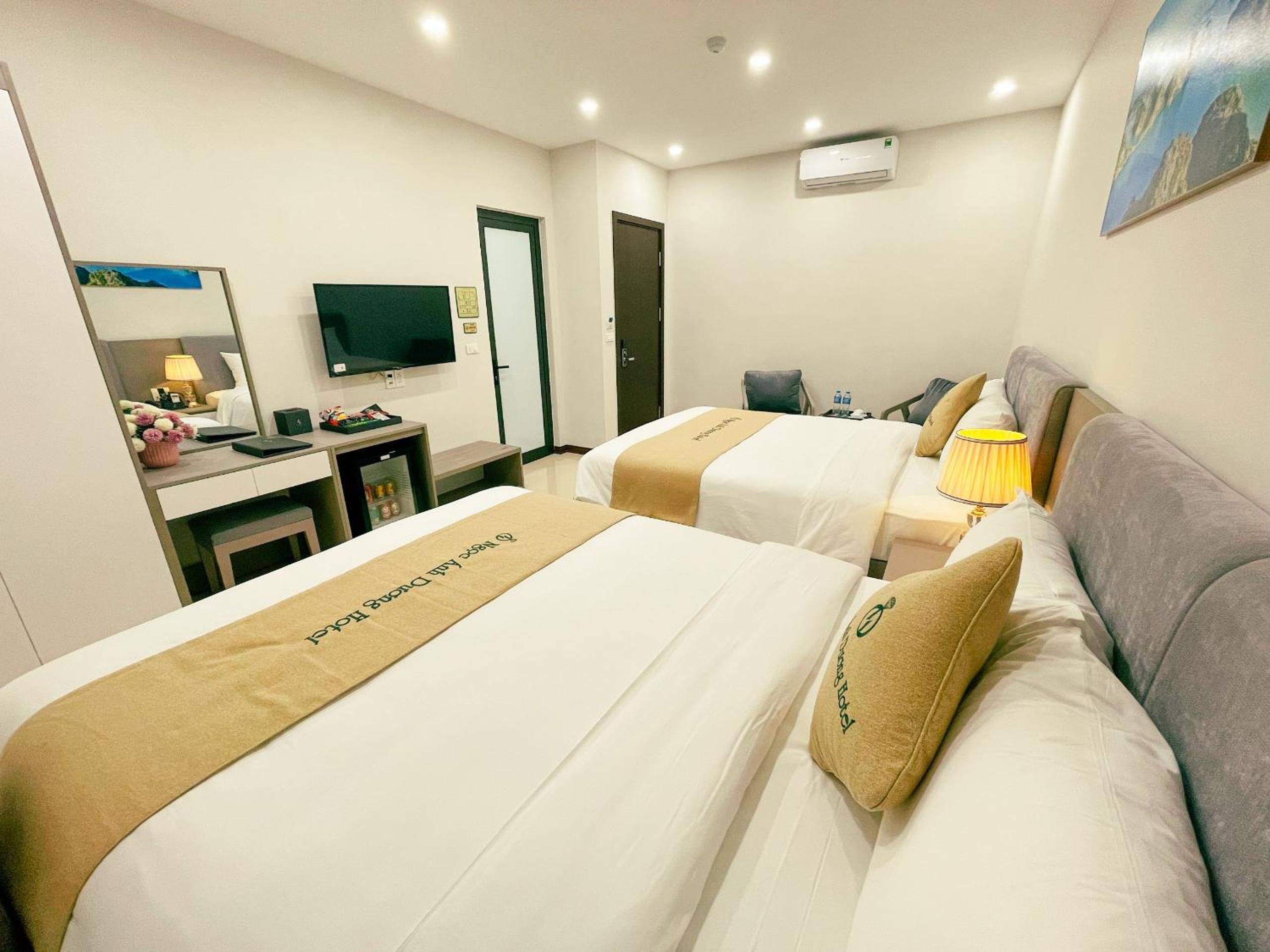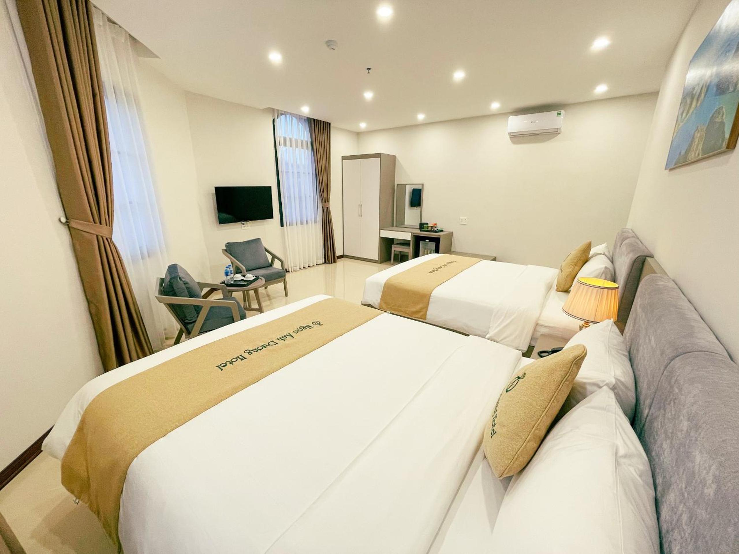 Ngọc Ánh Dương Hotel offers air-conditioned rooms equipped with essential amenities like a wardrobe, kettle, fridge, minibar, and a flat-screen TV. Guests can also enjoy the convenience of a safety deposit box and a private bathroom with a bidet.