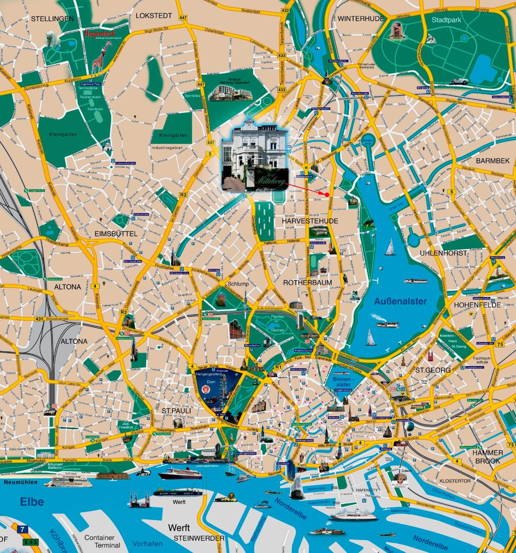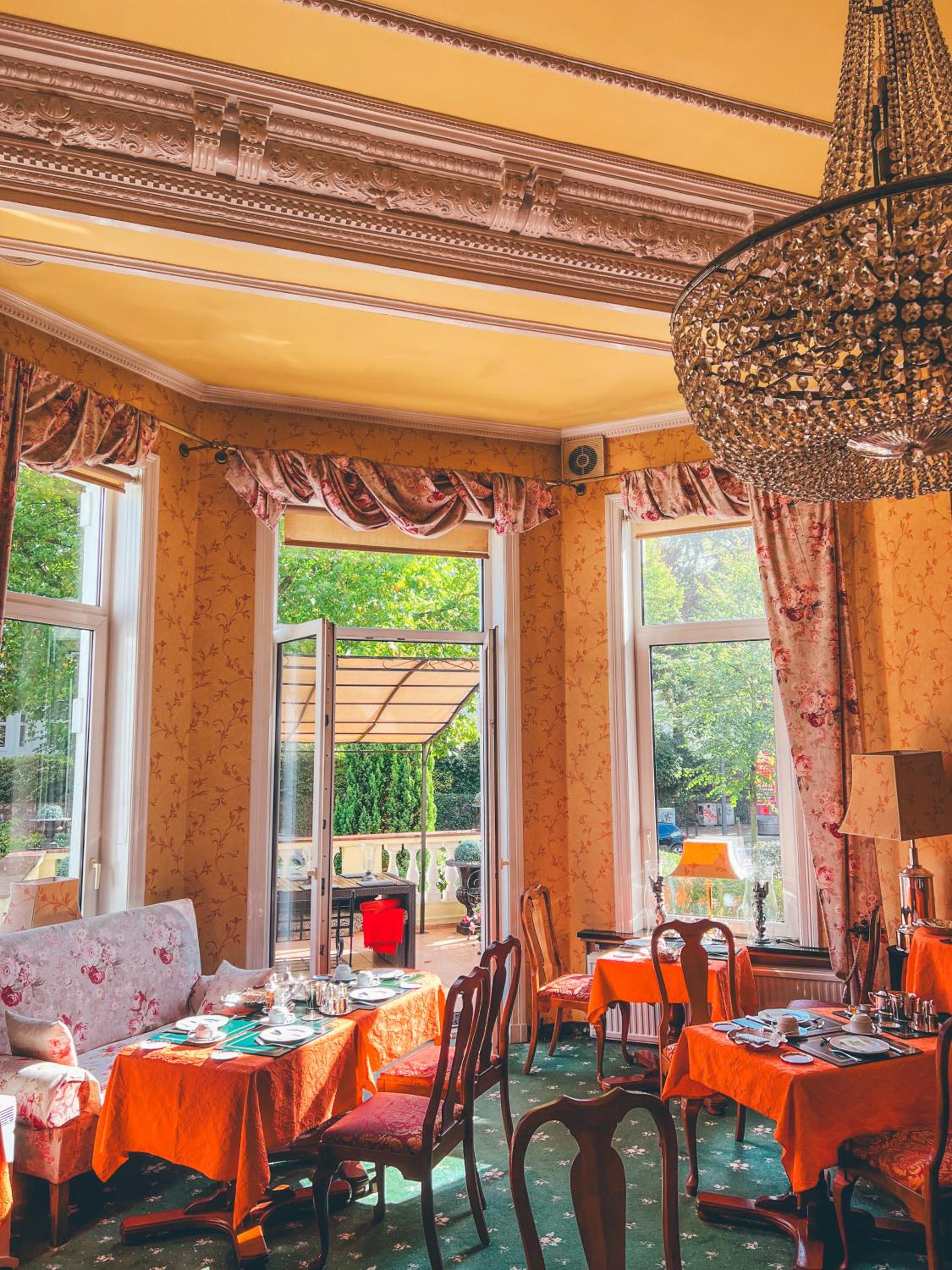 Located near Außenalster Lake, Hotel Mittelweg offers a delightful stay in Hamburg's upscale Pöseldorf district. Historic Elegance and Modern Comfort Built in the late 19th century, the hotel boasts spacious rooms with English-style decor and complimentary Wi-Fi. Convenient Location and Delectable Dining Guests can enjoy a rich breakfast buffet each morning and explore the nearby cafes and restaurants. With Hamburg city center and the CHH Exhibition Centre just a short drive away, Hotel Mittelweg is the perfect choice for both leisure and business travelers. Book your stay now at Hotel Mittelweg for a memorable Hamburg experience!