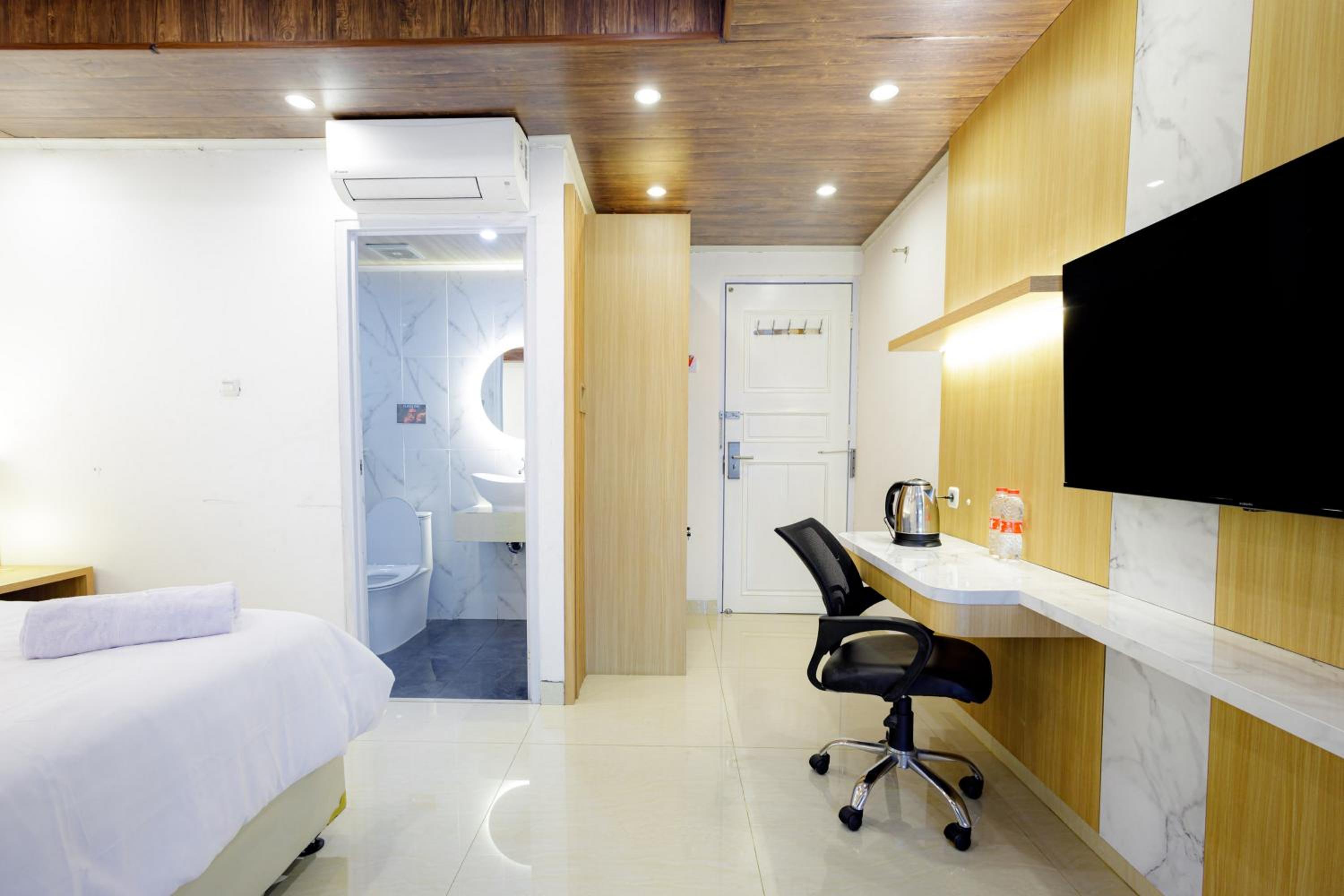 Each room at Urbanview Hotel Kota Tua Jakarta is equipped with a desk, flat-screen TV, and a private bathroom. The cozy bedding and seating area ensure a comfortable and relaxing stay for all guests.