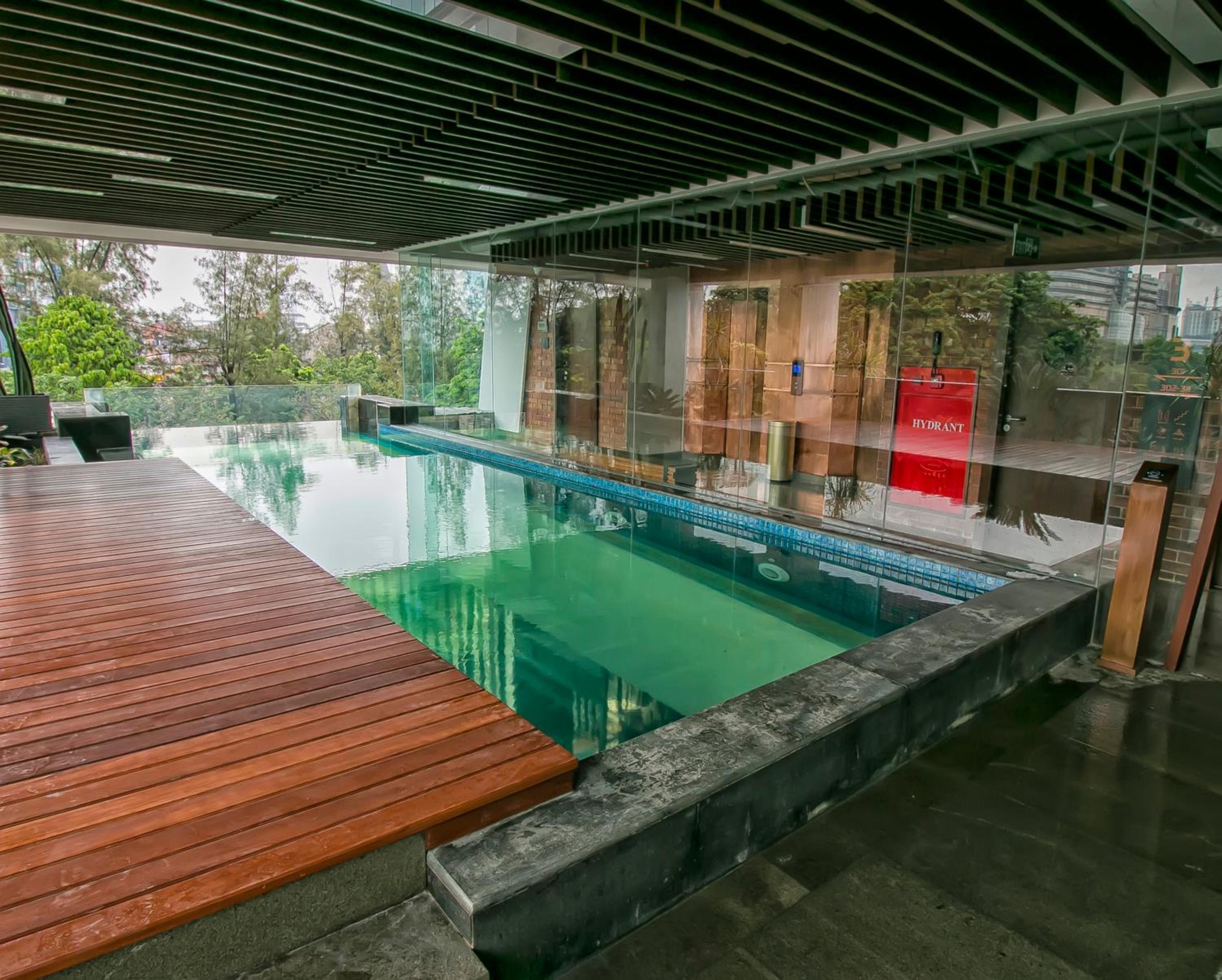 You can see the pool from the lobby. The room was really small and a little bit noisy. Can’t go on the rooftop during the day because it’s under construction.