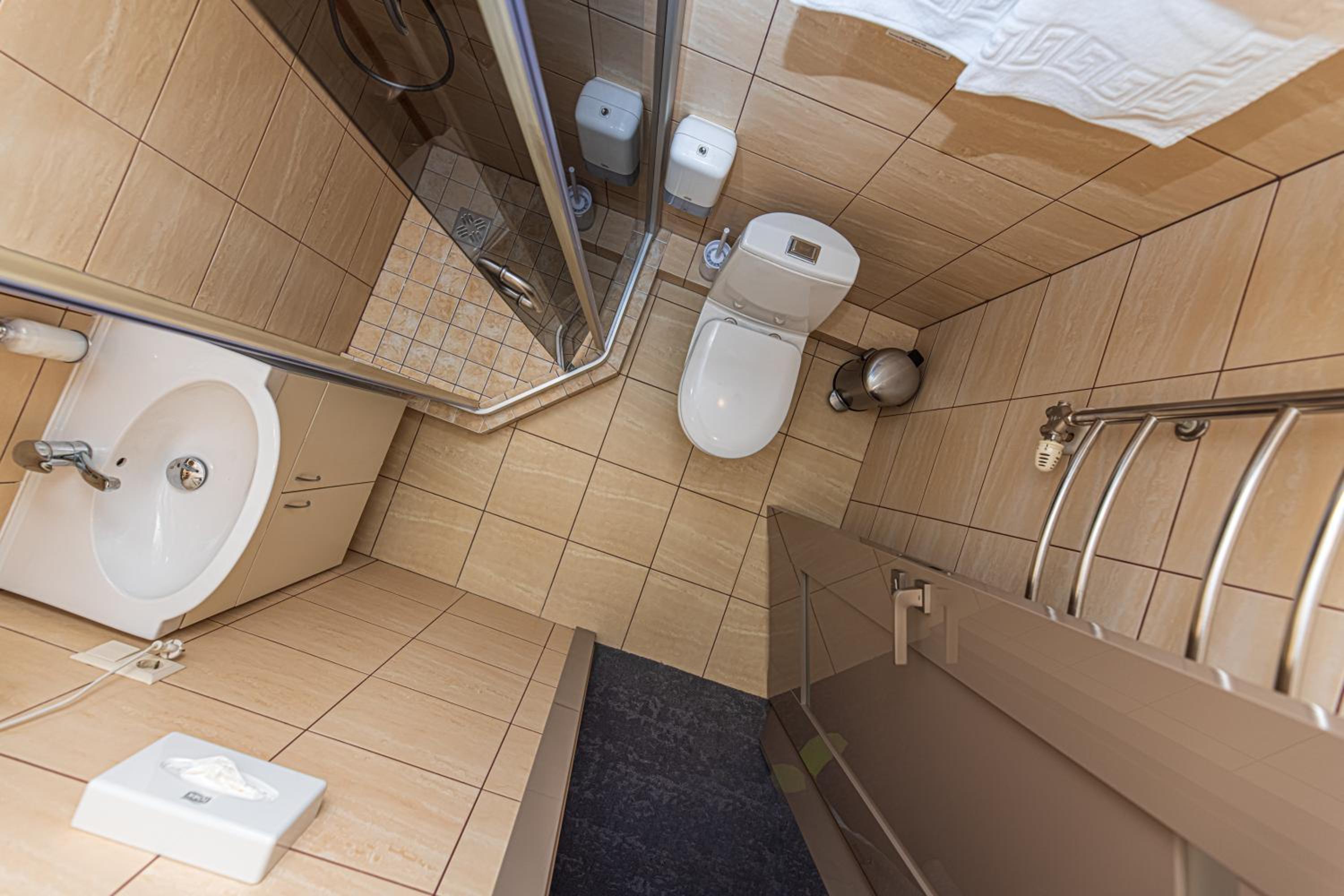 Smulkmena, bet gana statūs laiptai, todėl nepatogu nešioti lagaminus, nors į viršų užsinešti padėjo. Pusryčių metu trūksta kaip kurių indų.