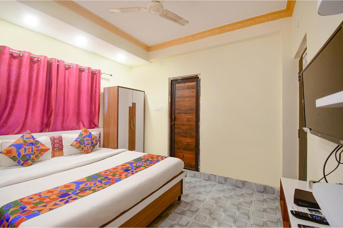 Each room at FabExpress Om Shanti International is equipped with modern amenities such as air conditioning, a flat-screen TV, and a private bathroom with complimentary toiletries, ensuring a comfortable stay for guests.