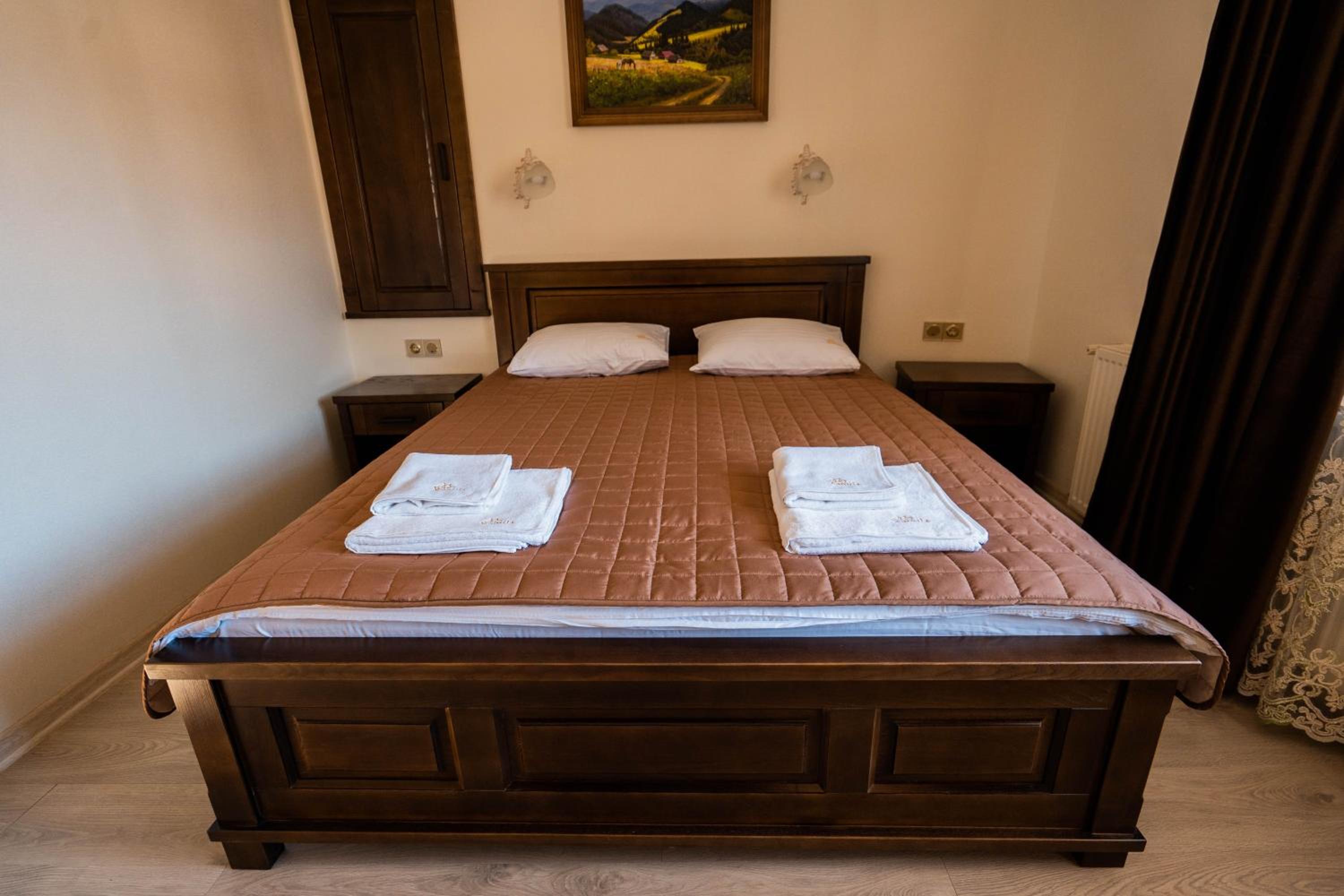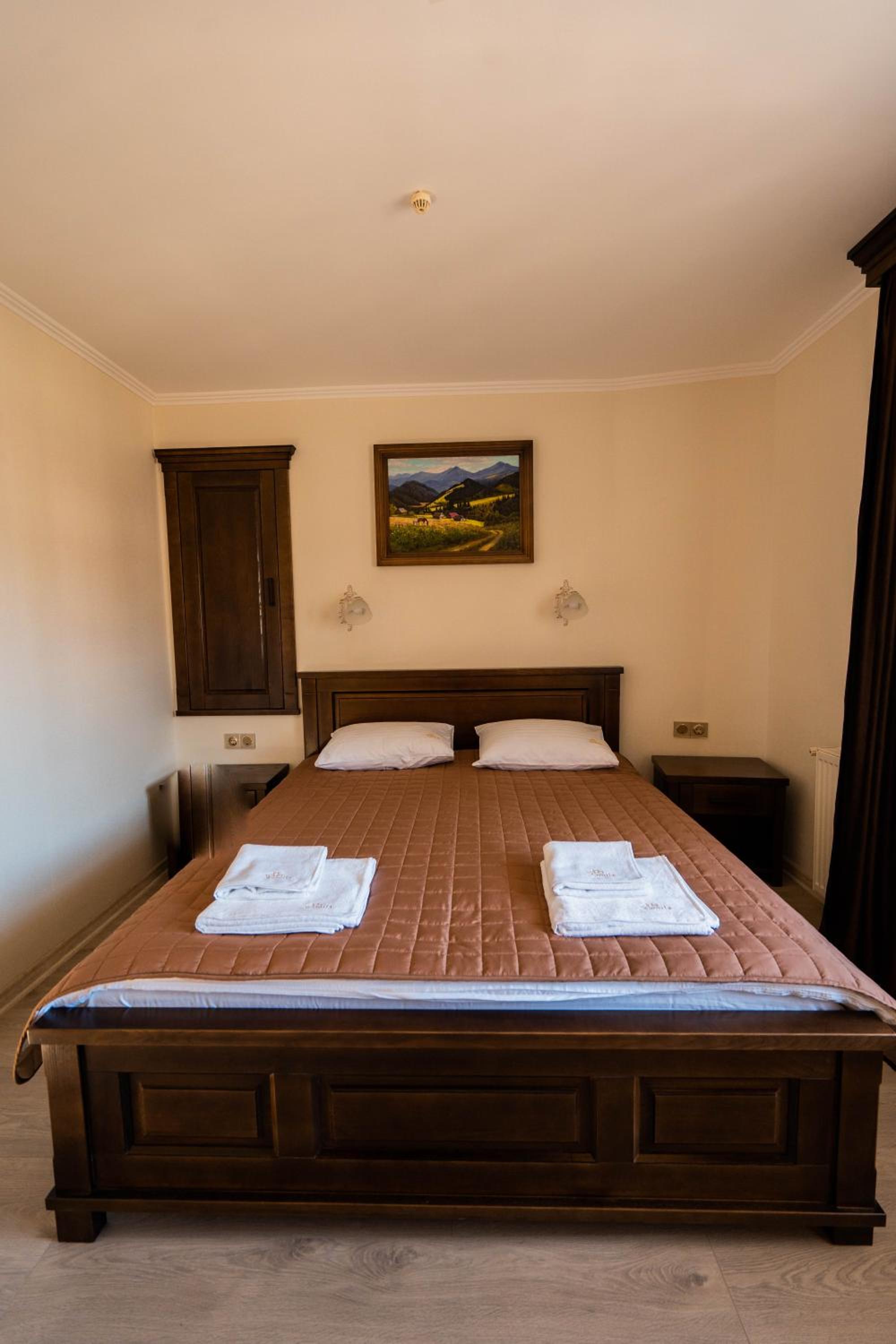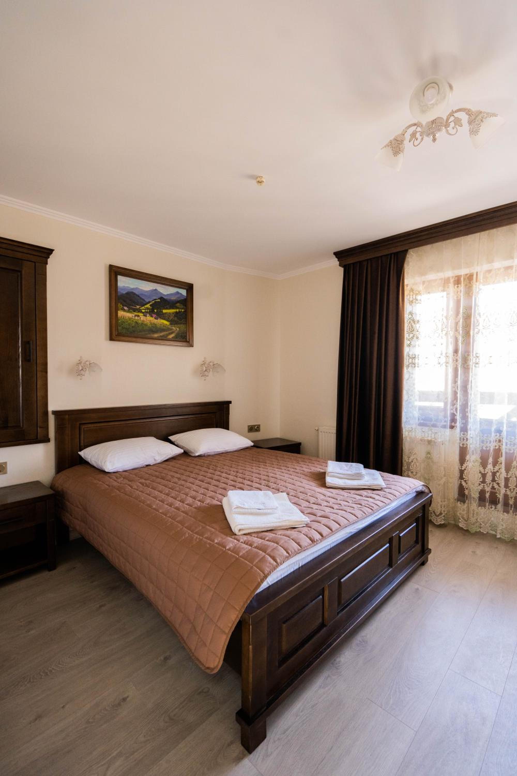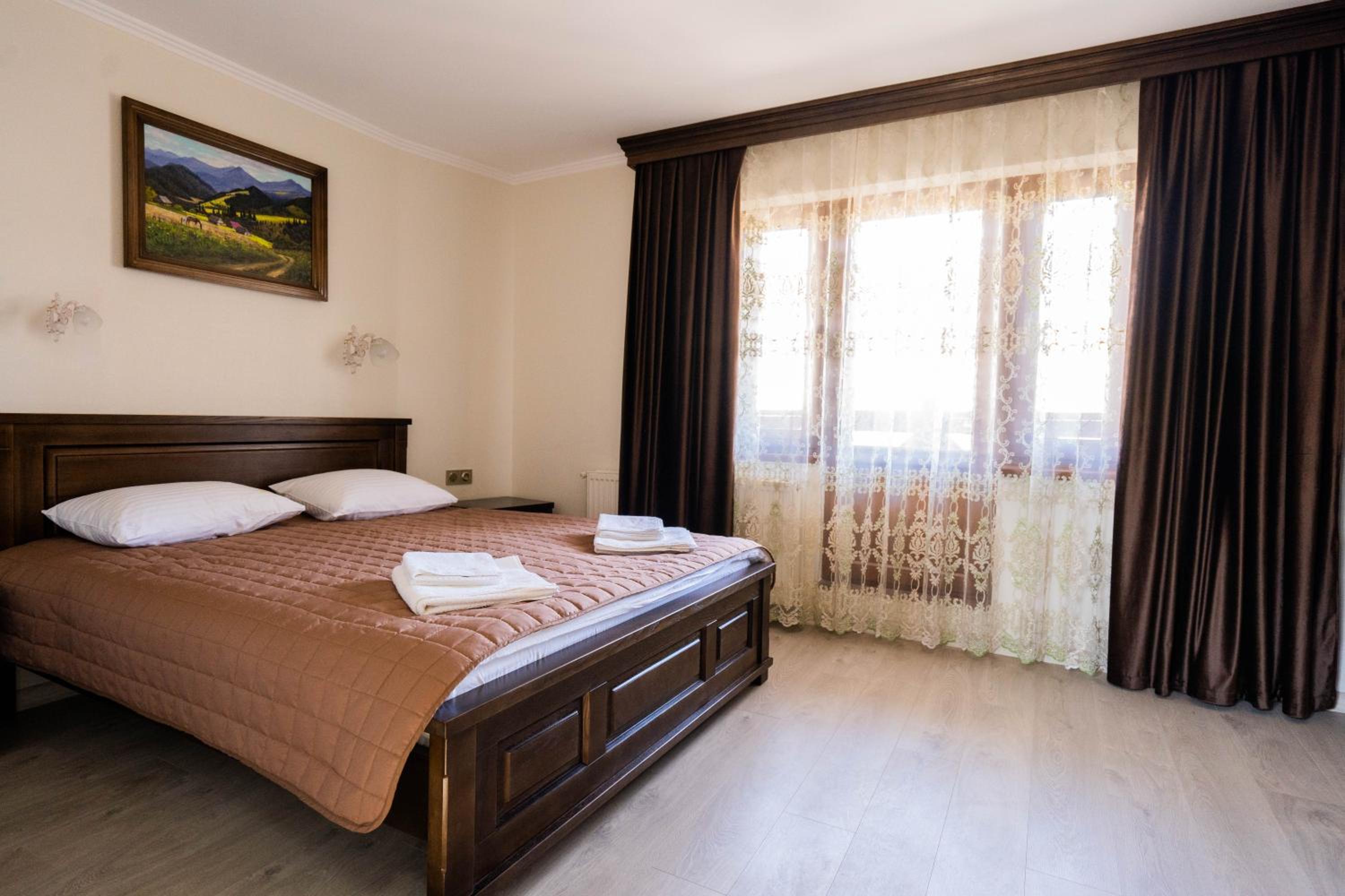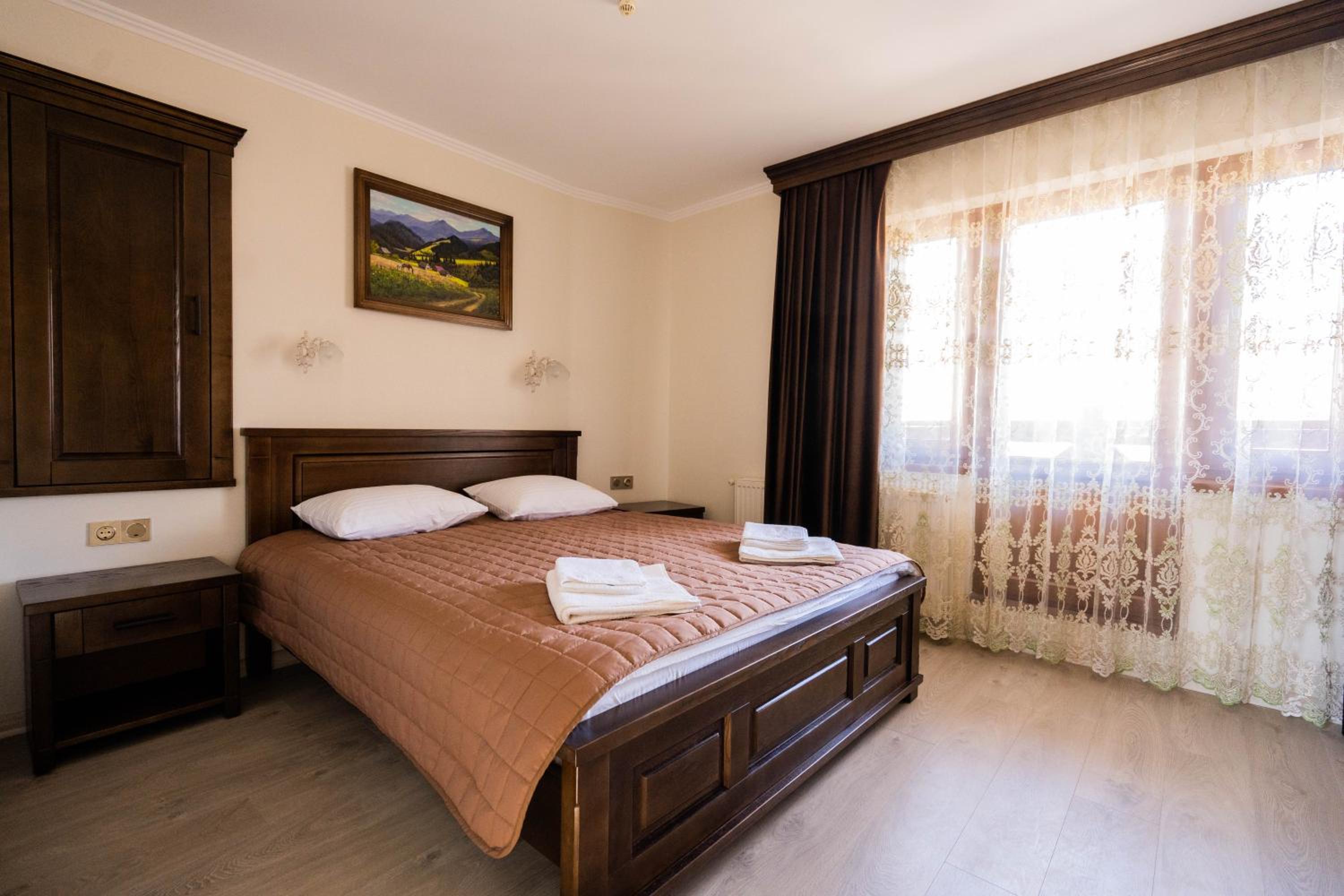 Experience comfort and elegance at Готель-ресторан Каміла in Polyana. Each room boasts a wardrobe, premium bed linen, and a private balcony offering breathtaking mountain views. Enjoy your favorite shows on the flat-screen TV and pamper yourself with the provided hairdryer.
