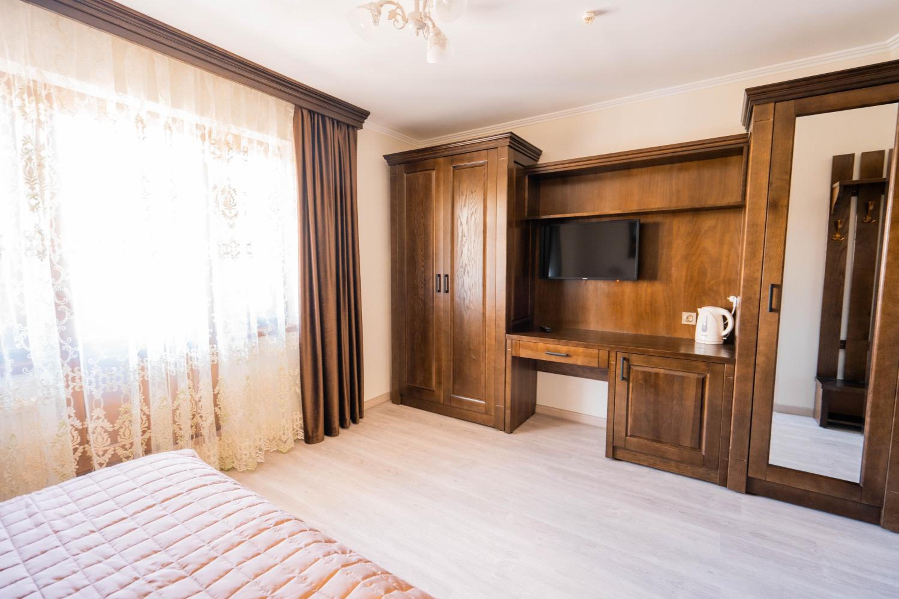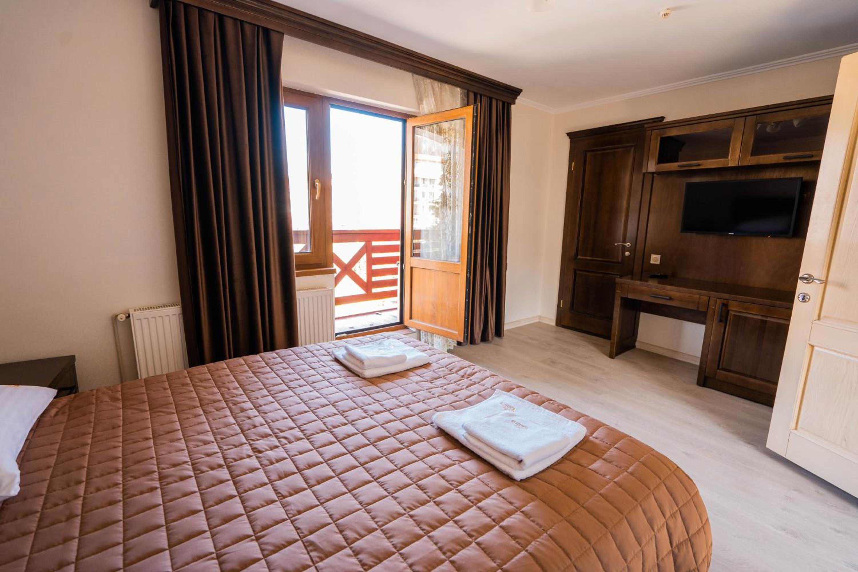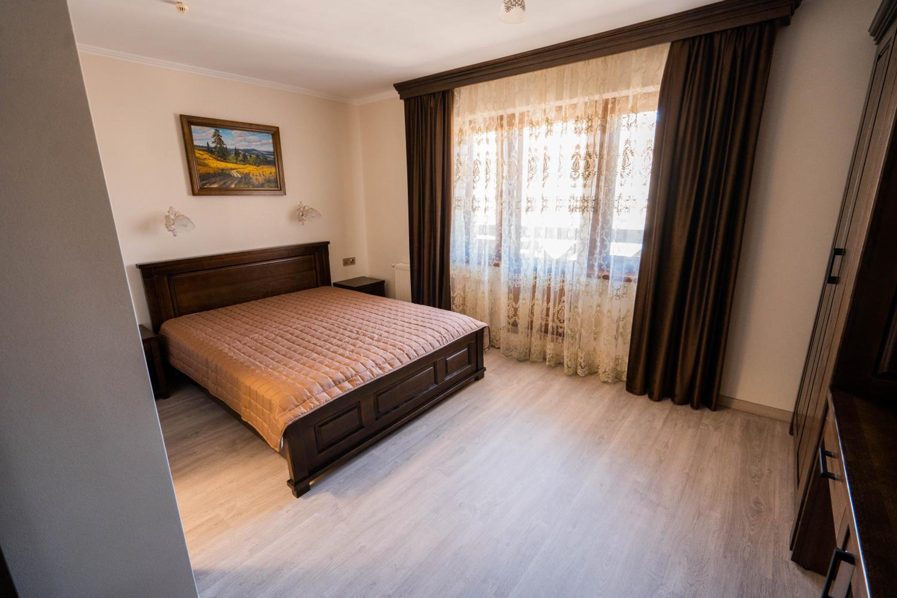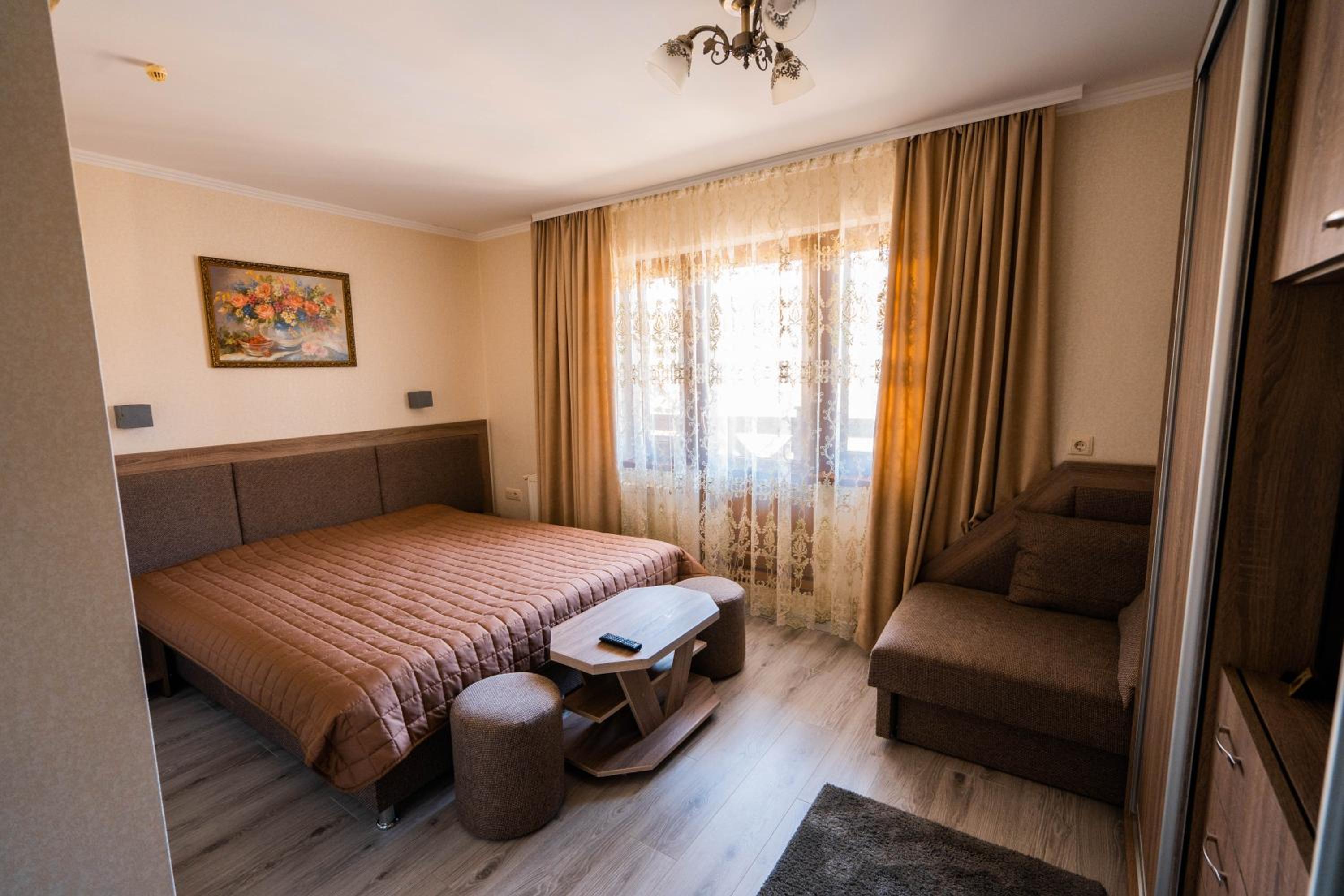 Experience comfort and elegance at Готель-ресторан Каміла in Polyana. Each room boasts a wardrobe, premium bed linen, and a private balcony offering breathtaking mountain views. Enjoy your favorite shows on the flat-screen TV and pamper yourself with the provided hairdryer.