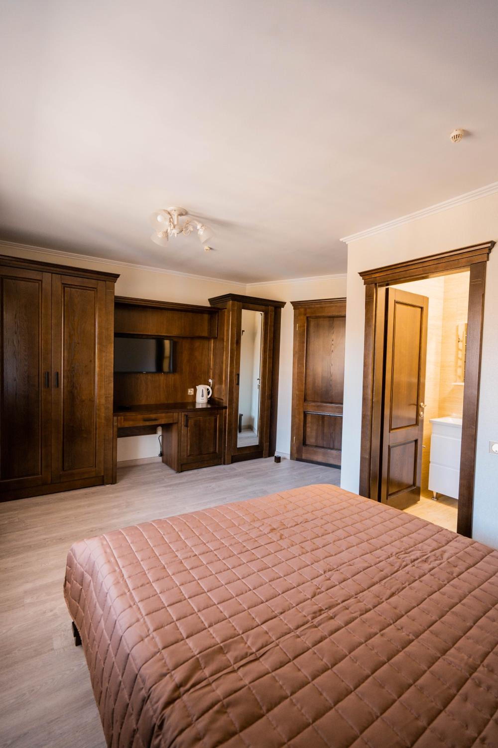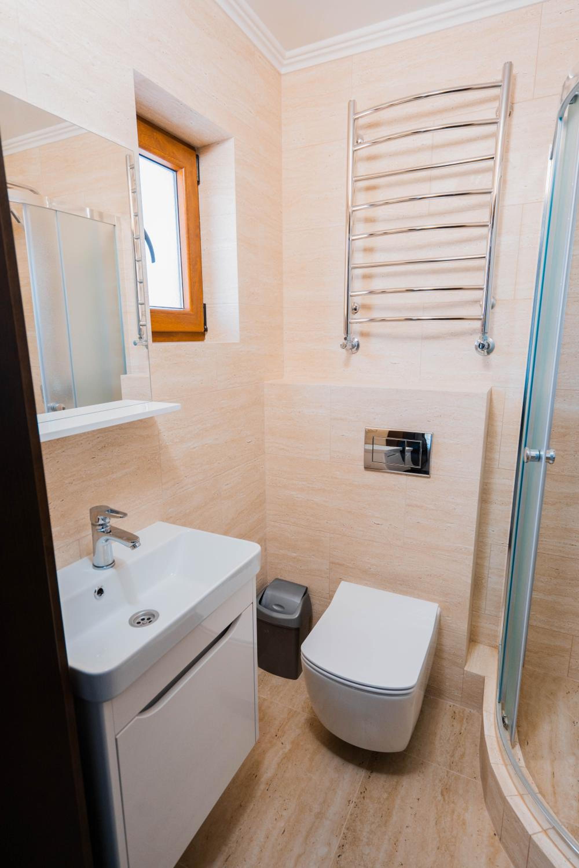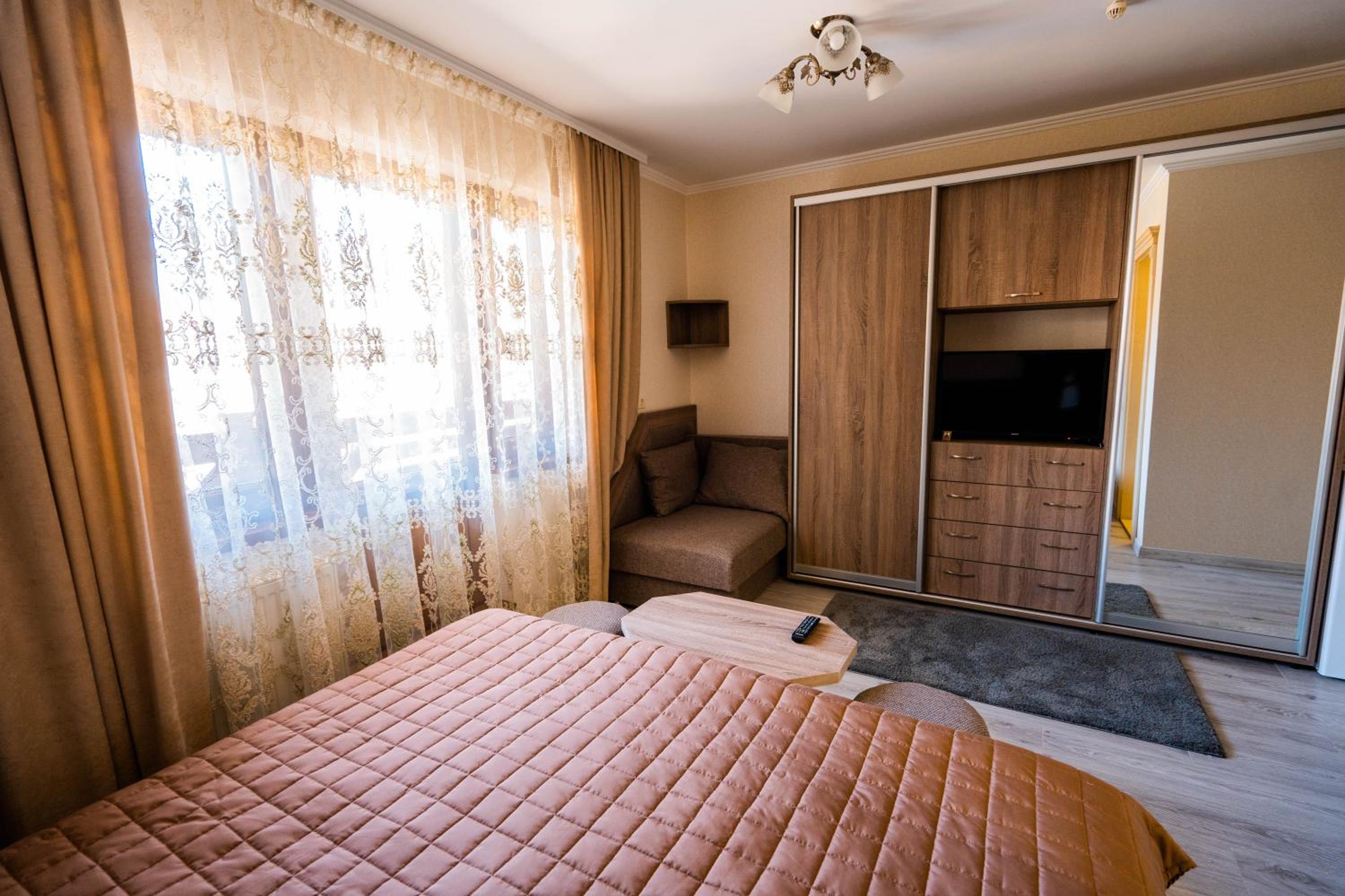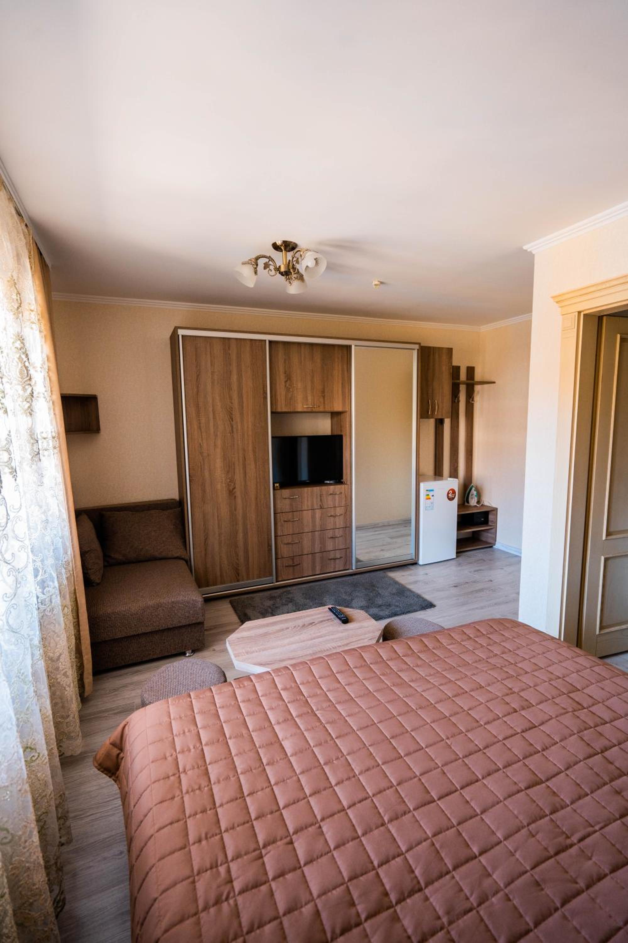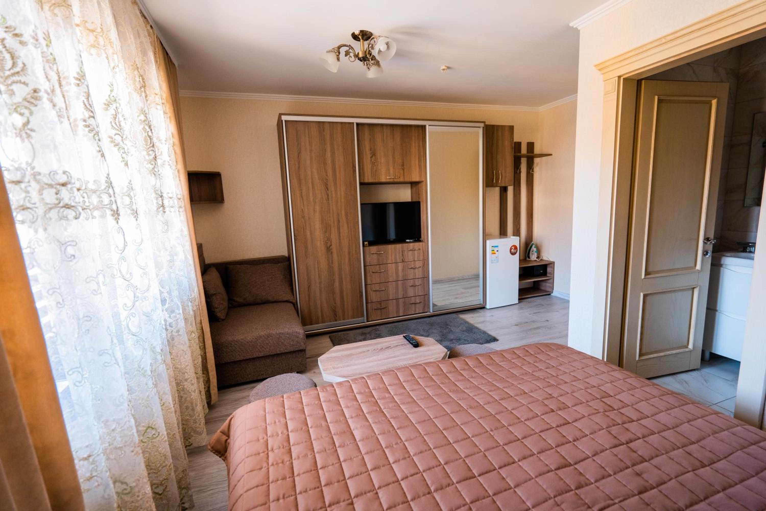 Experience comfort and elegance at Готель-ресторан Каміла in Polyana. Each room boasts a wardrobe, premium bed linen, and a private balcony offering breathtaking mountain views. Enjoy your favorite shows on the flat-screen TV and pamper yourself with the provided hairdryer.