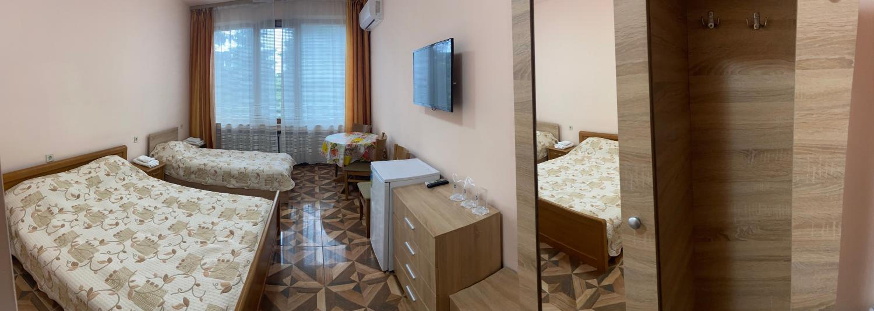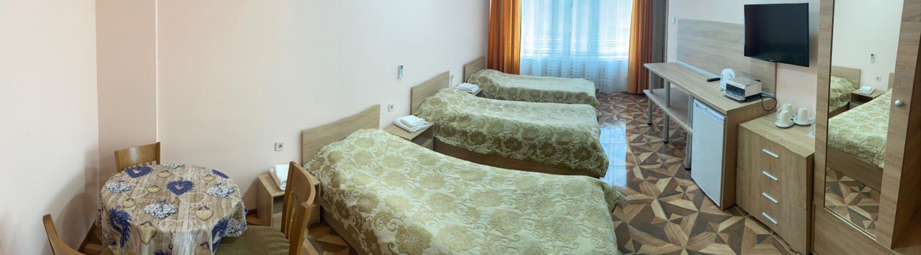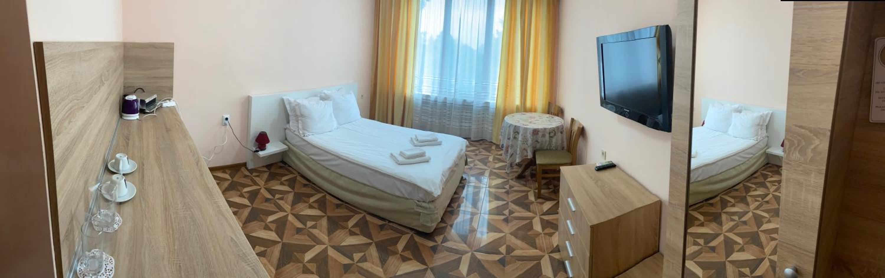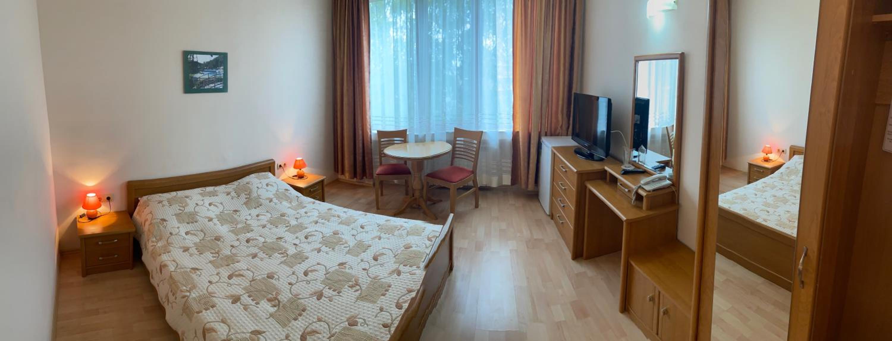 Хотелът е на тихо и спокойно място, заобиколен от зеленина. Стаята беше просторна.