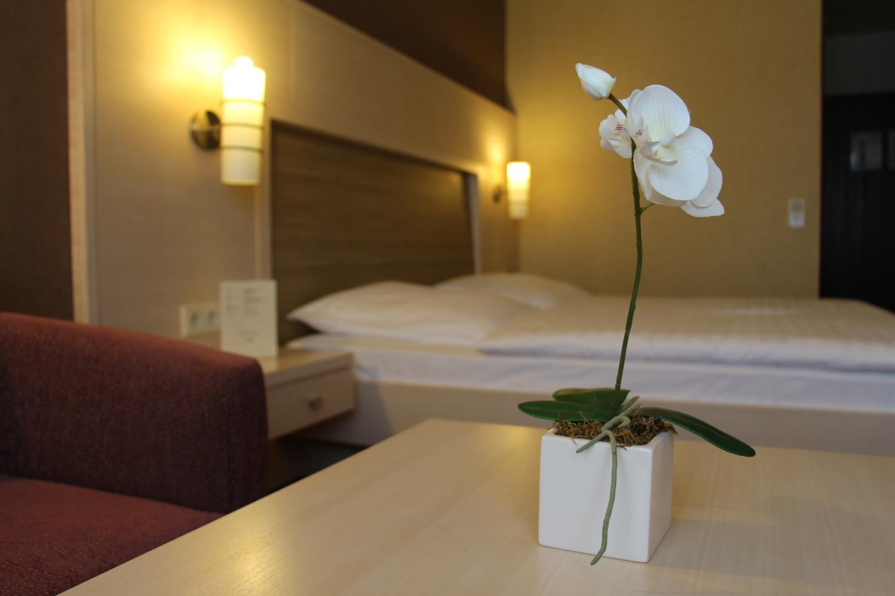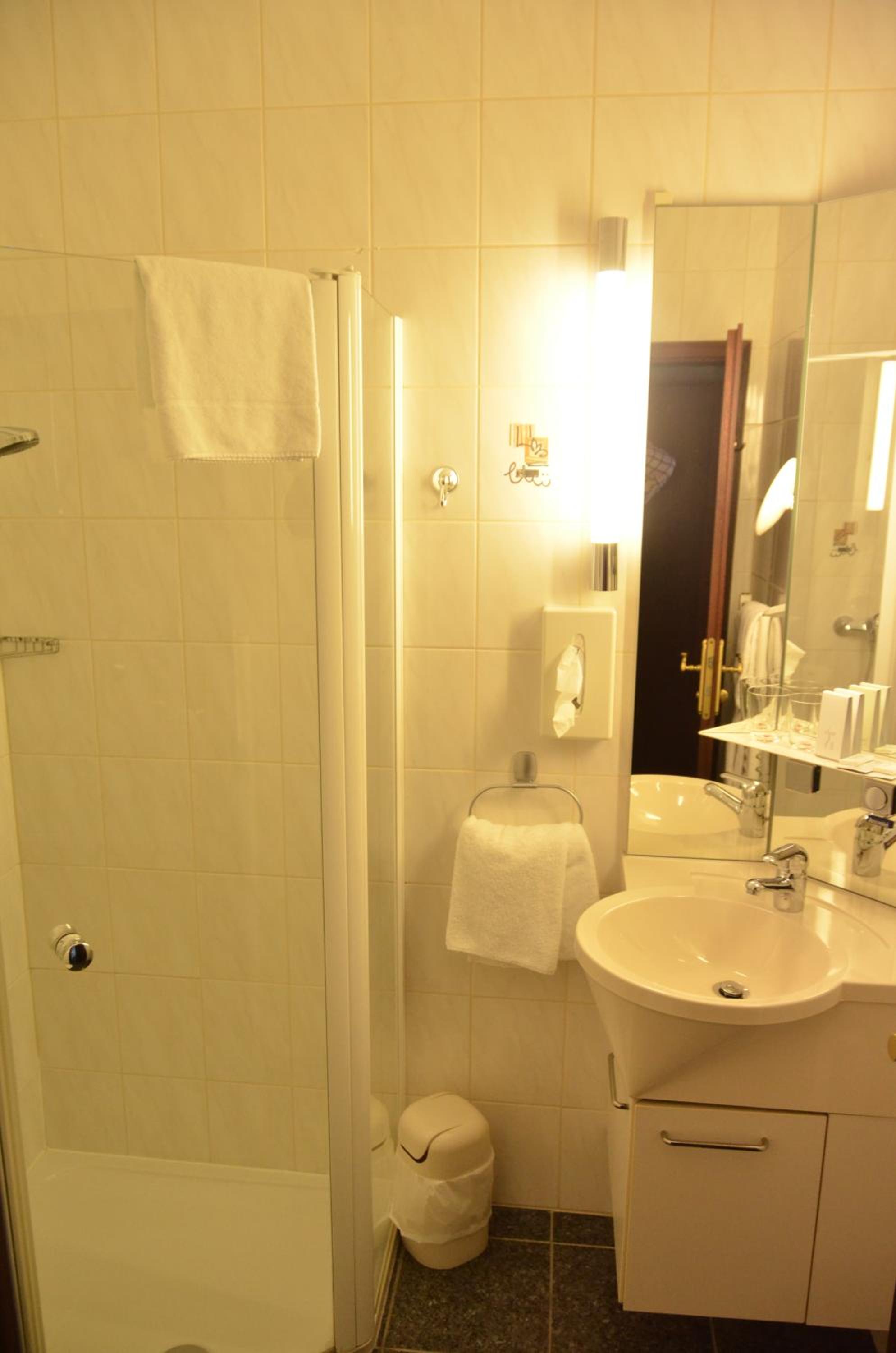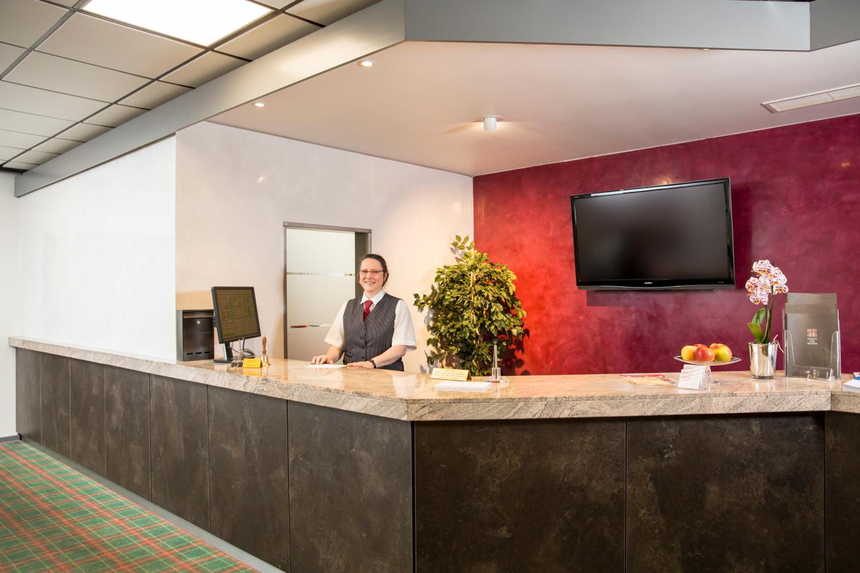 Sehr freundliches Personal. Gute Lage direkt neben der Stadthalle. Kostenlose Parkplätze direkt gegenüber. Schön ausgestattetes Zimmer. Große Auswahl am Frühstücksbuffet.