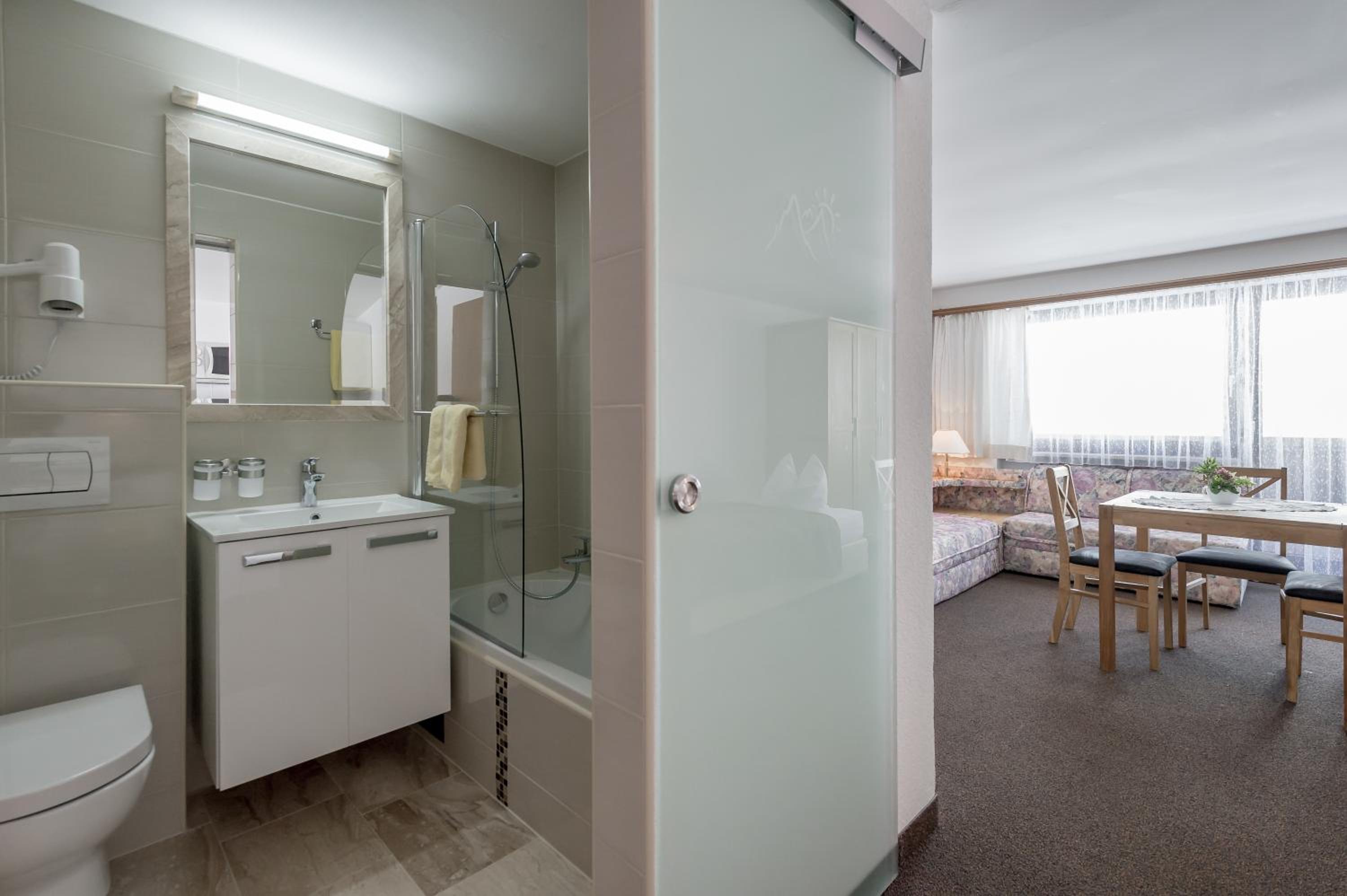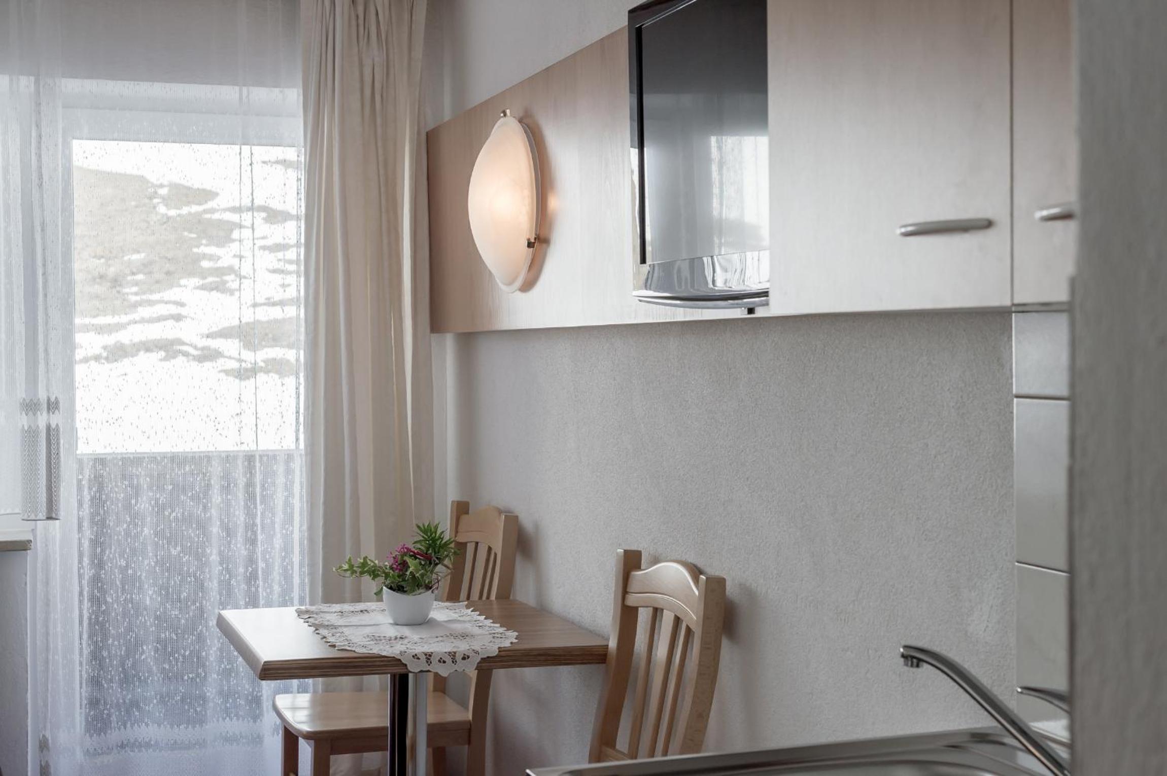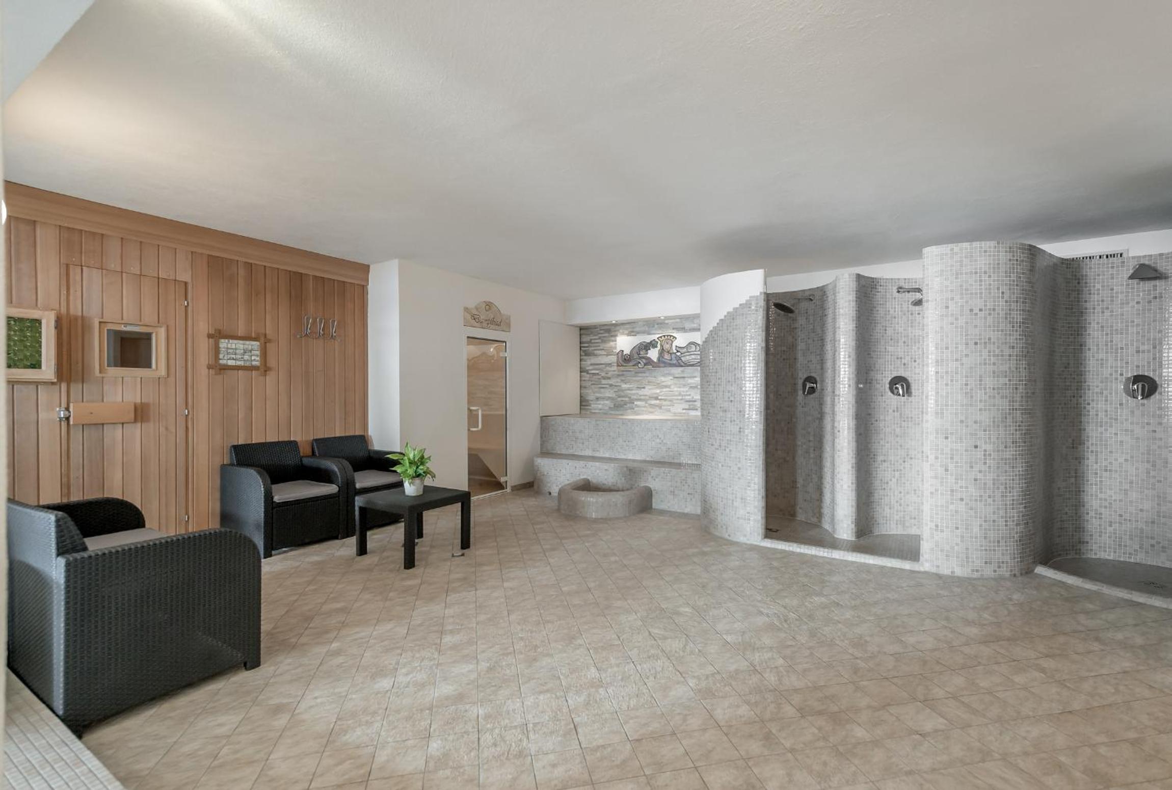 Unwind after a day of skiing in the relaxation area featuring a steam bath and sauna, or enjoy the comfort of well-equipped apartments with kitchenettes and balconies.