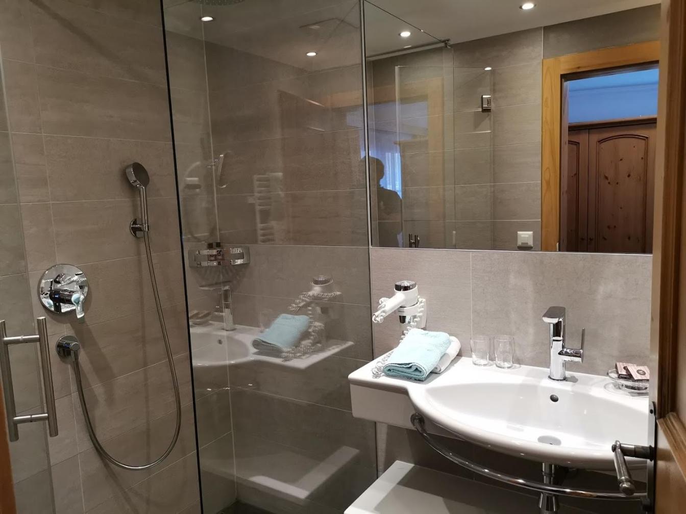 Grosses Zimmer mit schönem Bad und sehr guter Dusche. Frühstück mit guter Auswahl an Brot und alles schön präsentiert.