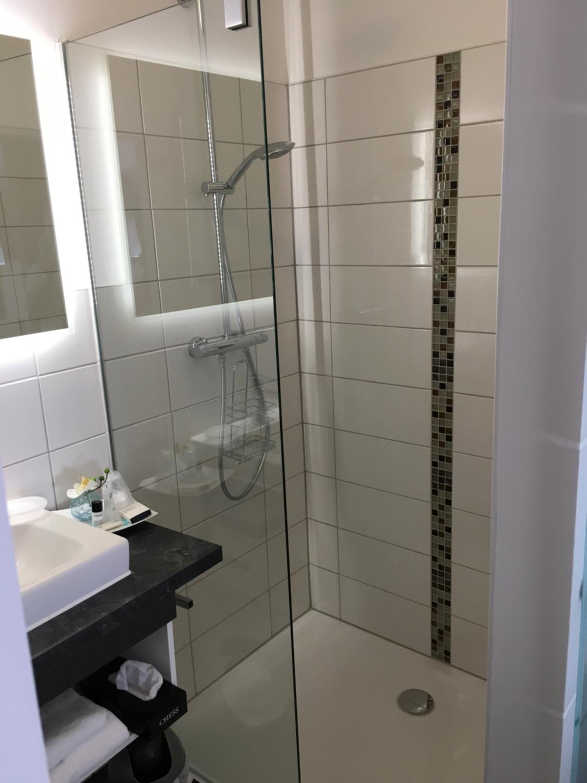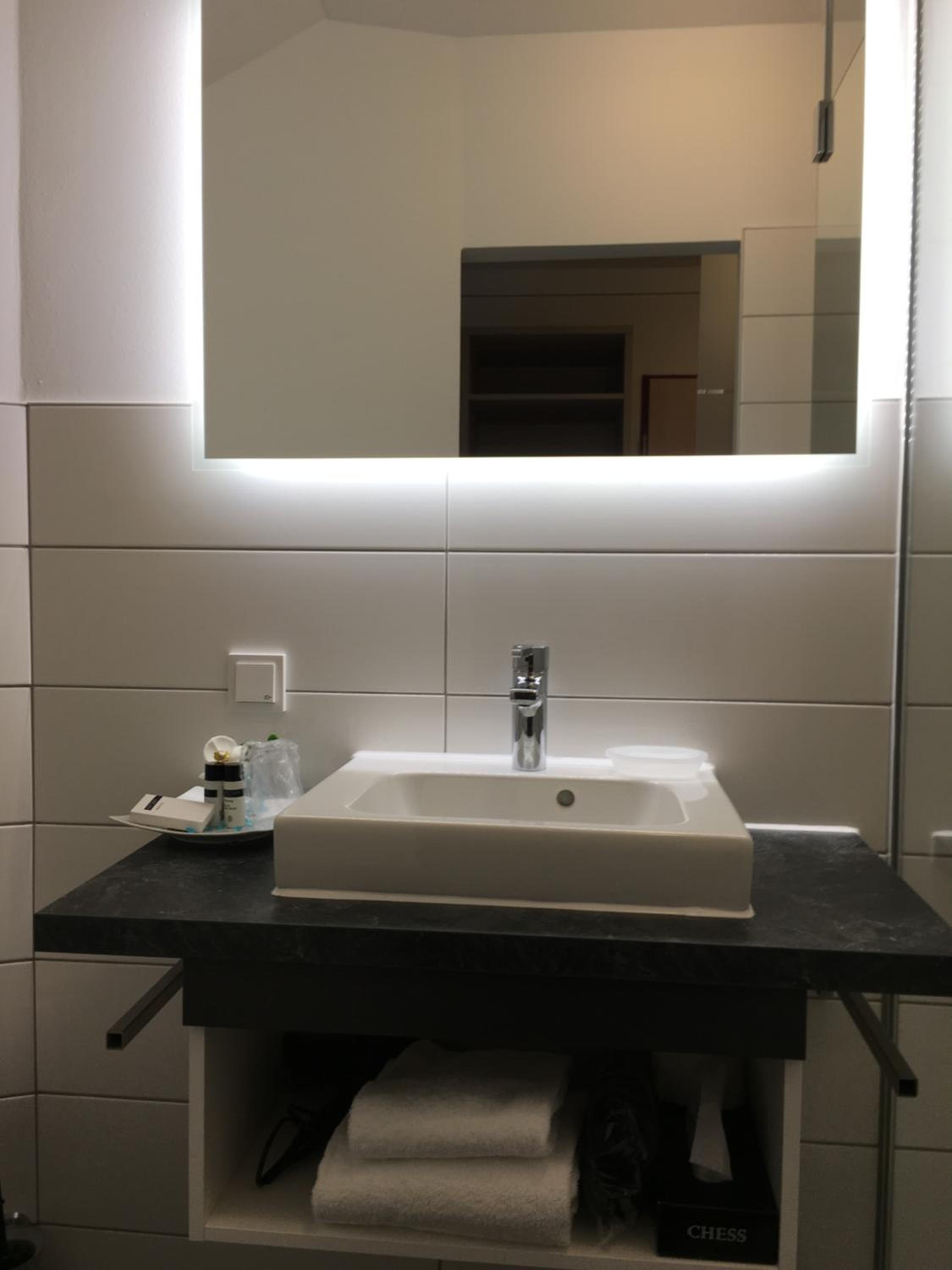 Das Zimmer war sauber und das Bad geräumig.