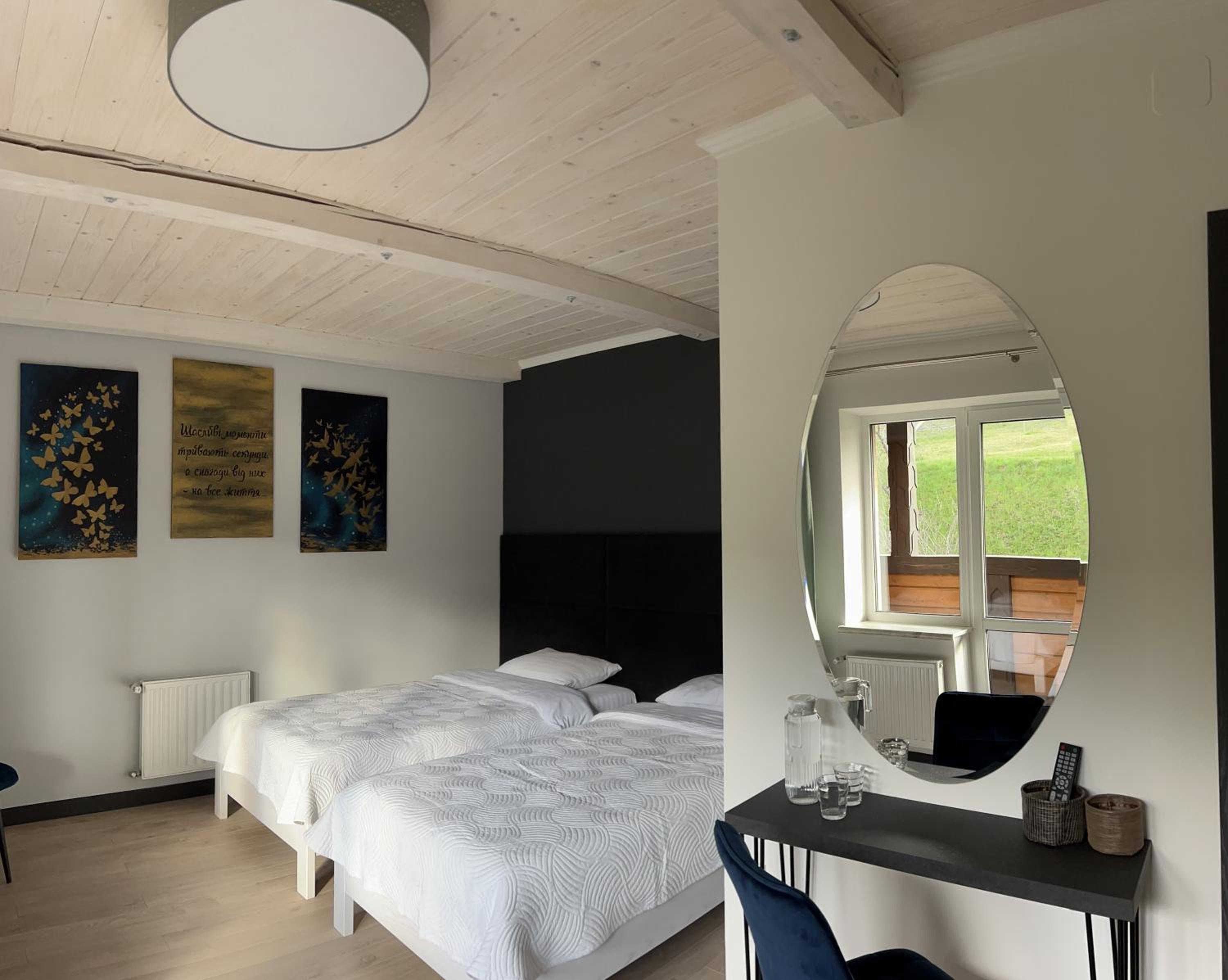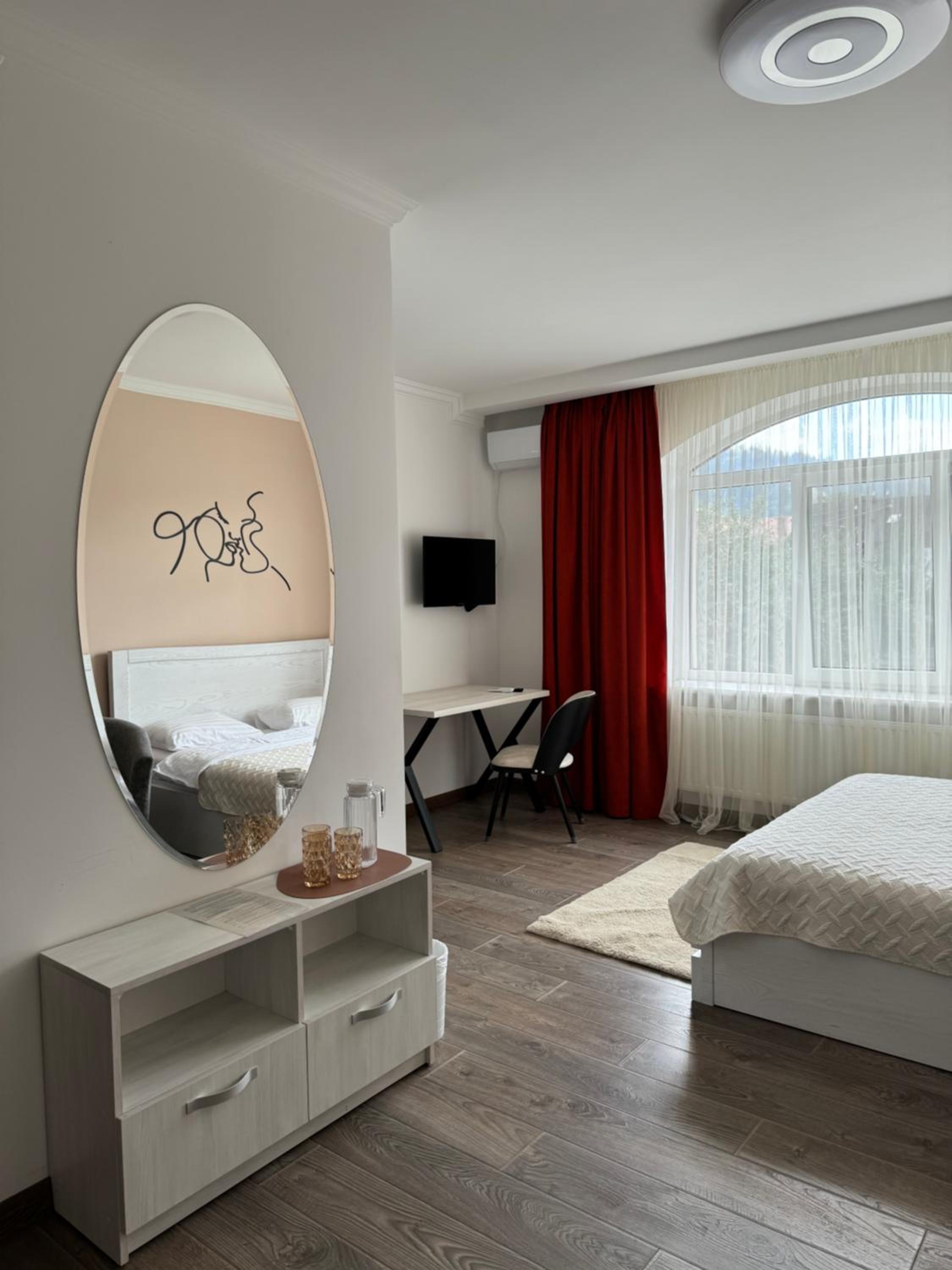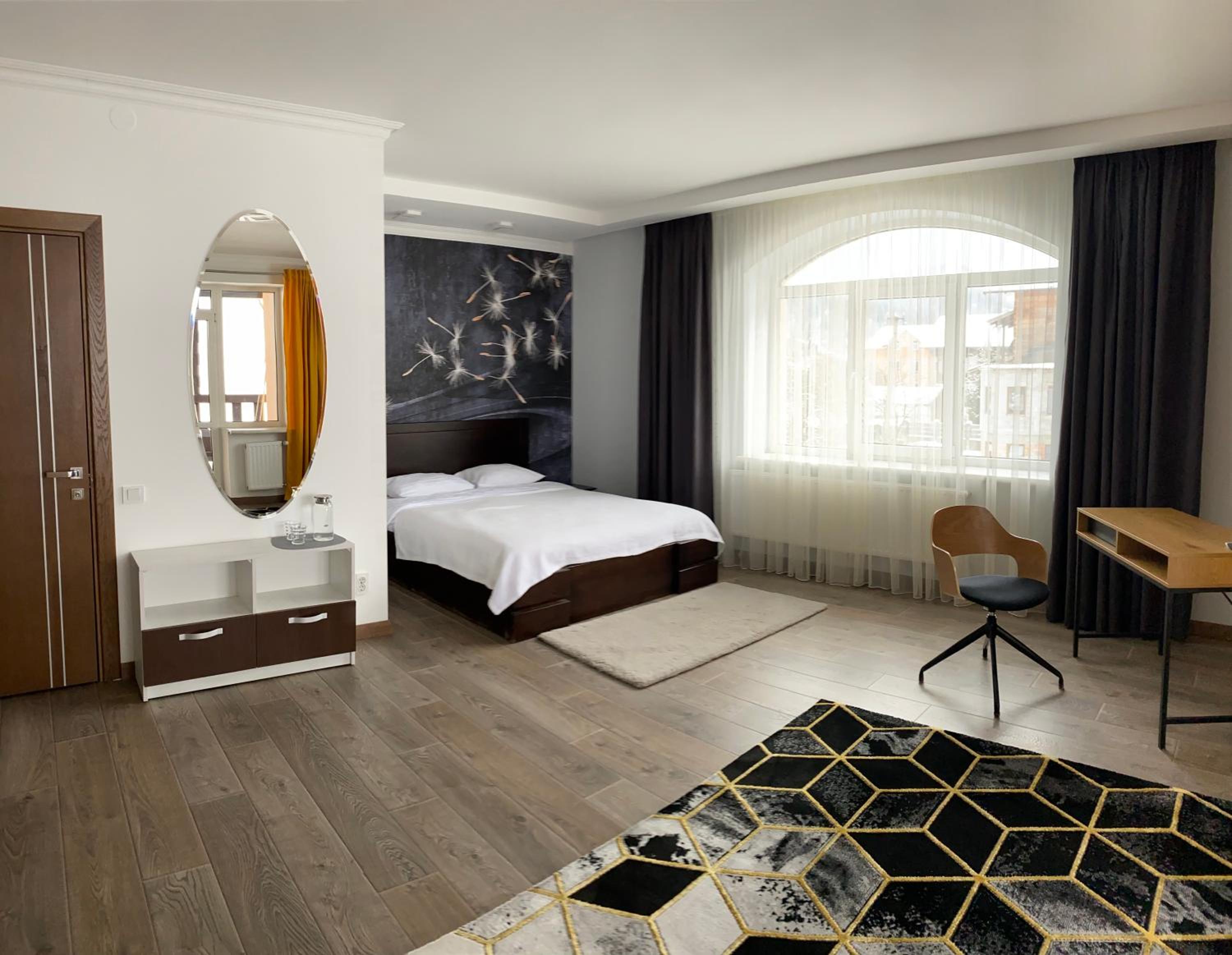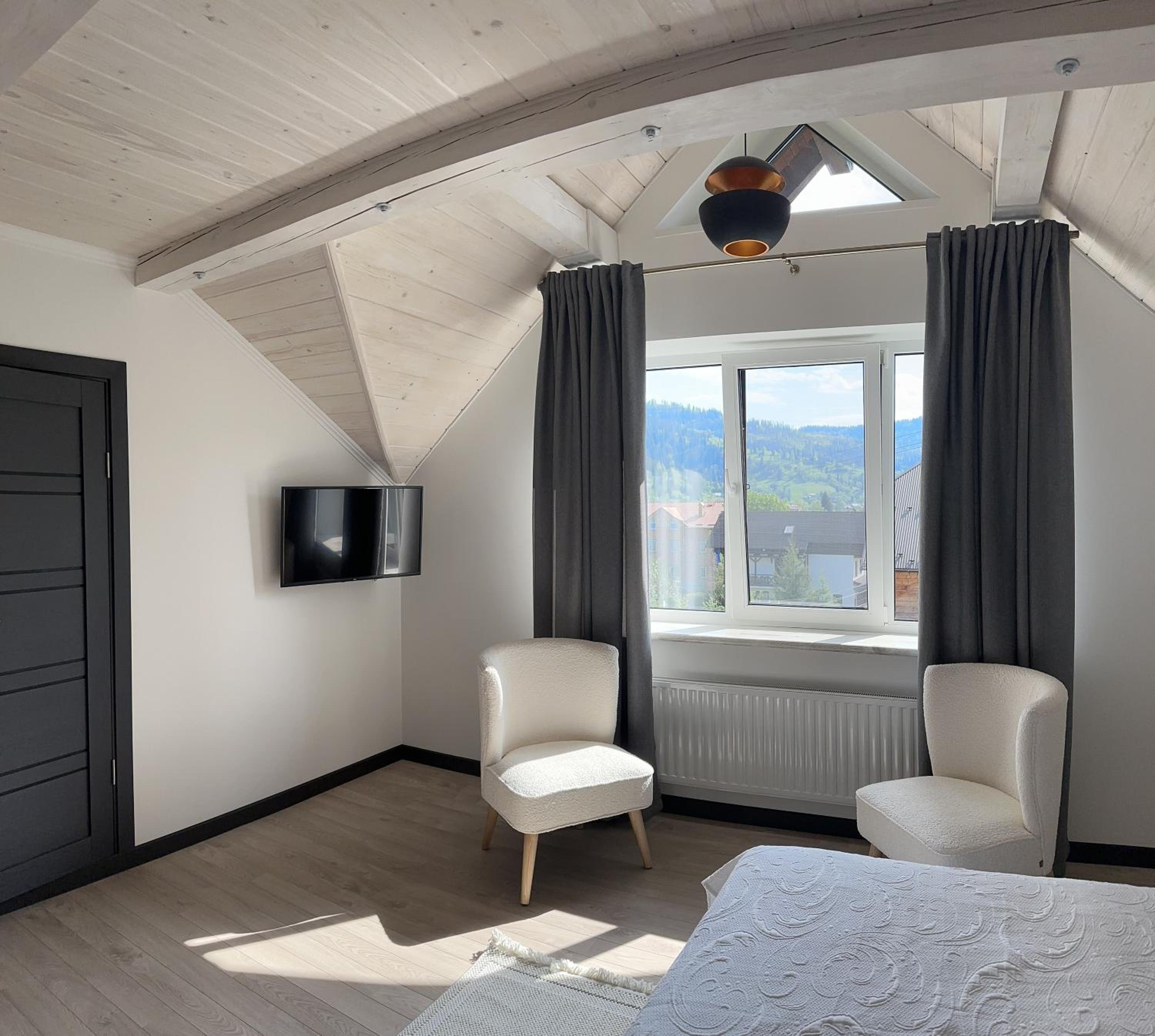 Дуже доступне розташування- вийшов з потяга, перейшов колії і одразу готель. До центру селища дуже близько. Персонал привітний. Номер в стилі Довбуша - в саме серденько ❤️🇺🇦
