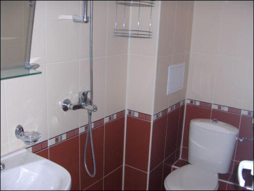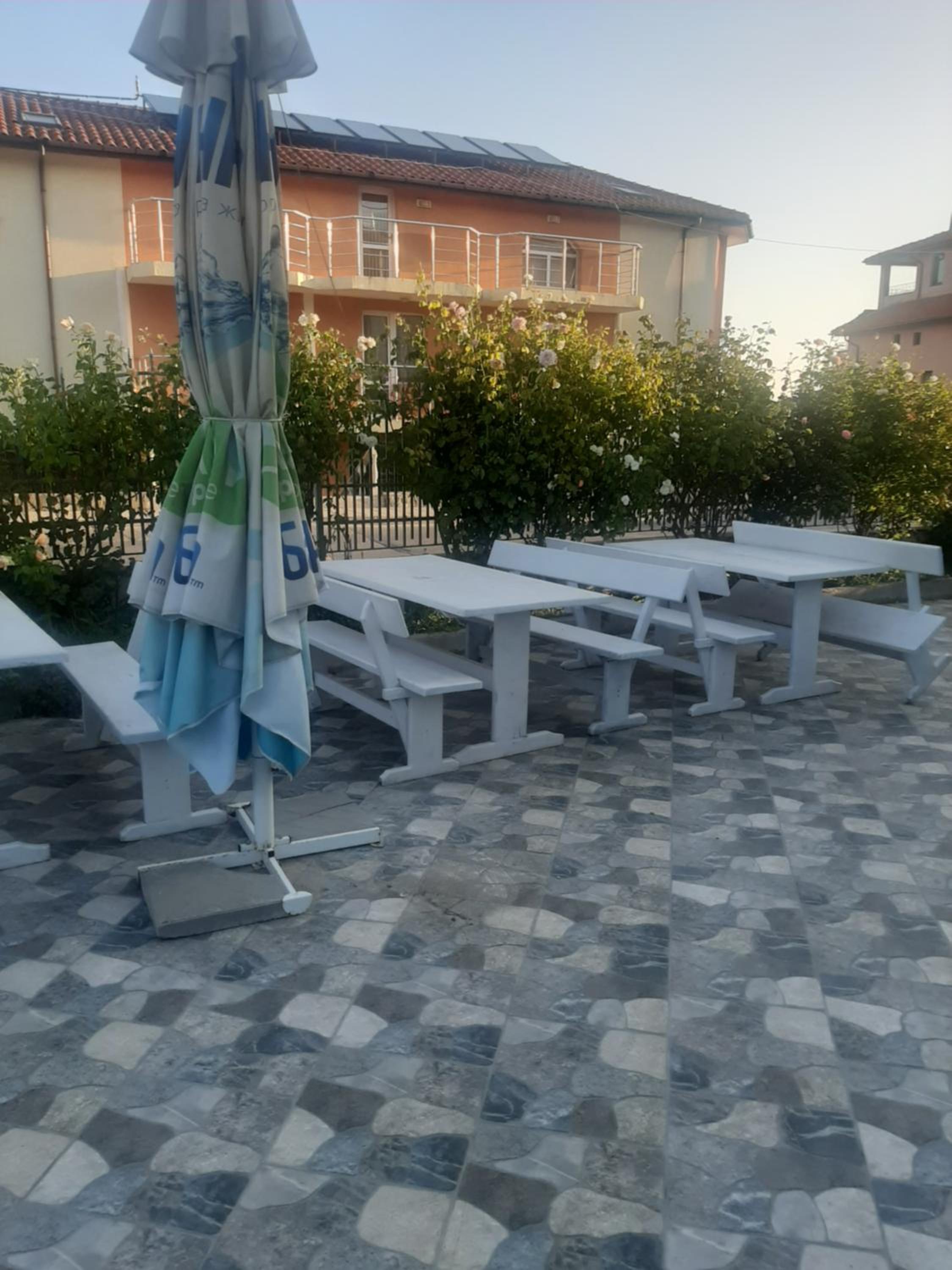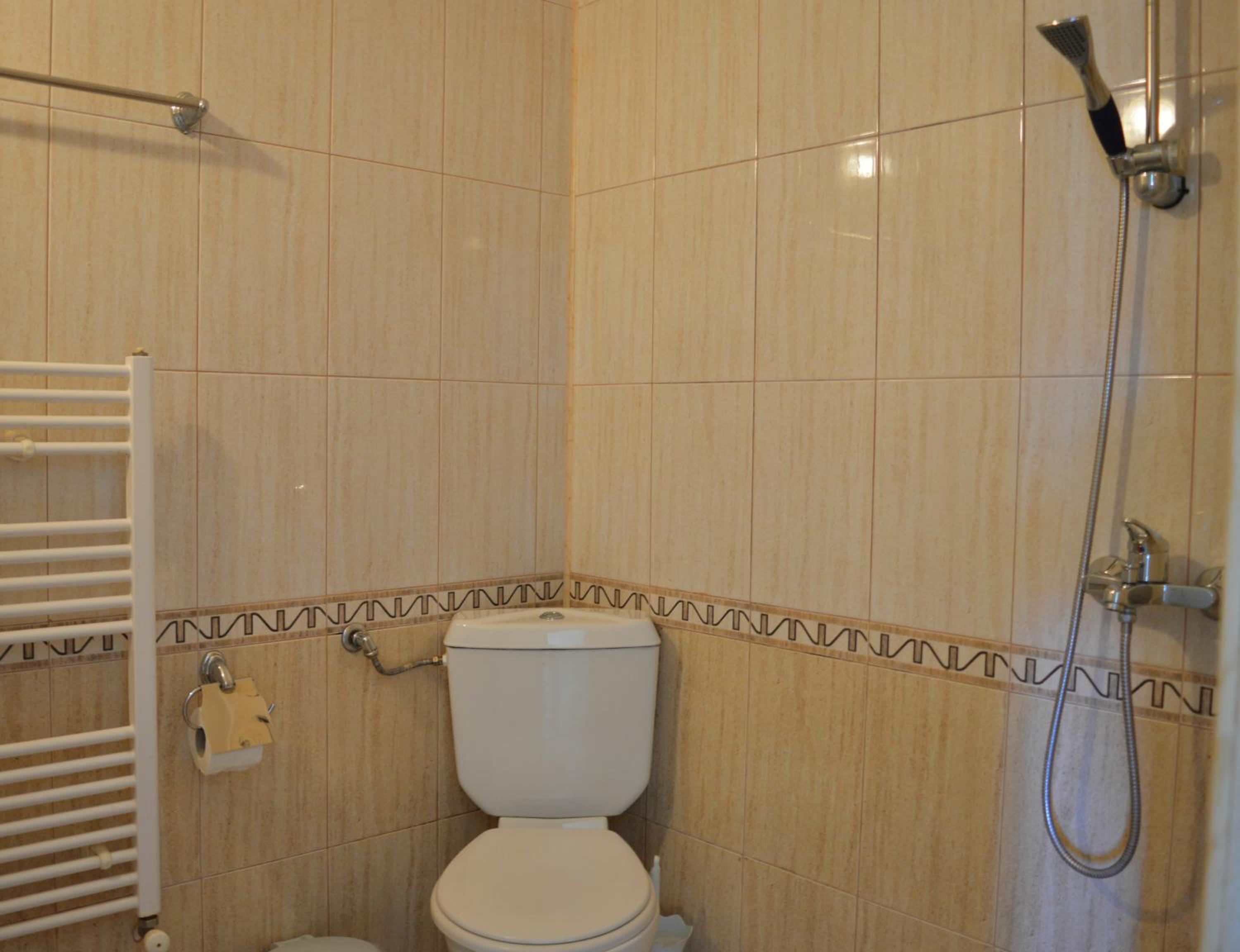 Закуската е на ниско ниво. Няма нормални прегради между терасите. Захабени душкабини.
