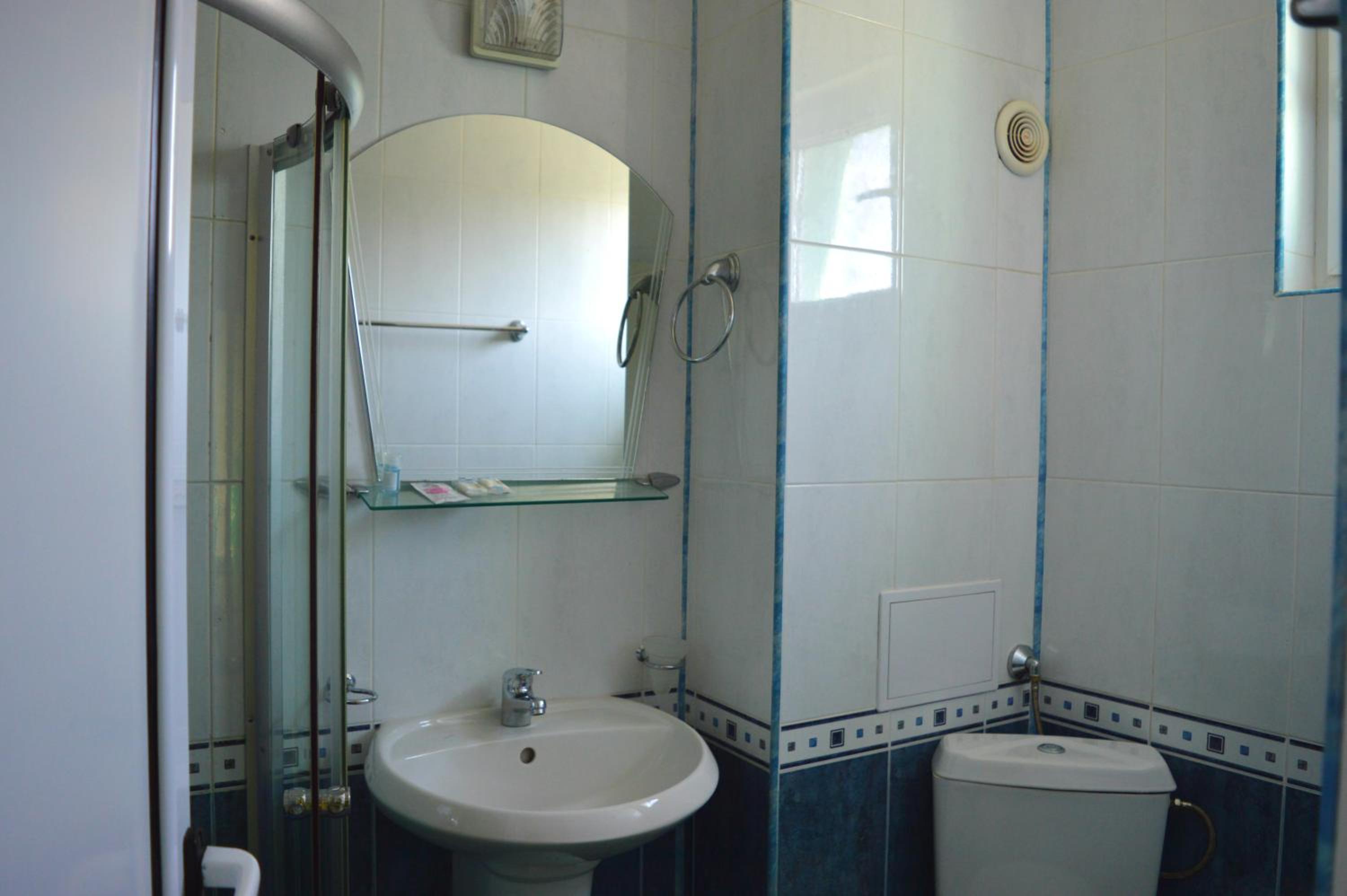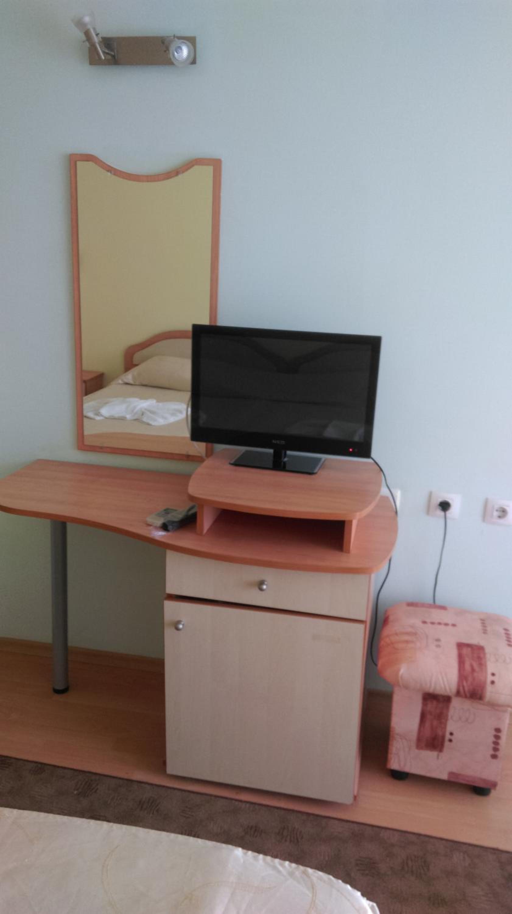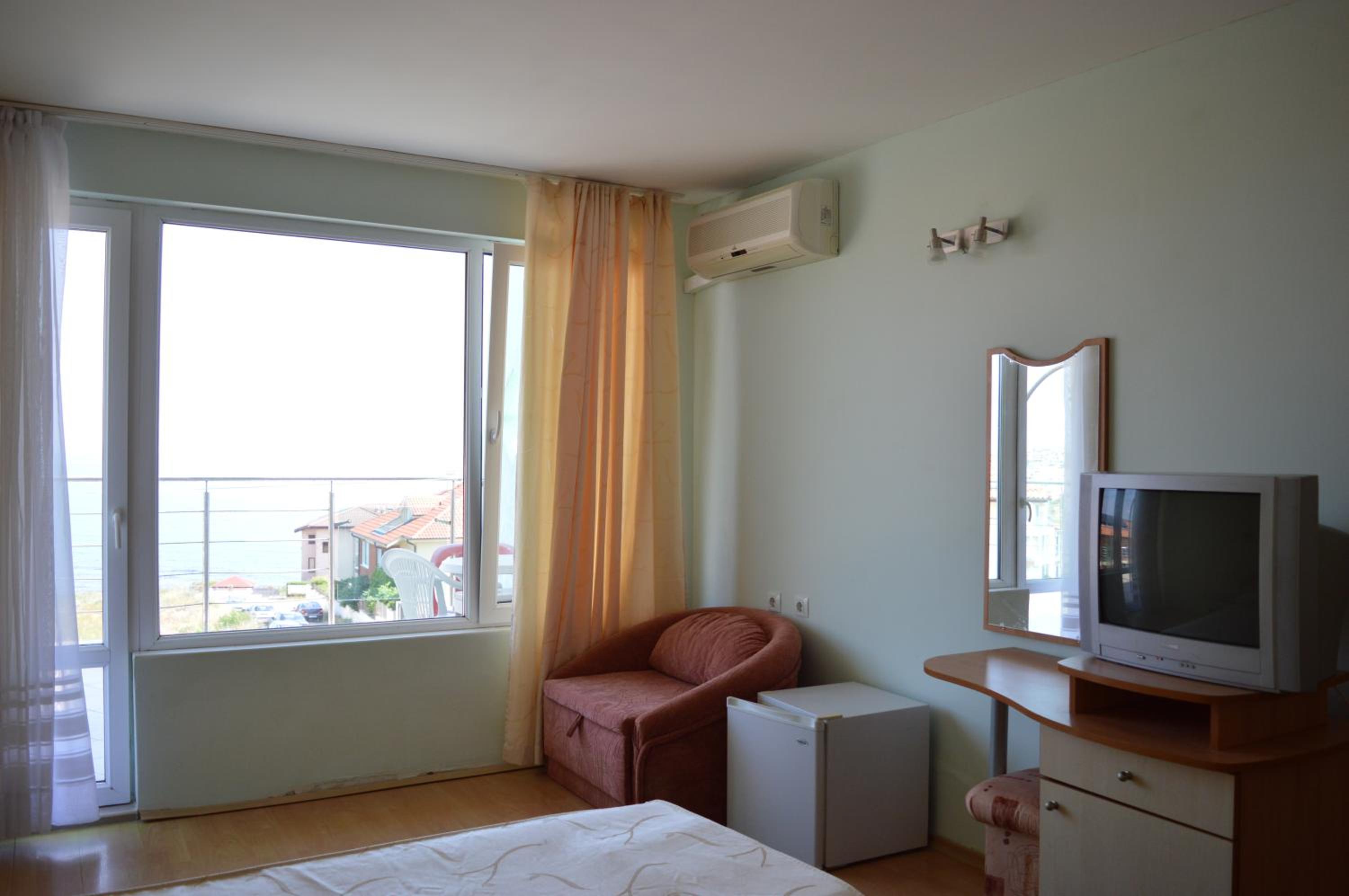 2. Deși am platit un studio cu vedere la mare, tot ce am văzut din mini terasa apartamentului a fost doar clădirea din față. Deși în pozele de prezentare ale studioului, în baie apare o cabina de duș, aceasta nu există. Deci în baie nu există decât o toaletă, o chiuvetă și un furtun de duș prins de perete. La fel și terasa specificată în prezentarea camerei. Suprafața de 1 mp nu poate fi numită terasă sub nicio formă. În momentul în care am solicitat să ne fie alocată o alta cameră, mi s-a spus că este prima dată când cineva este nemulțumit de cea mai bună cameră din hotel. Și am fost invitată politicos sa merg în cameră și să mă odihnesc.