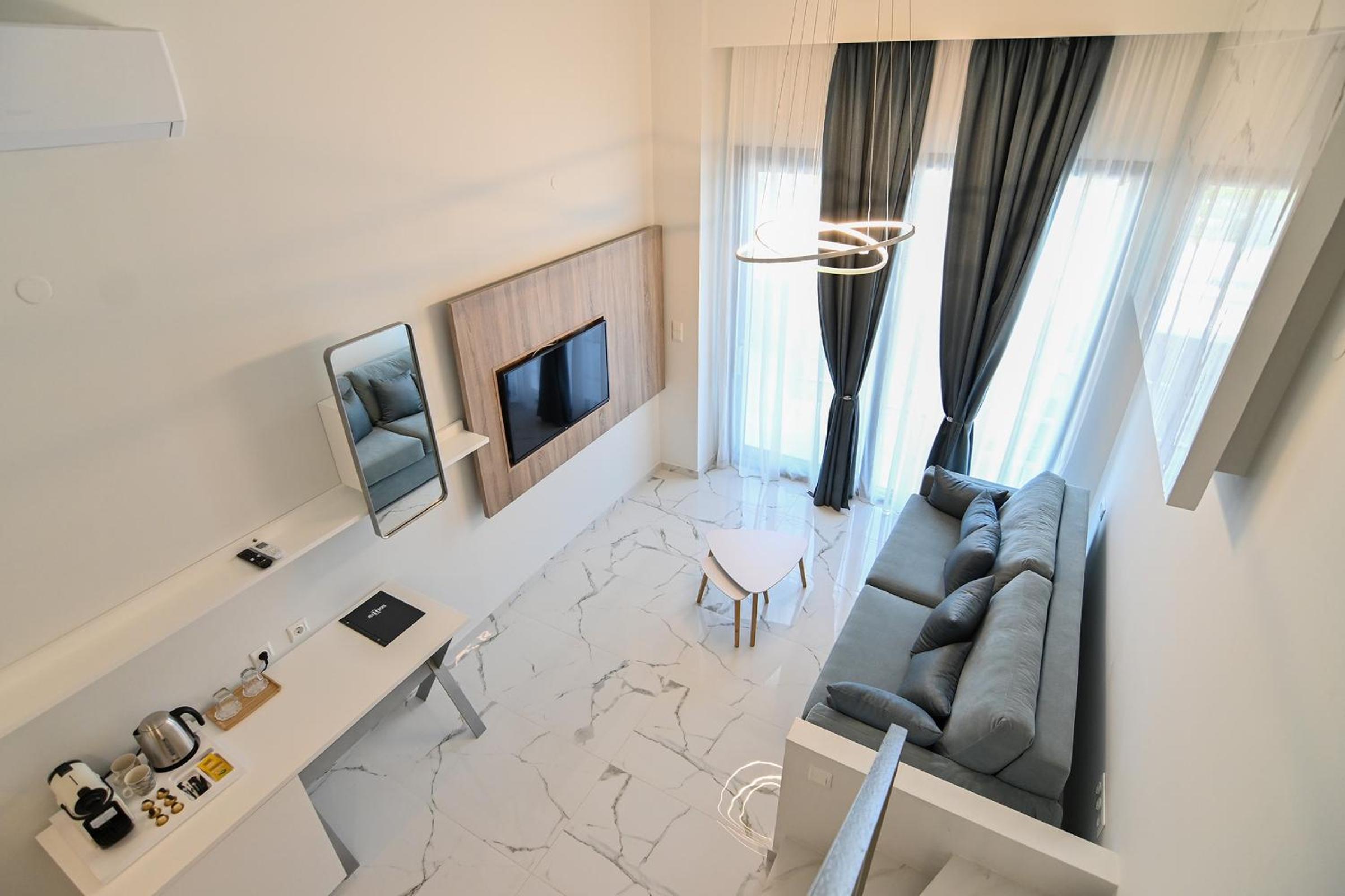 Amenities Galore: Relax by the pool, sip cocktails at the beach bar, and savor delicious meals at the restaurant overlooking the Aegean Sea.