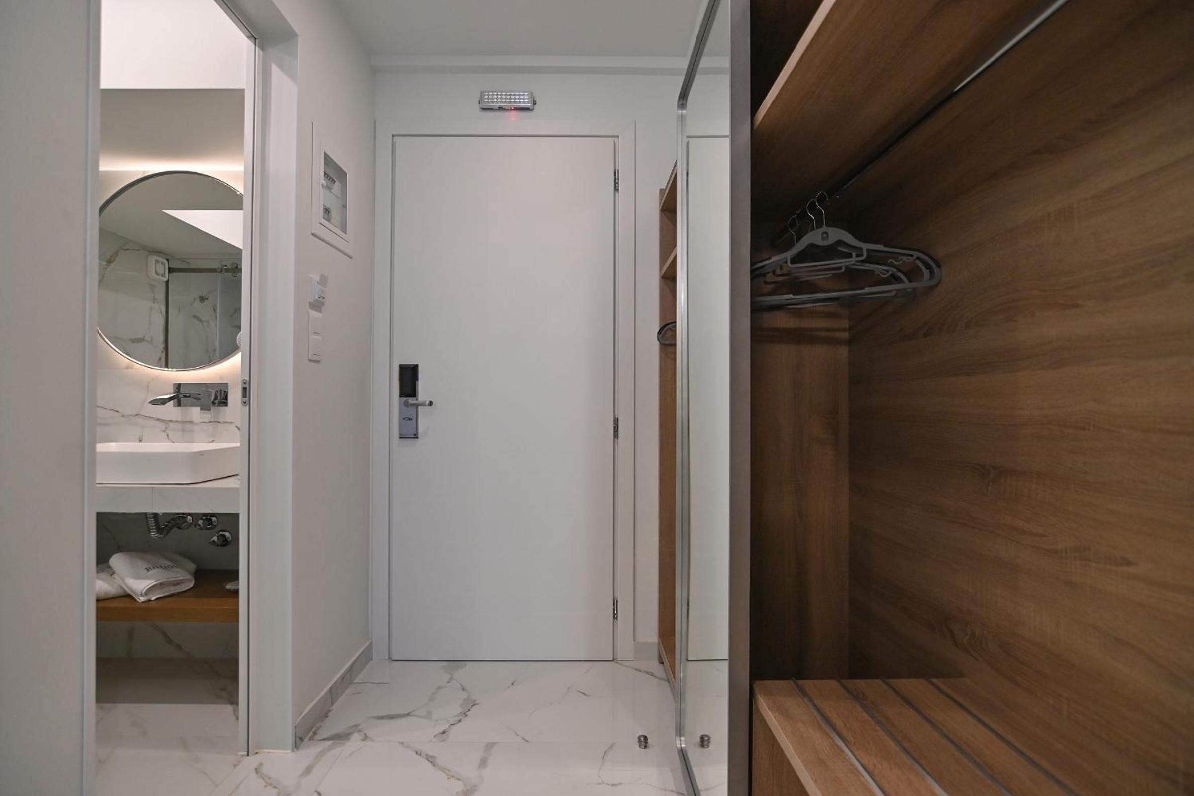 Стаята в която бяхме настанени нямаше нищо общо със снимките... стари мебели, водата в банята едва течеше и къпането беше предизвикателство, закуската е еднообразна. Също като минус отбелязвам, че на прилежащия към хотела плаж се допускат и хора, които не са гости на хотела, което създава допълнителен проблем с местата.