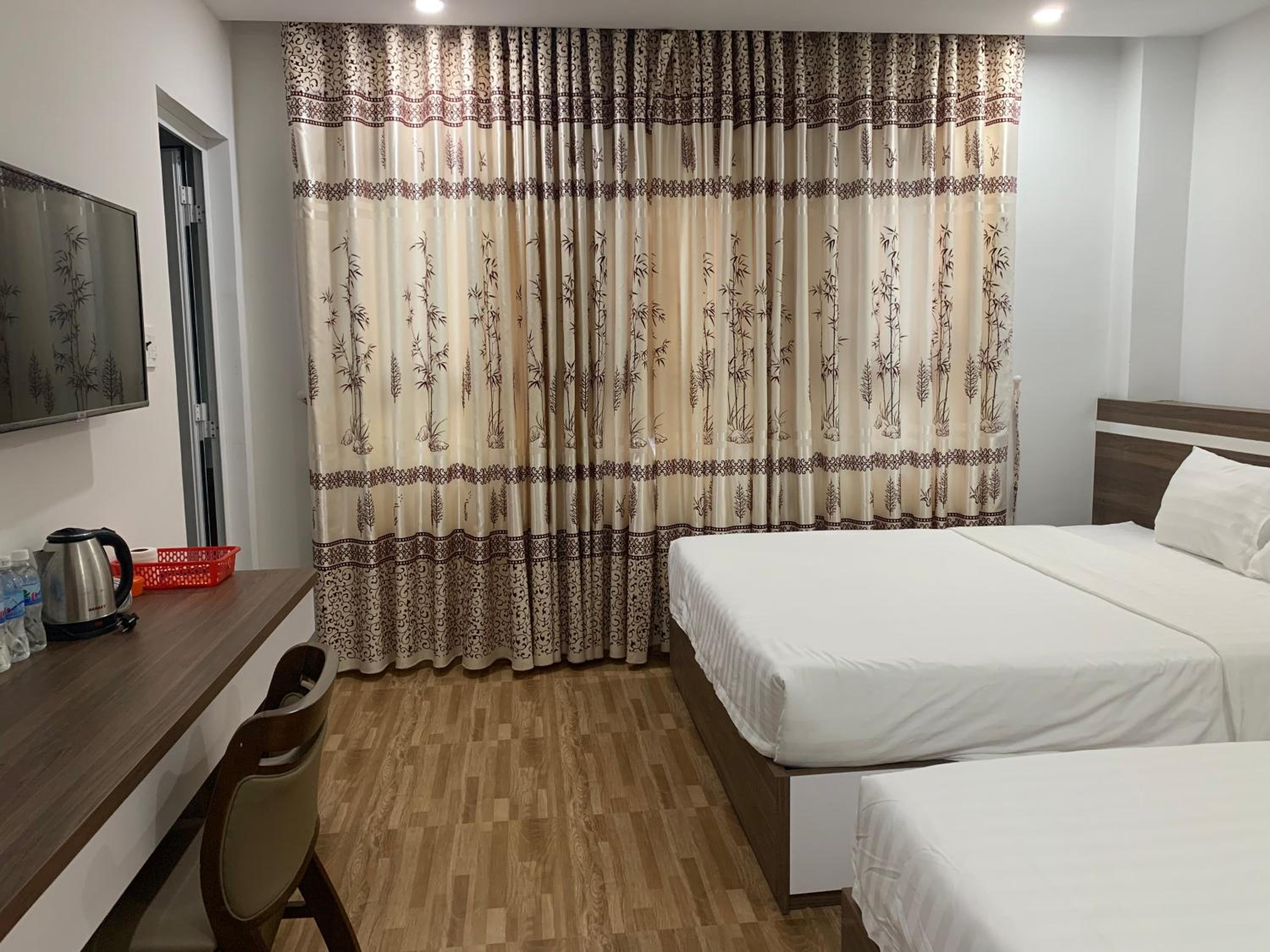 Experience tranquility at Minh Hoàng Hotel with a beautiful garden setting. Enjoy the convenience of free parking, room service, and a 24-hour front desk. Relax in air-conditioned rooms with city views, a flat-screen TV, and comfortable bedding. Indulge in a peaceful retreat just 700 meters from Tuy Hoa Beach. Book now for a memorable stay!