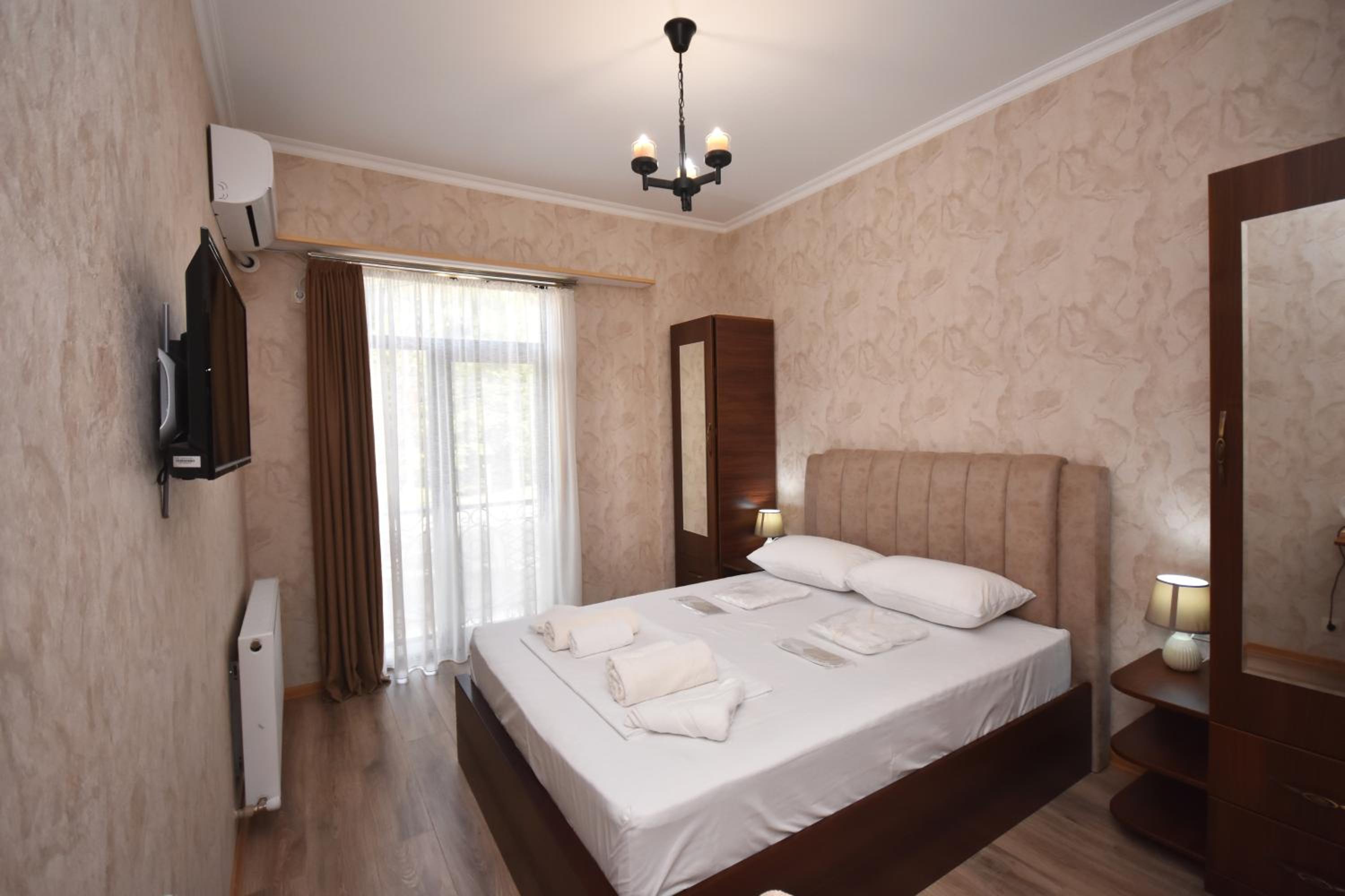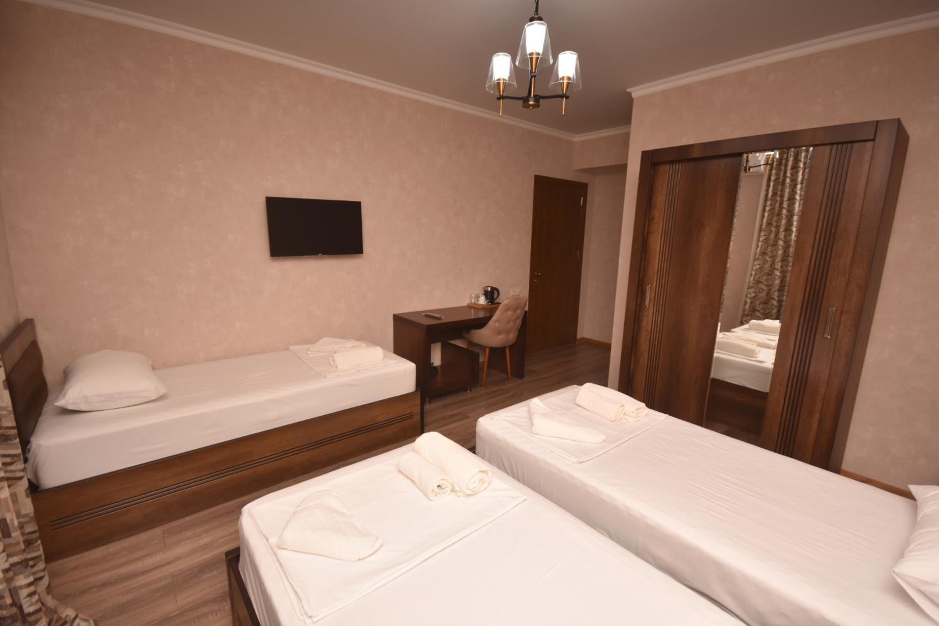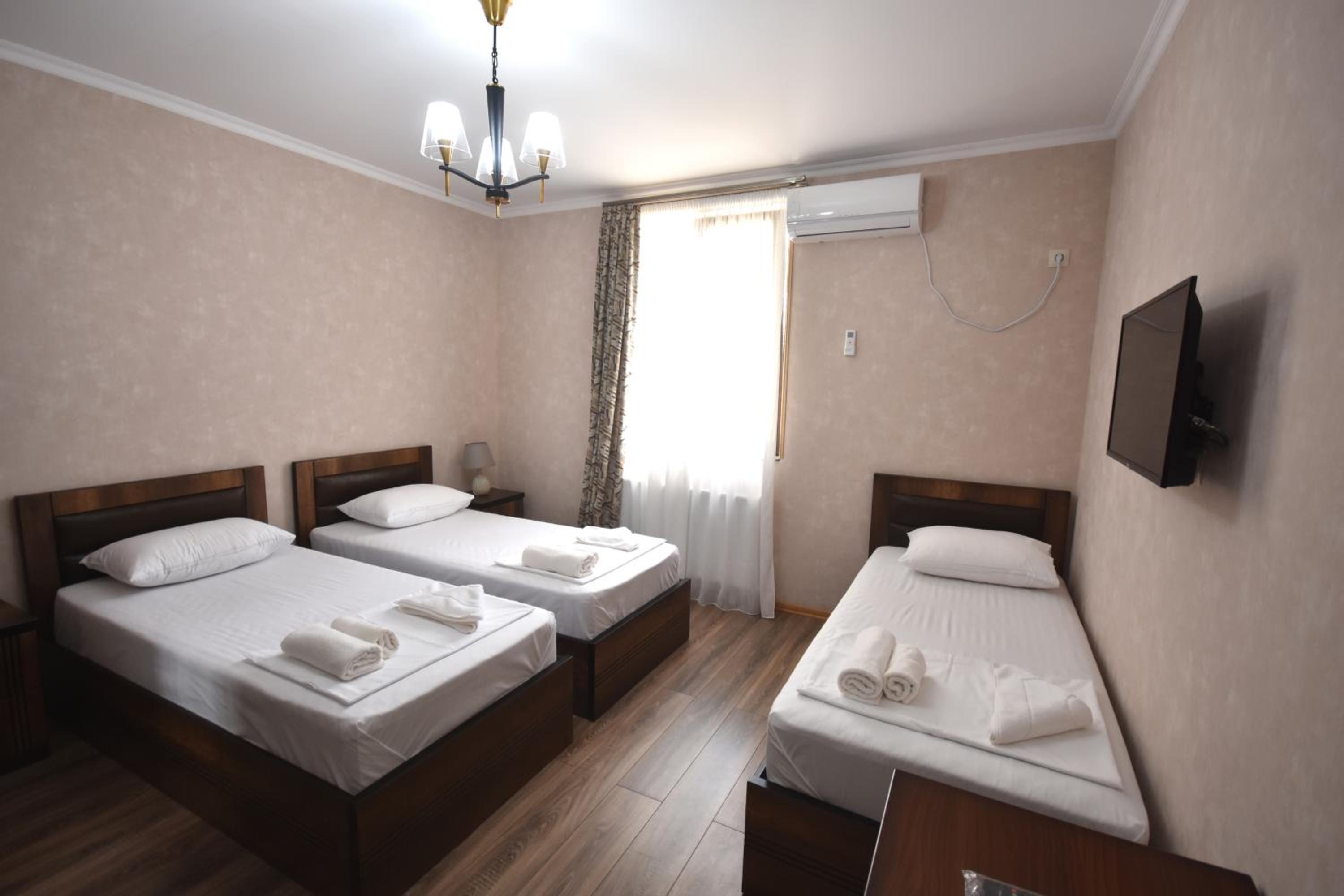 This hotel is in the very center of Zugdidi. Everything is close. Easy to navigate. Rooms are clean, conditioners are on place during the hot temperature. Overall well done..