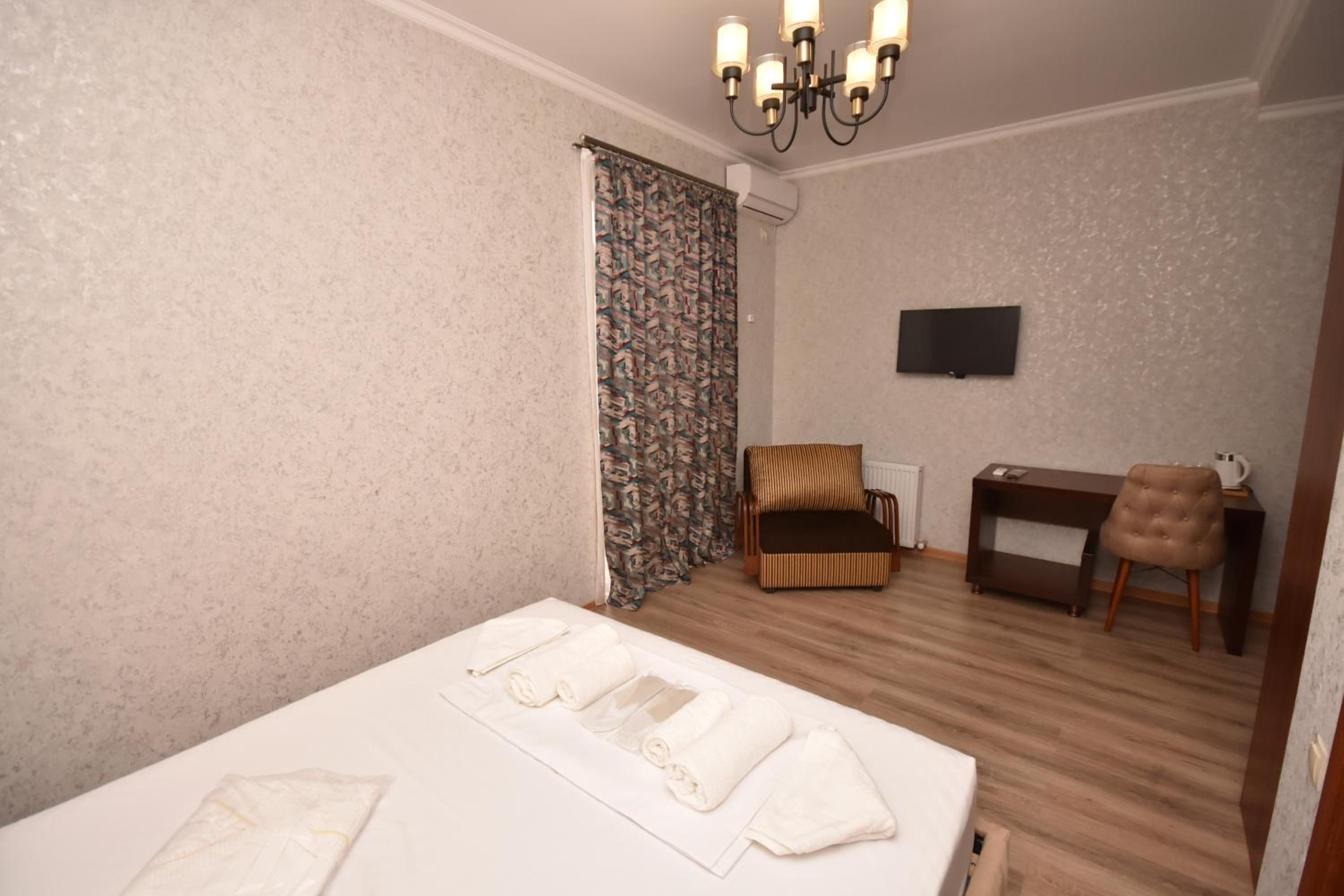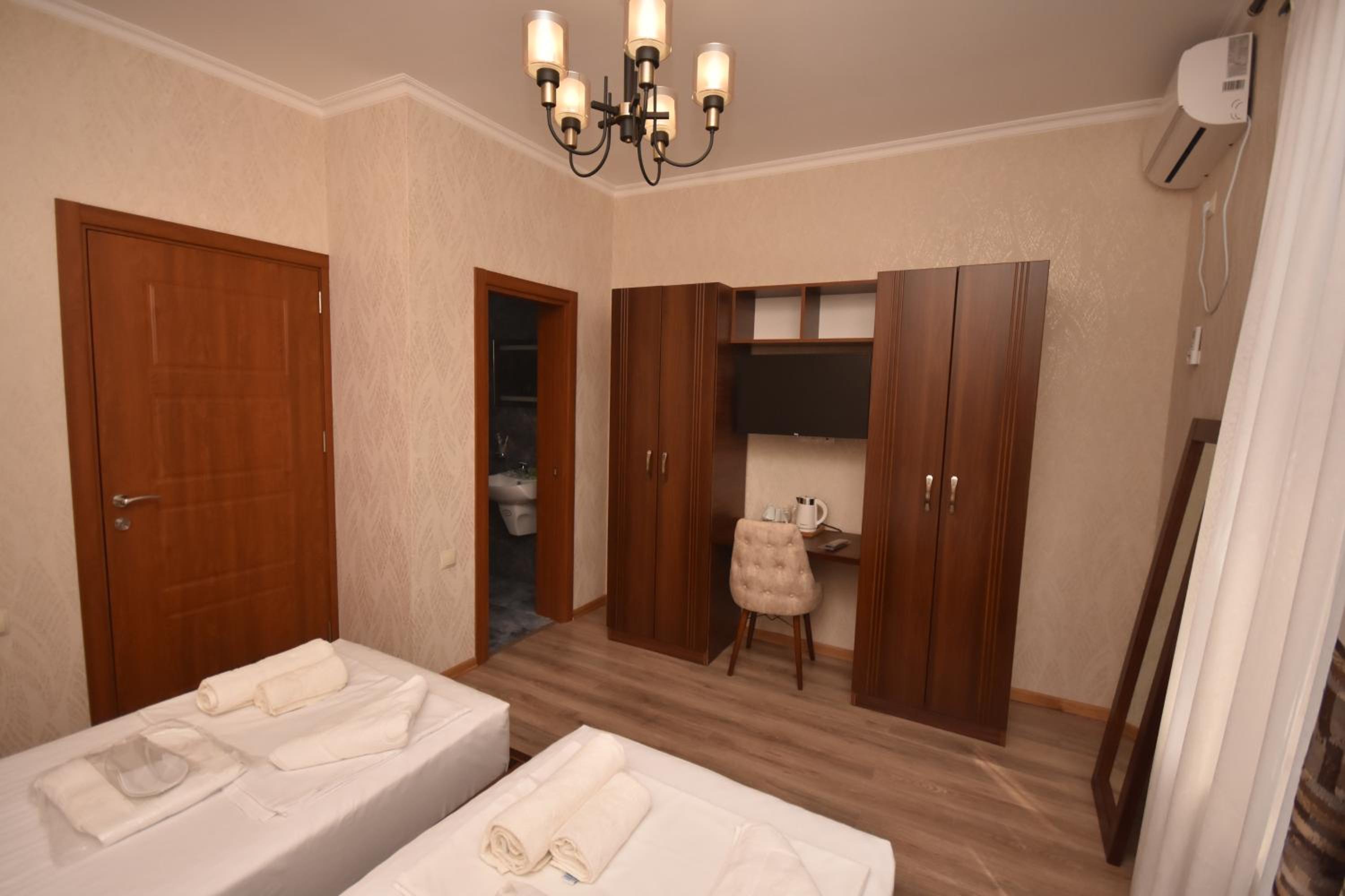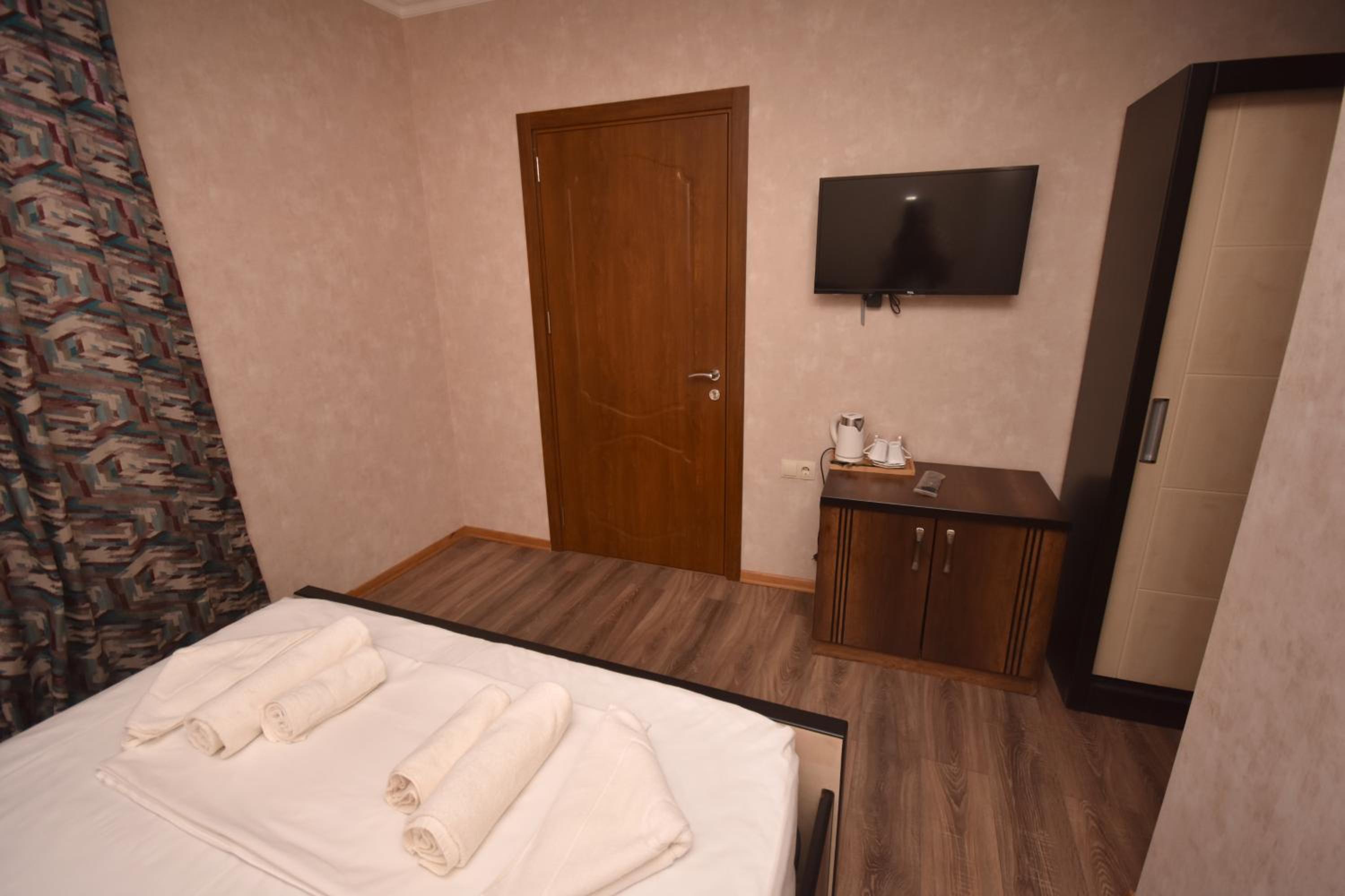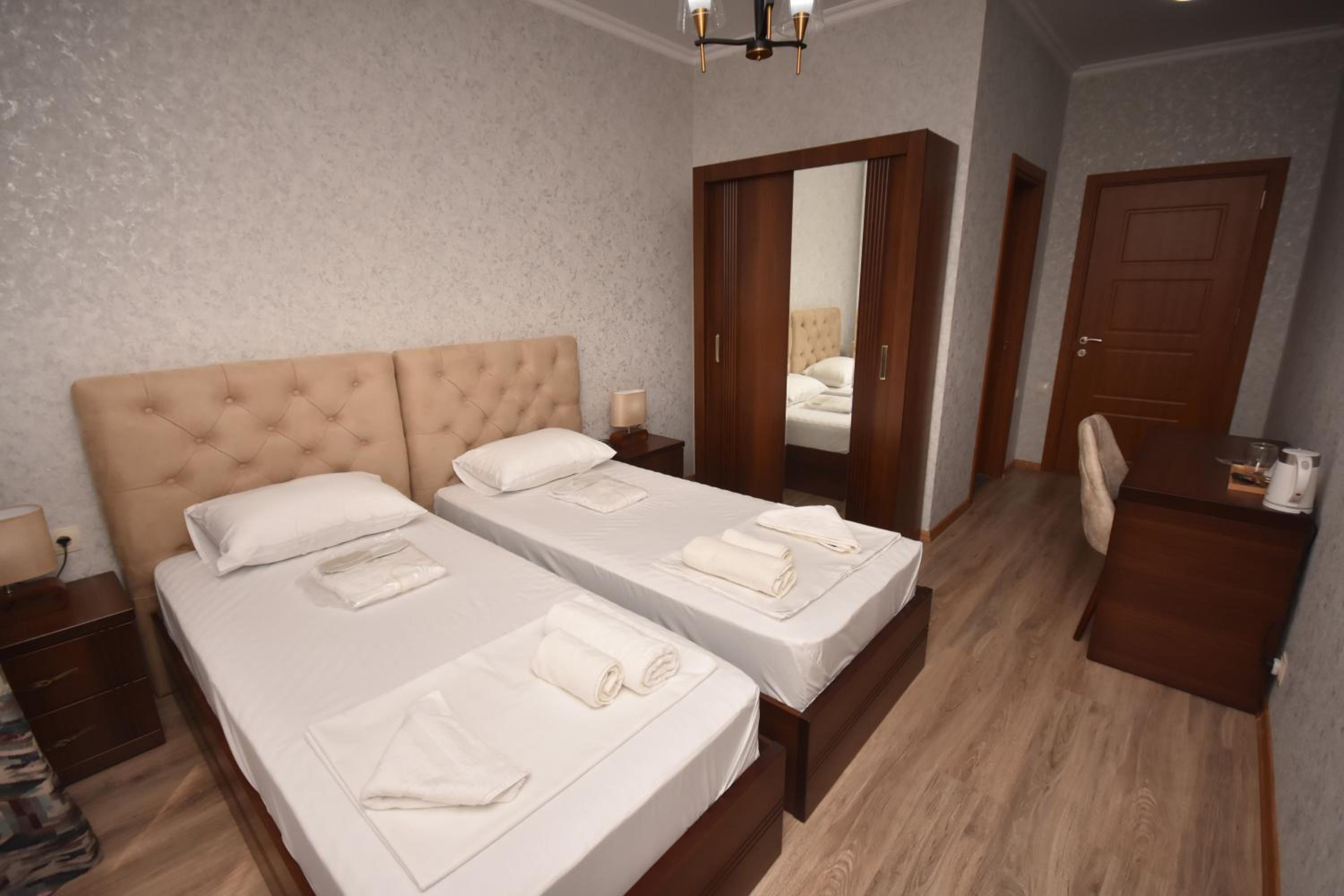 This hotel is in the very center of Zugdidi. Everything is close. Easy to navigate. Rooms are clean, conditioners are on place during the hot temperature. Overall well done..