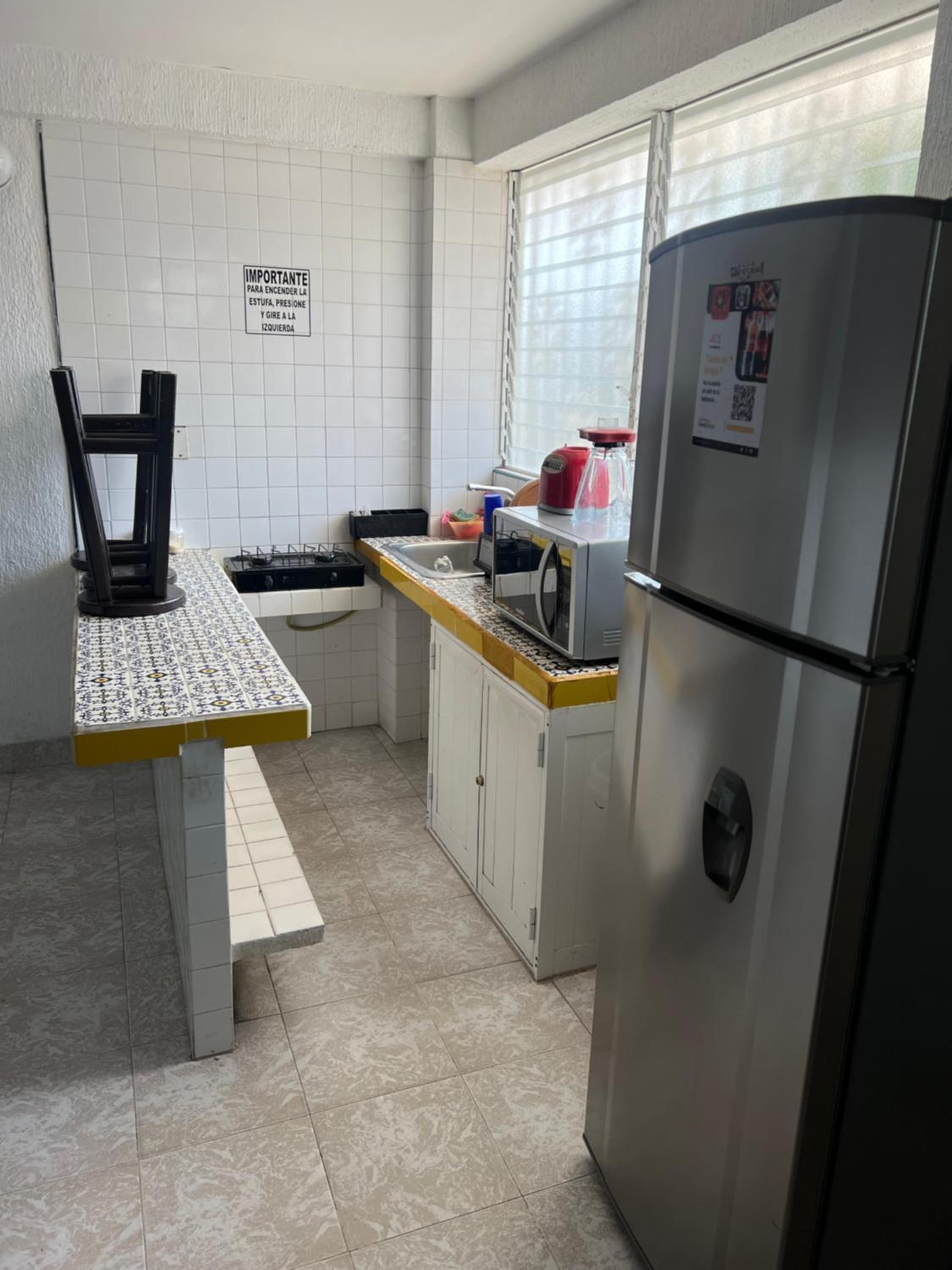 El gran espacio con el que cuenta la habitación. Igual el contar con una estufa y utensilios de cocina es muy bueno. El refri igual.