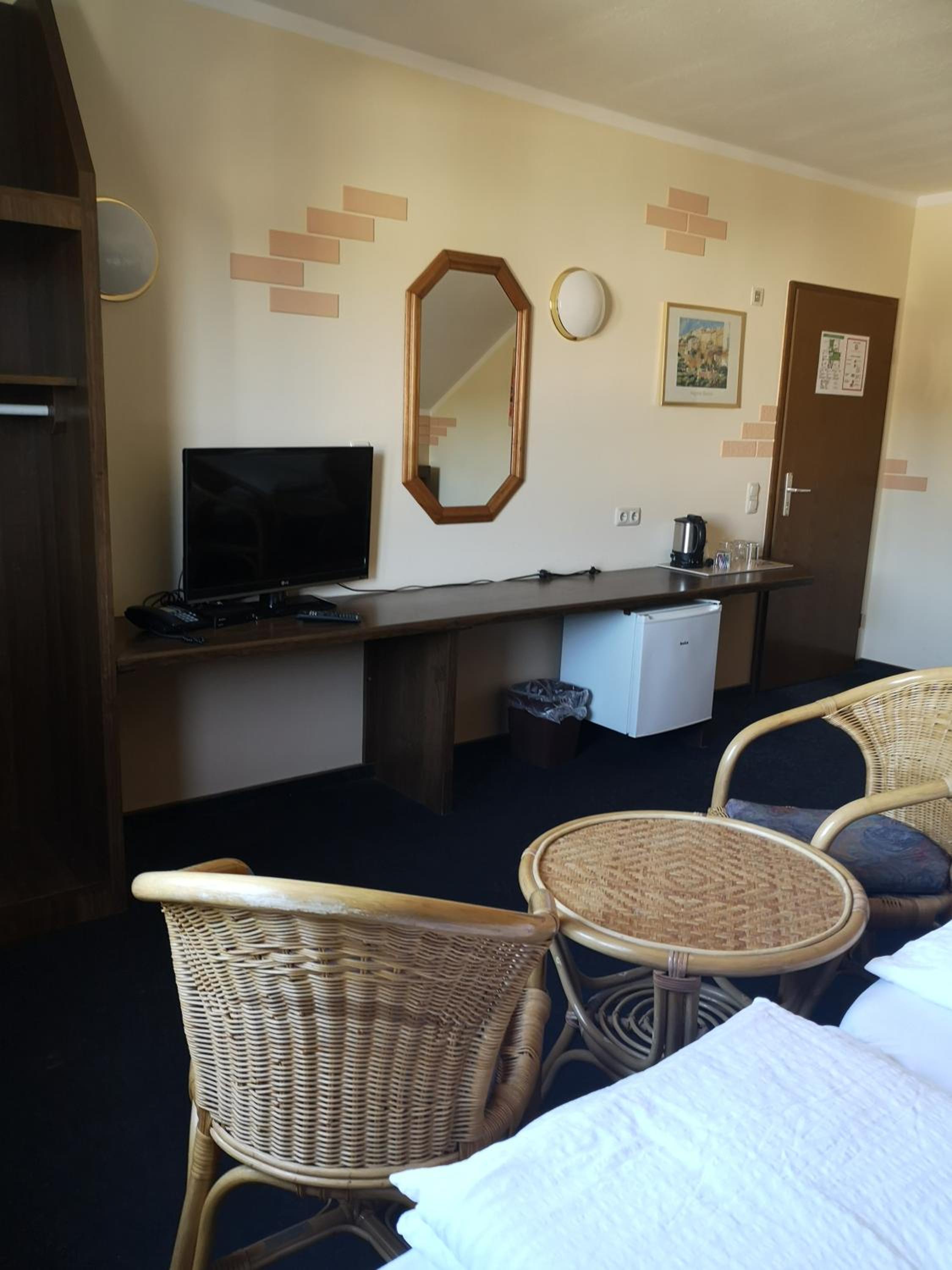 Die Lage ist gut, da wir nach Brühl ins Phantasialand gefahren sind und es von dort aus auch nur ein Katzensprung war. 15 Minuten reichen bis zum dortigen Parkplatz. Man kann auch direkt vor den Zimmern parken. Unser Zimmer war auf der ruhigeren Nicht-Straßenseite.
