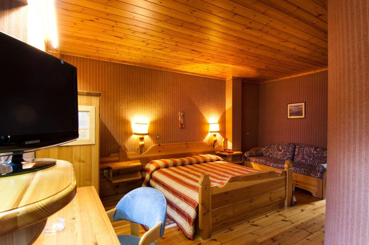 Experience the cozy Alpine-style rooms at Villaggio Hotel Aquila, each equipped with modern amenities like LCD TVs and balconies in some. The wood-panelled ceilings add a touch of warmth to your stay.