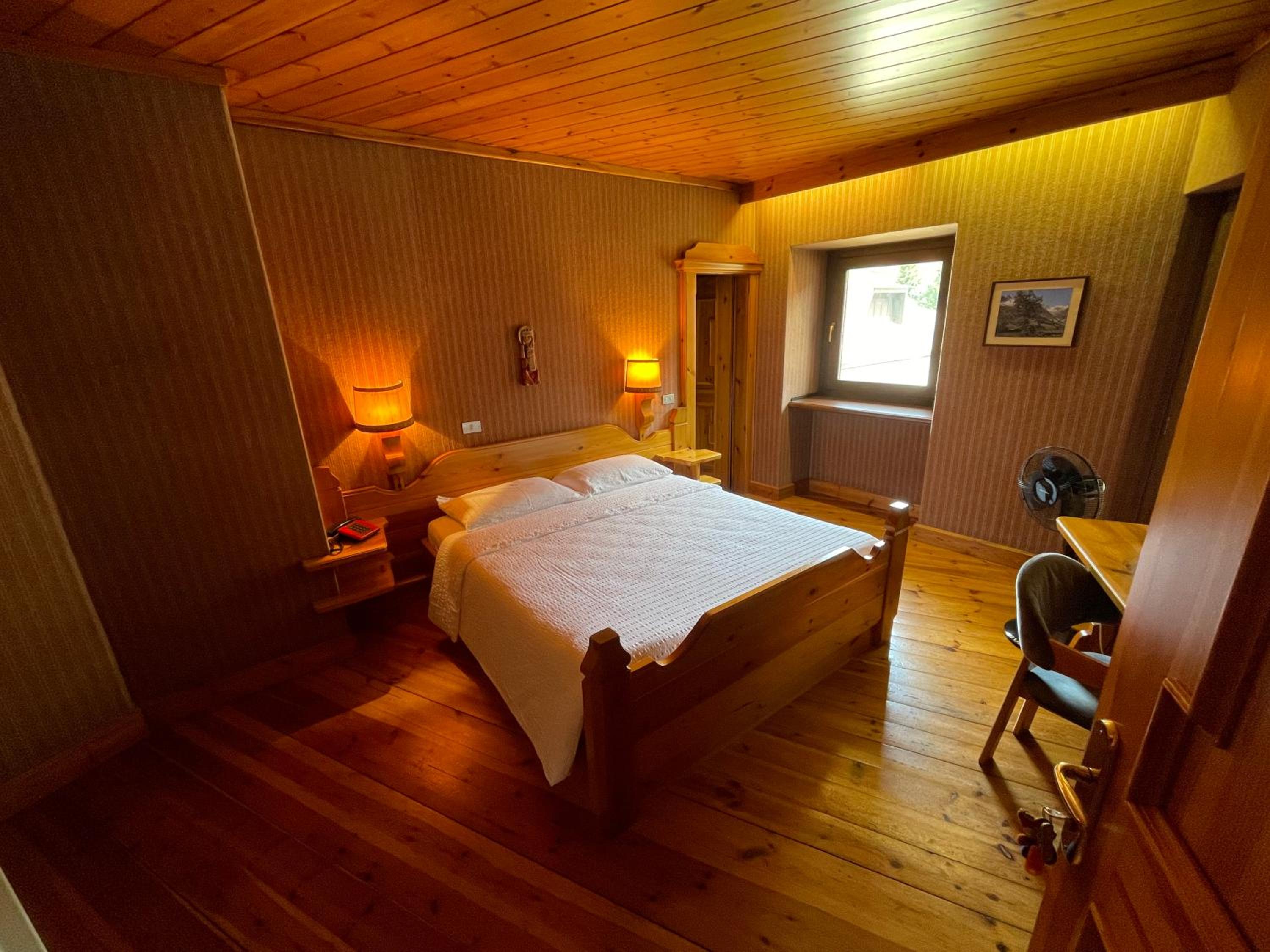 La camera è ampia, pulita e in tema legno come il resto dell'hotel. Colazione variegata e abbondante.