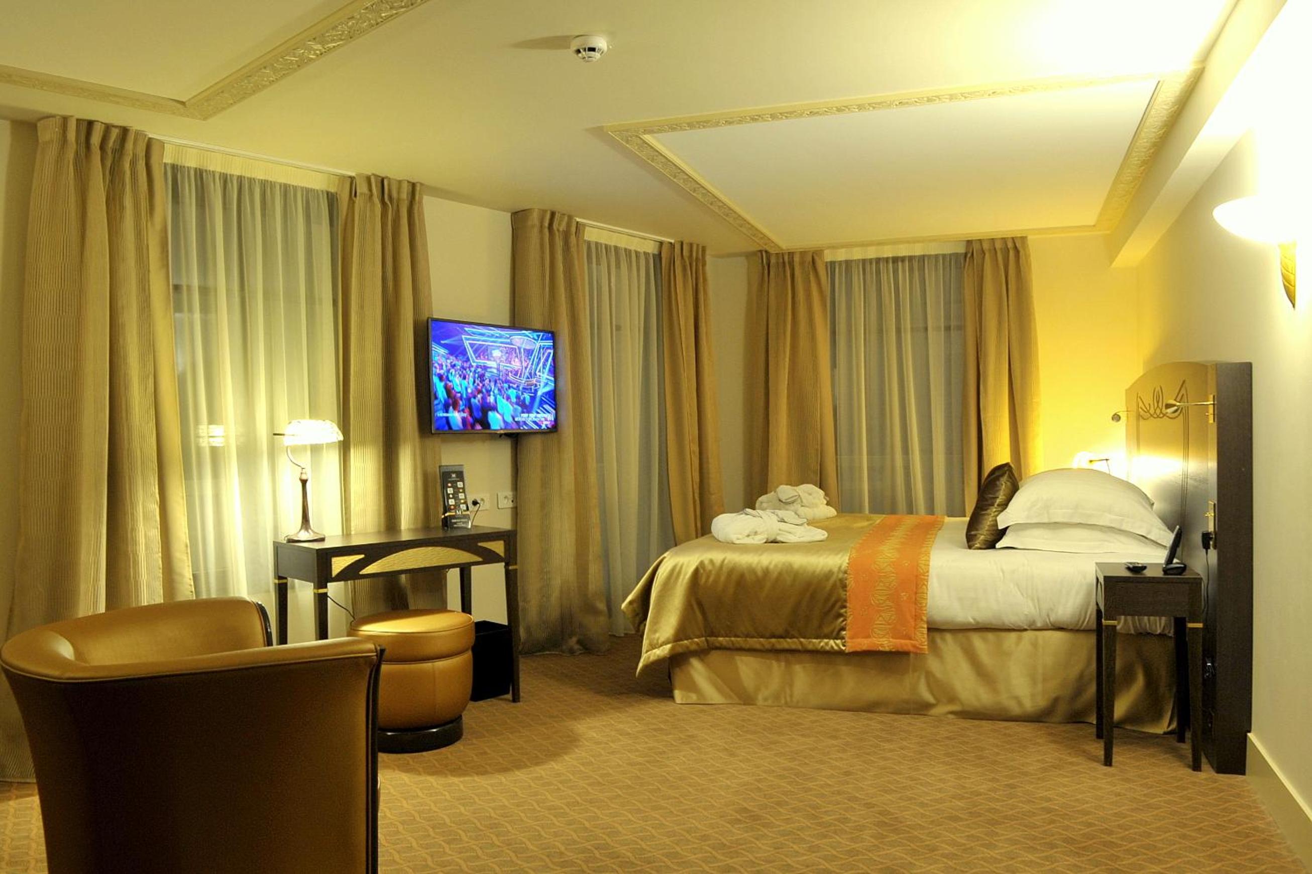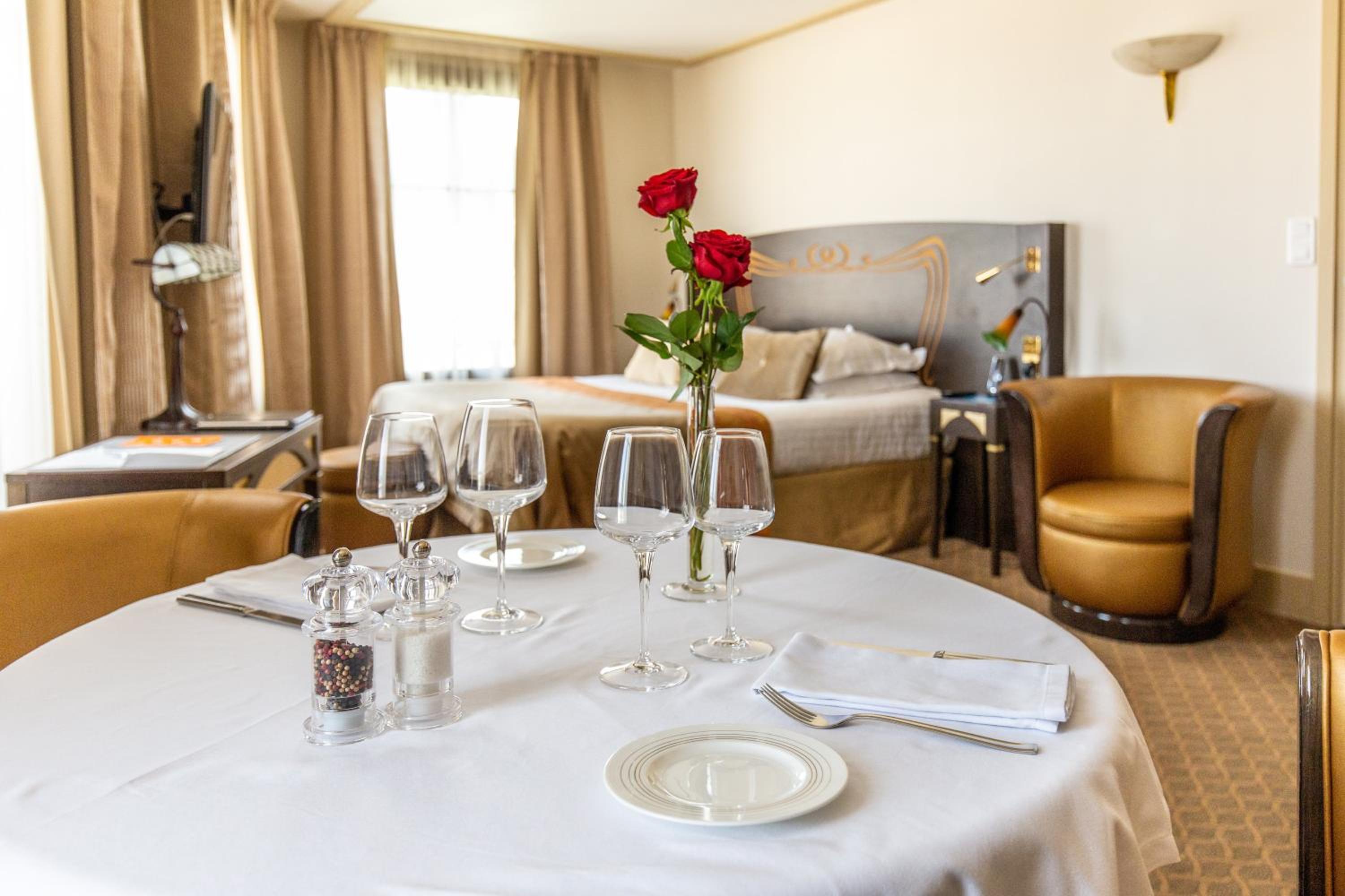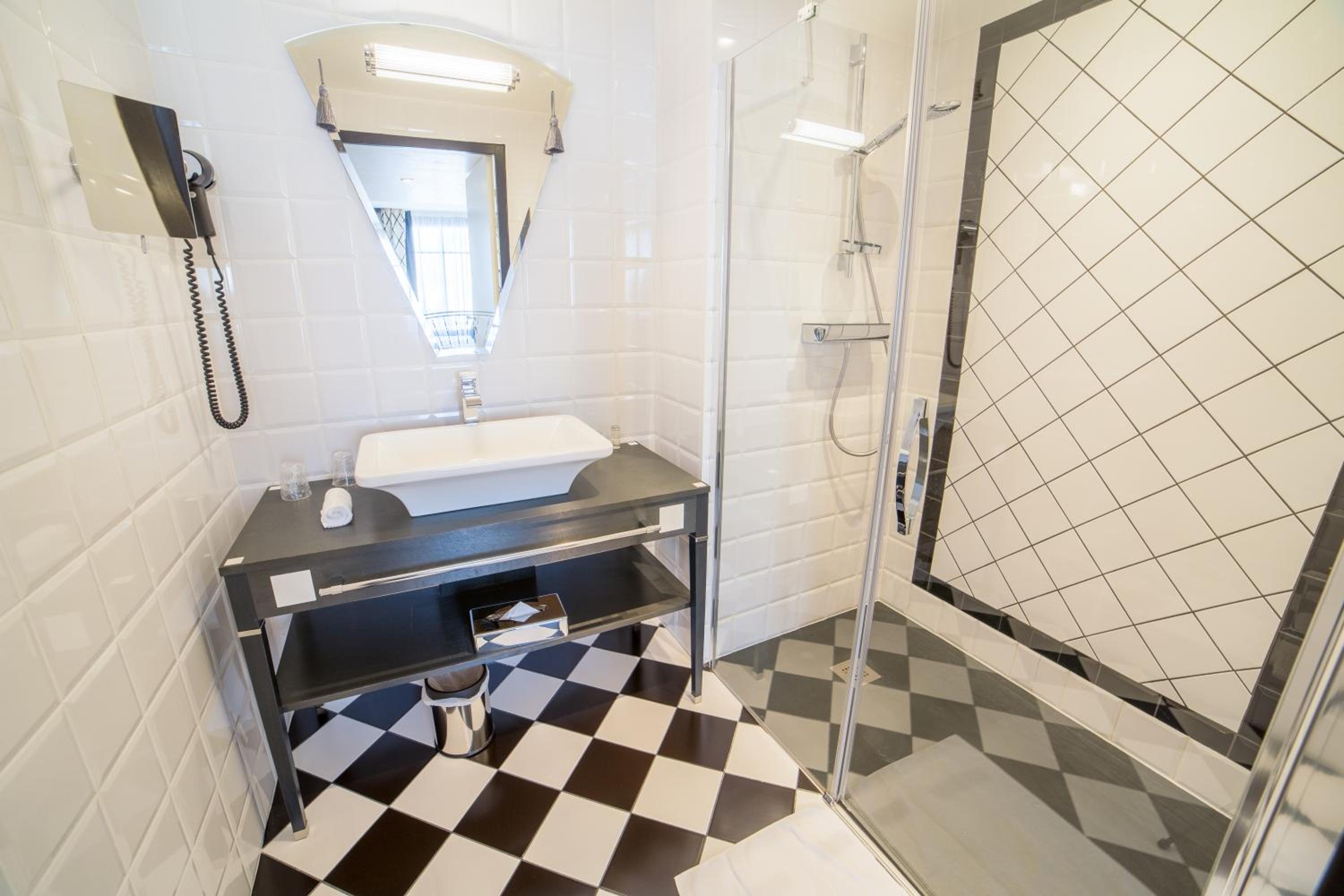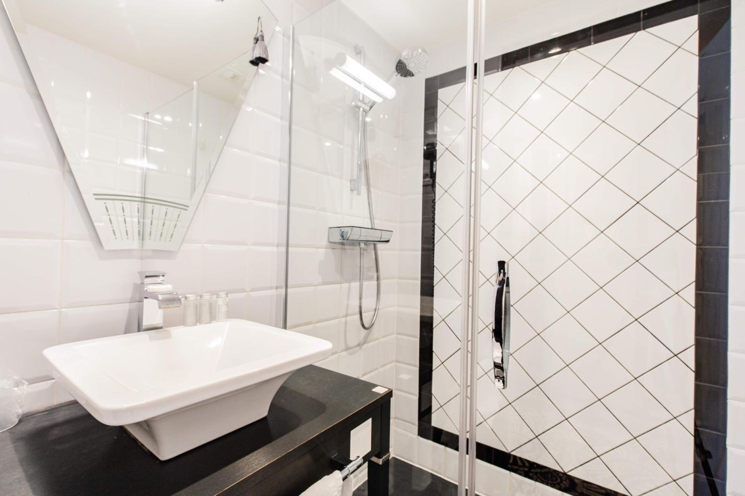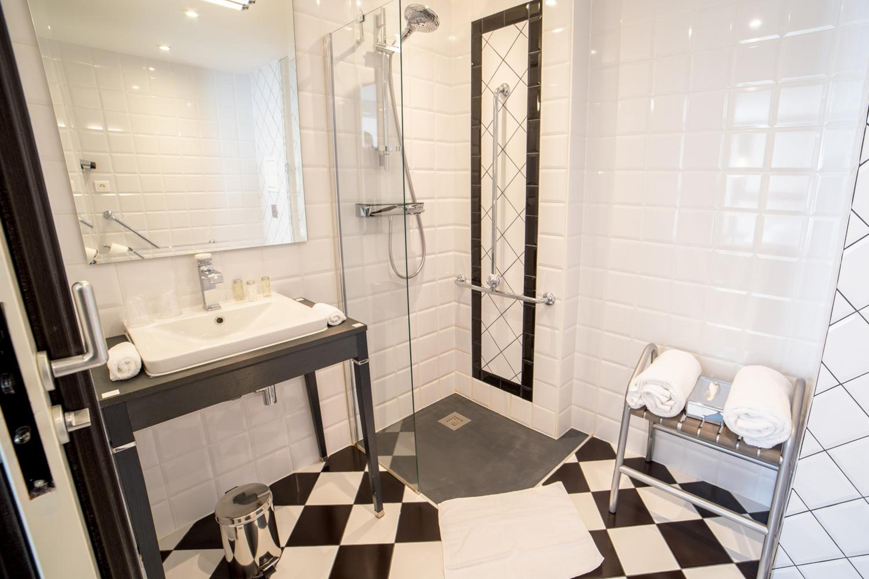 Experience the elegance of our soundproofed rooms decorated in neutral tones, each equipped with modern amenities including a flat-screen TV and walk-in shower. Upgrade to a suite for the added luxury of a spa bath.