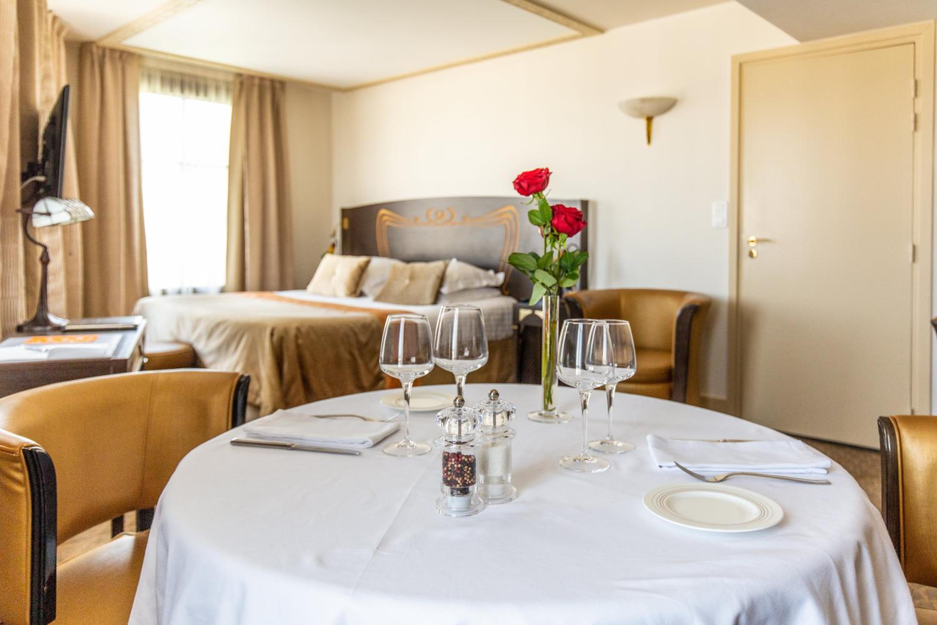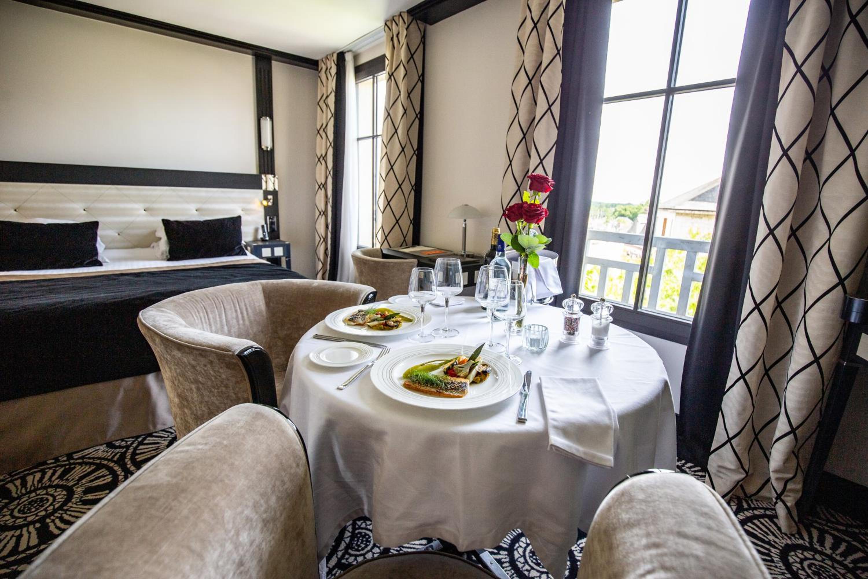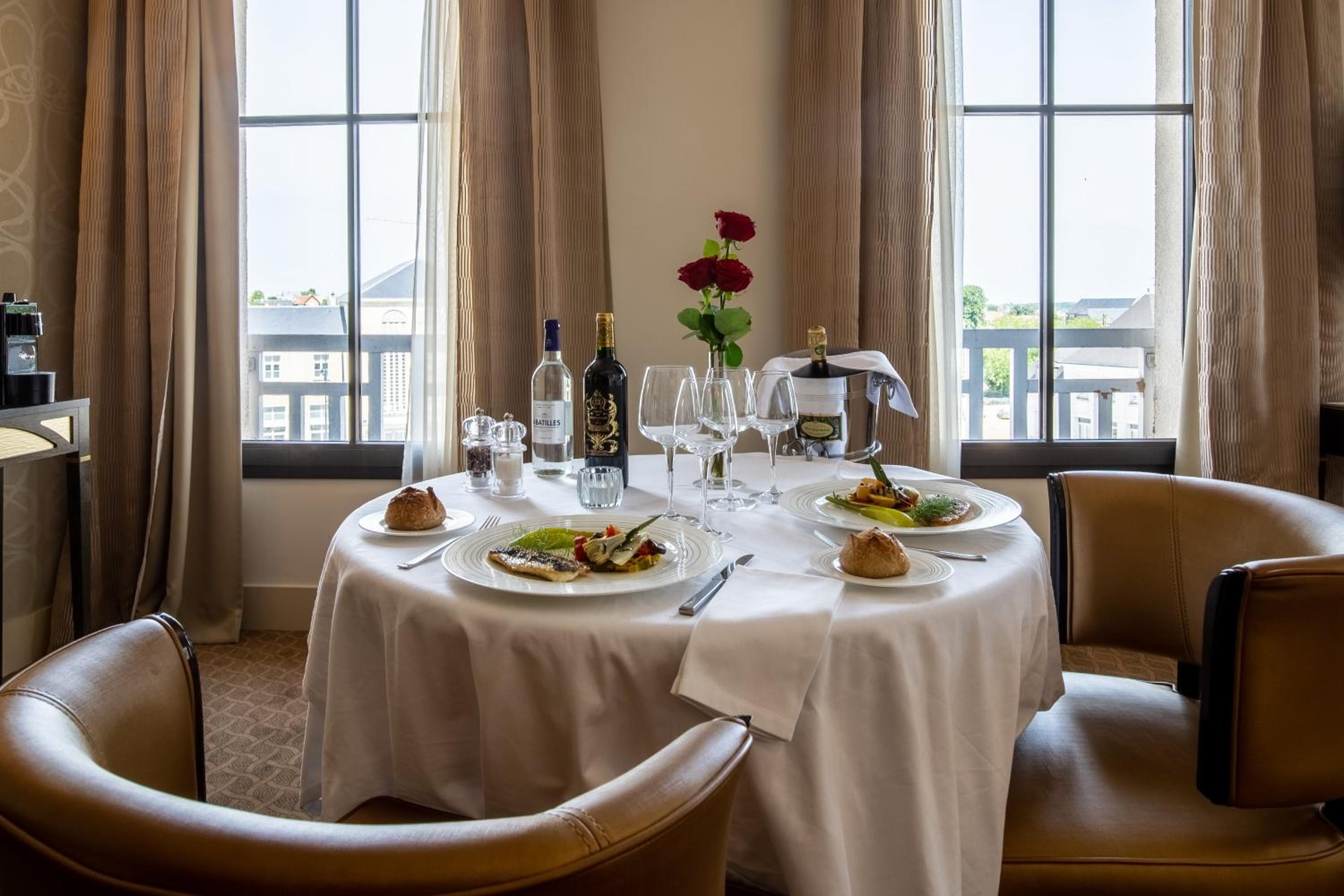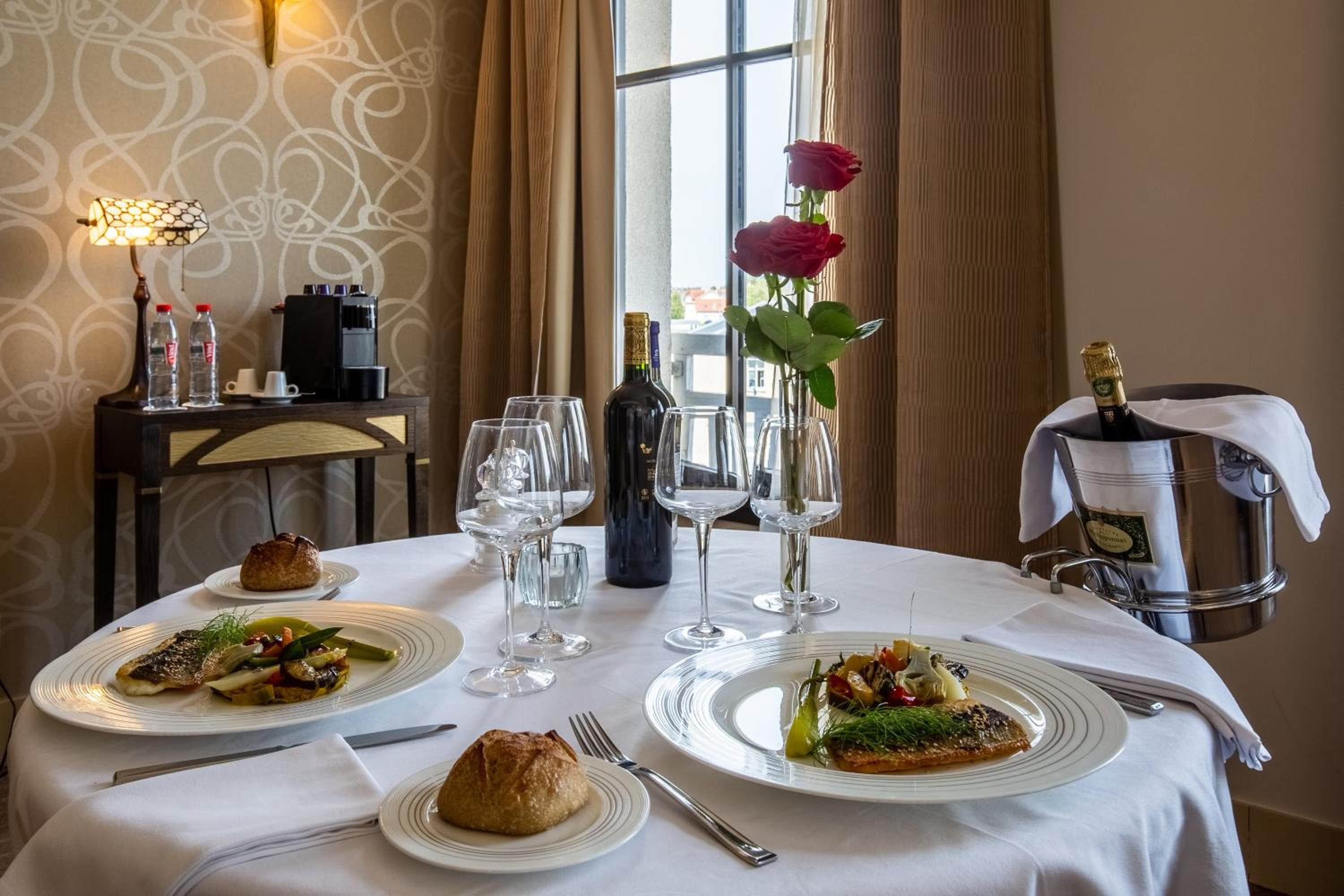 Indulge in French cuisine at our on-site restaurant, le Jehan, where local products shine. Enjoy a selection of wines and a variety of ripened cheeses. Start your day with a delicious breakfast served in-room for added convenience.