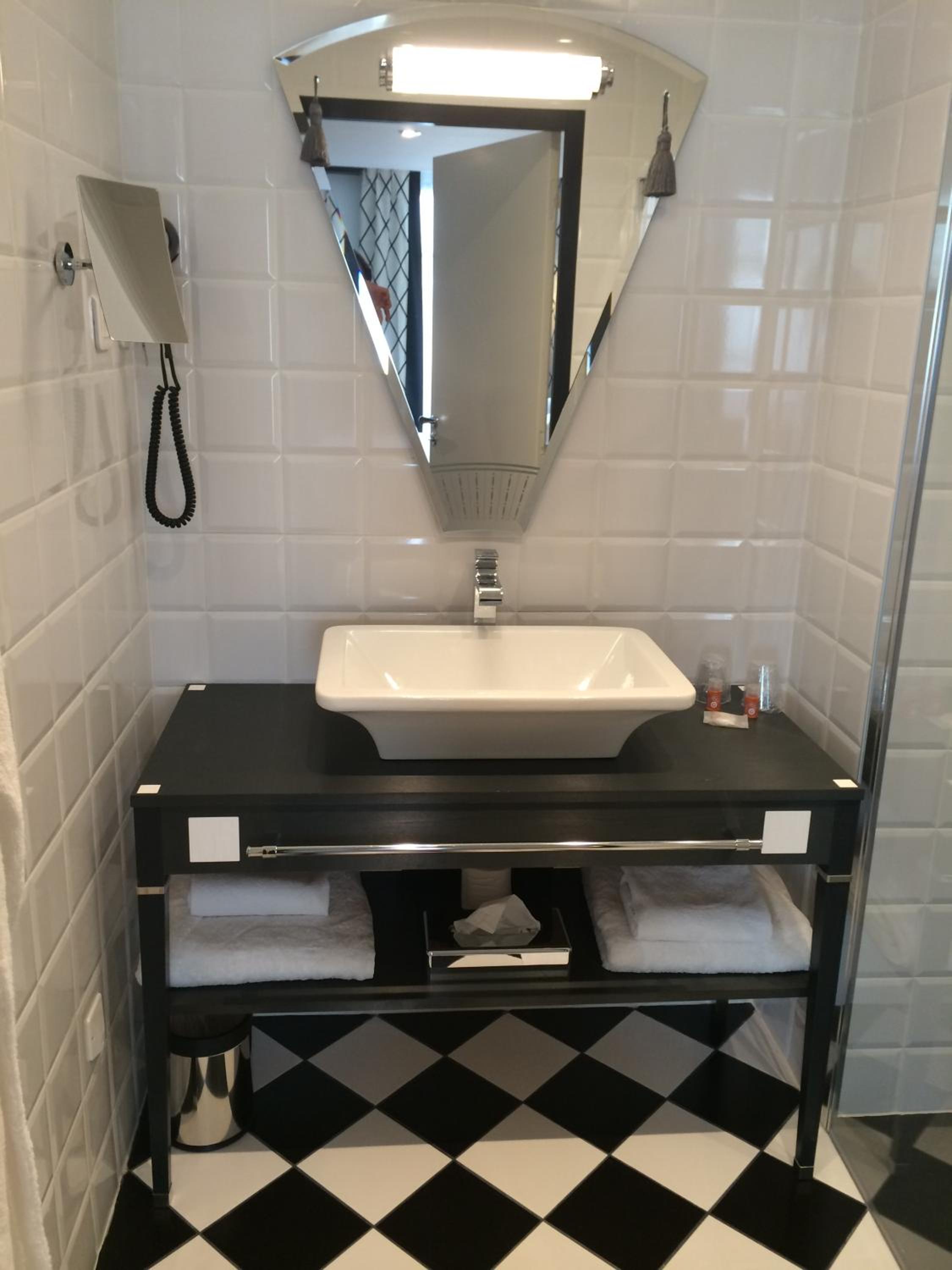 La chambre m’a semblé un peu petite, entre la porte de la salle de bain et le bureau fauteuil, on ne pouvait plus faire le tour. Le lit « king size » est en réalité composé de deux matelas, créant un creux au milieu. La propreté du bac à douche laissait à désirer : les joints étaient noircis et mal ajustés, ce qui faisait que j’inondais le sol à chaque douche. J’aurais également apprécié la présence d’une bouilloire dans la chambre ainsi qu’un sèche serviette ou plus de portant pour les draps de bain humide. Il manque aussi un plafonnier dans la chambre.