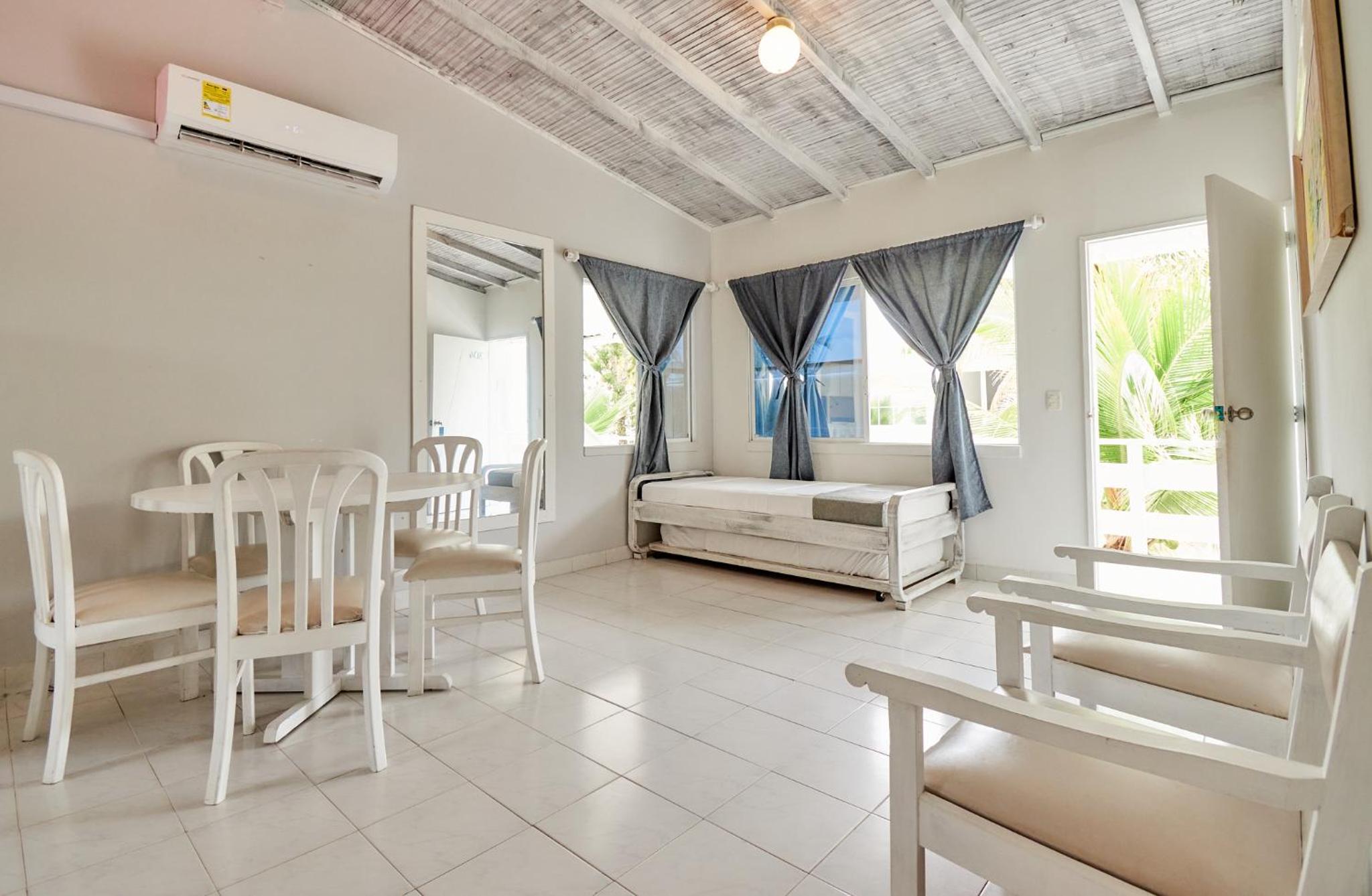 Tiene publicidad engañosa, la cocina no funciona y no deberían tener fotos de esta, o aclarar qué NO está habilitada. La relación costo instalaciones y servicios, es muy mala, el lugar esta deteriorado, no es cómodo, no hay suficiente aire acondicionado, el único baño, pésimo estado.