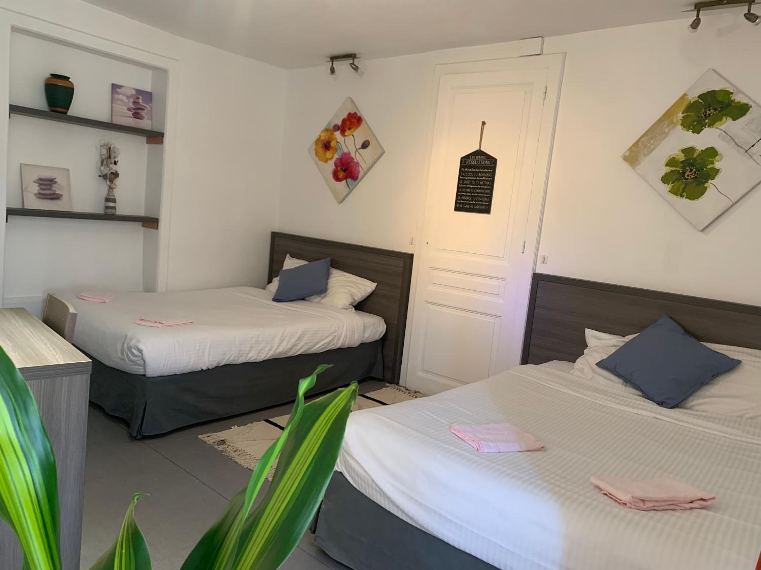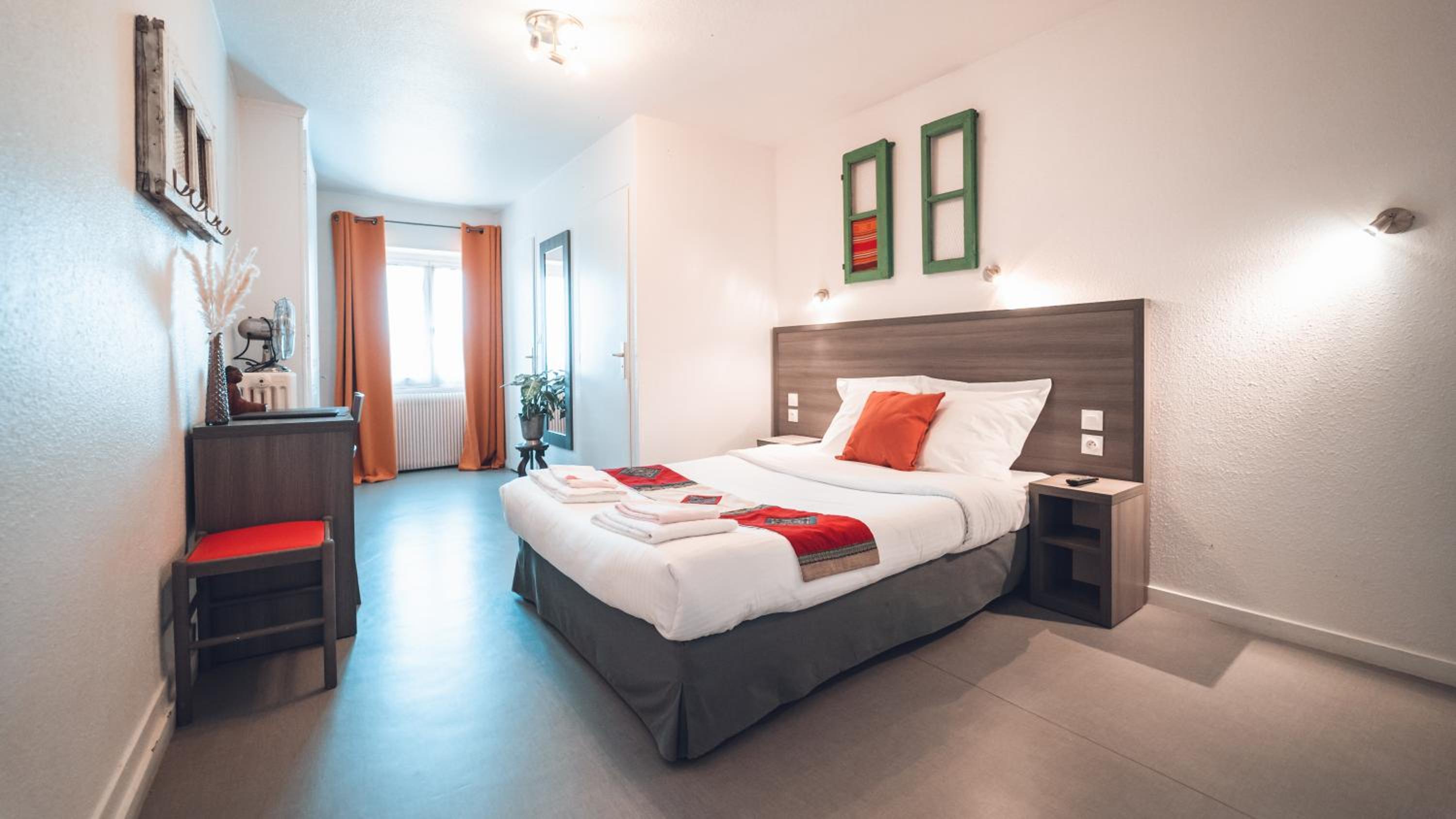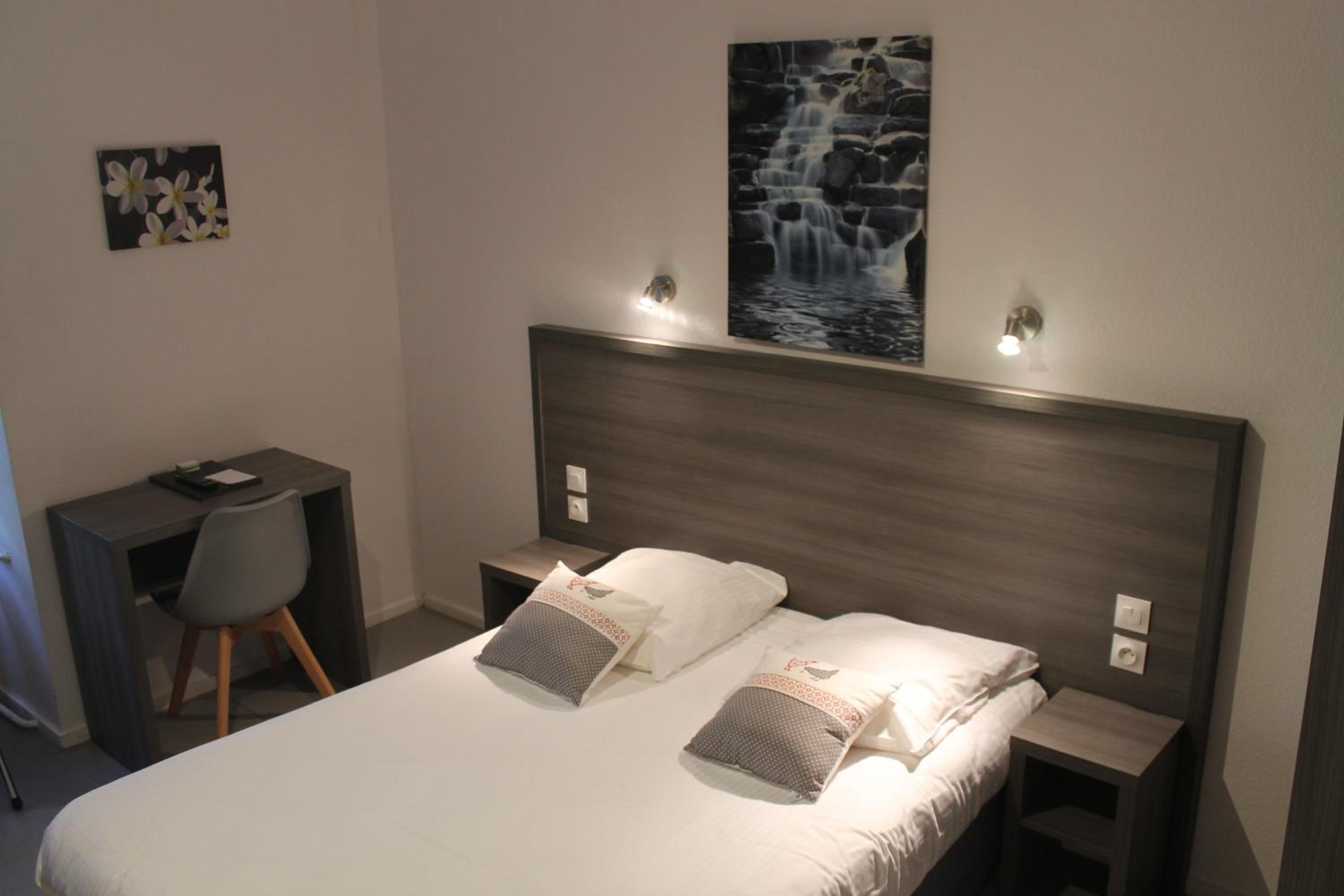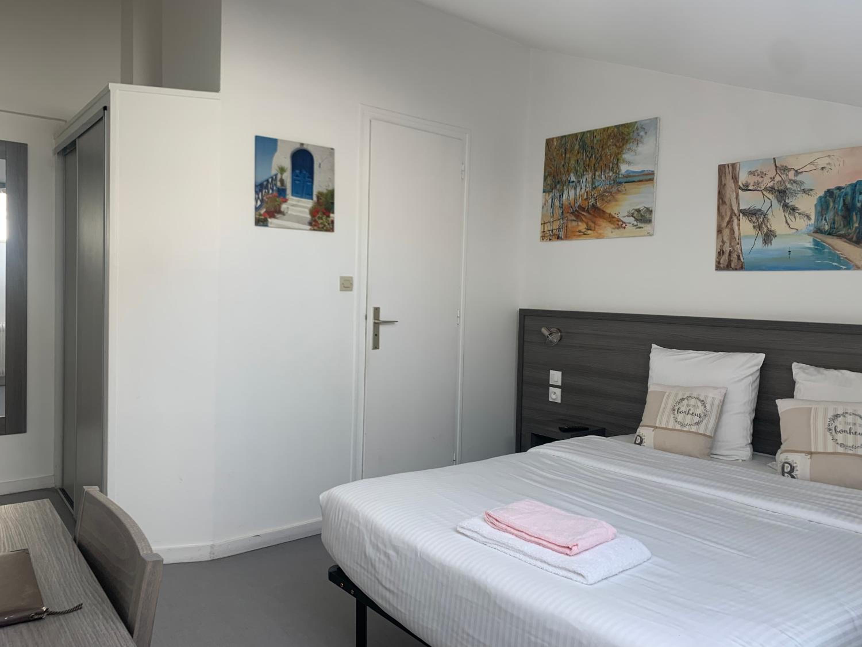 Parking gratuit aux abords et parking privatif. Personnel attentionné. Chambre propre et calme.
