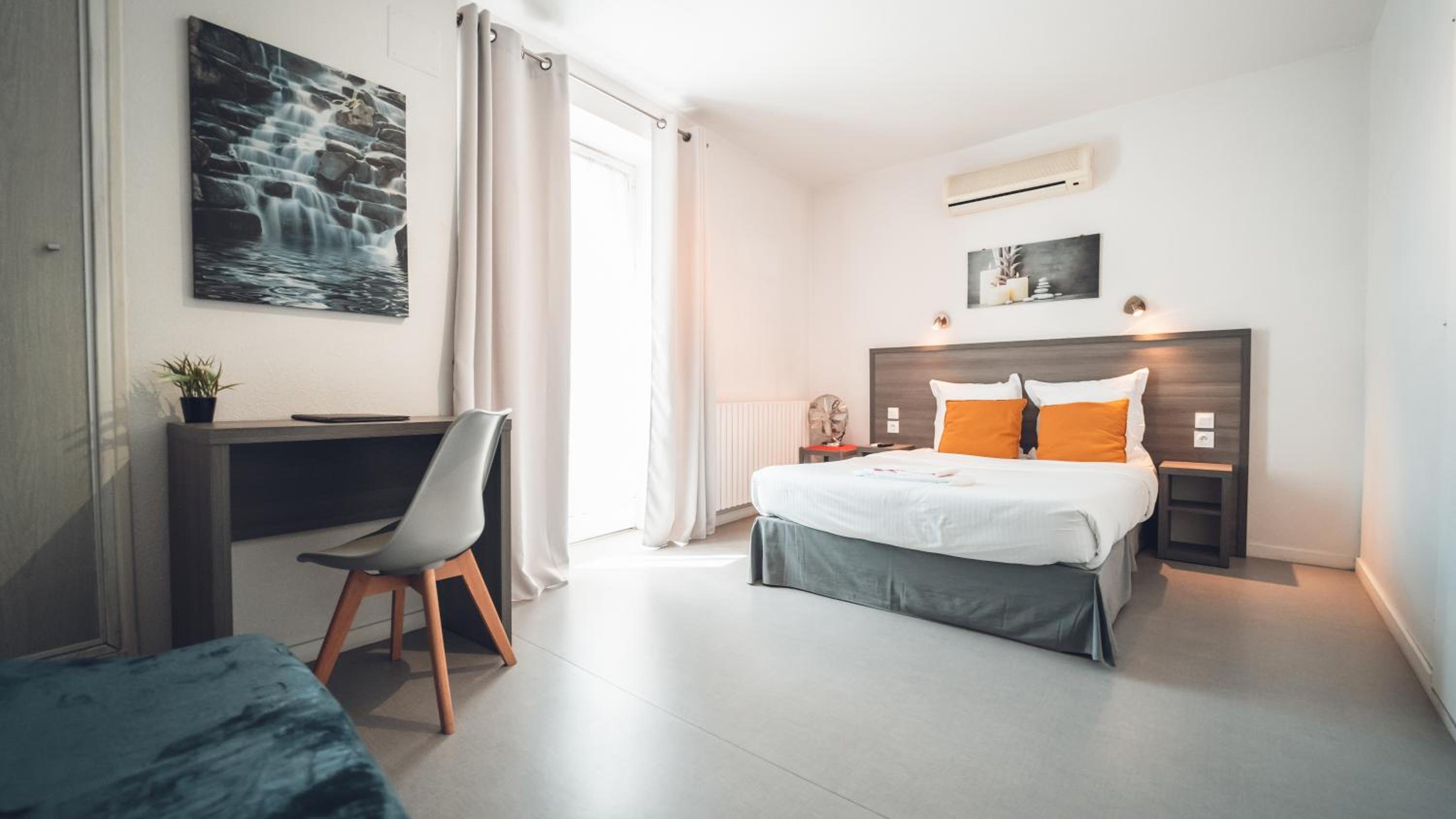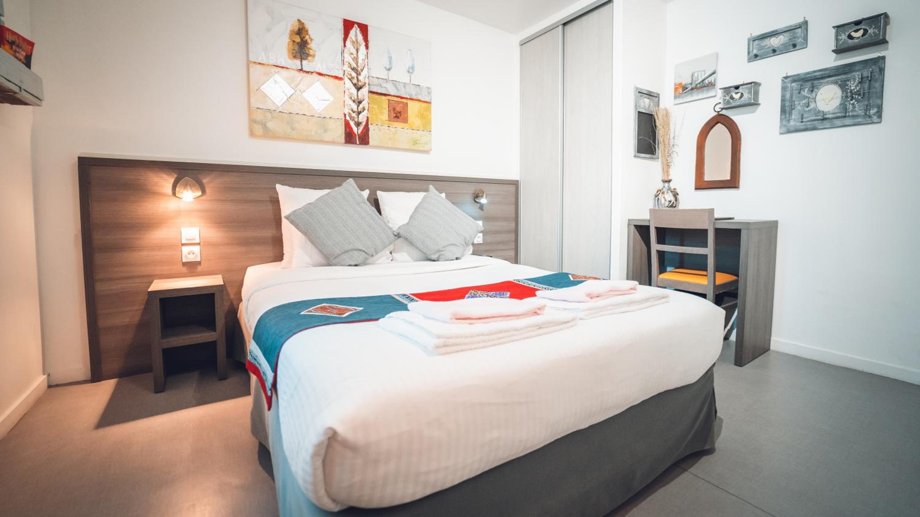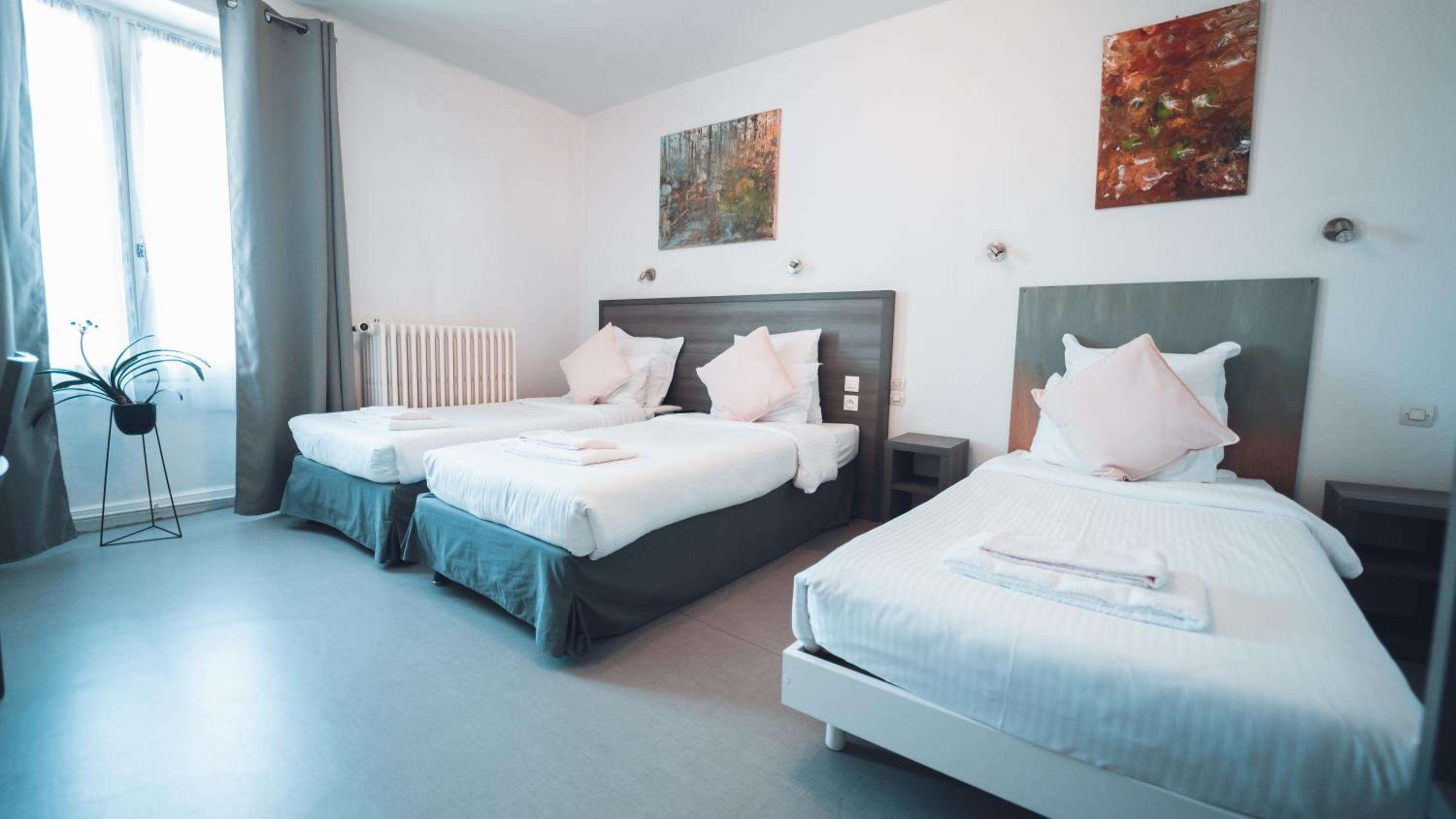 Parking gratuit aux abords et parking privatif. Personnel attentionné. Chambre propre et calme.