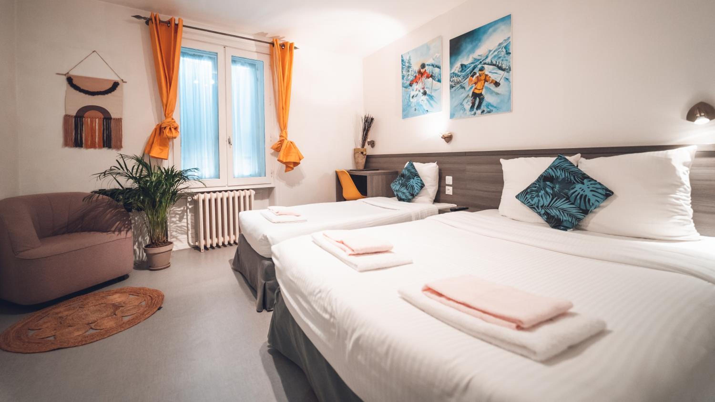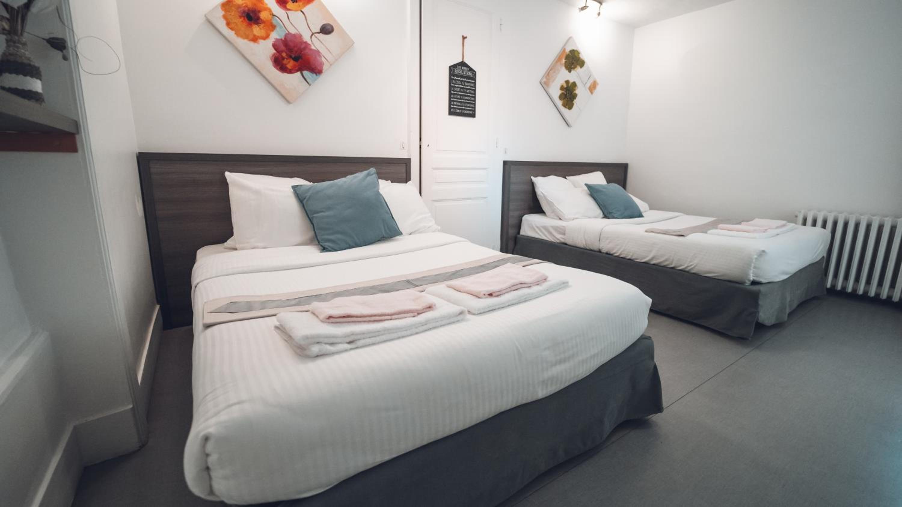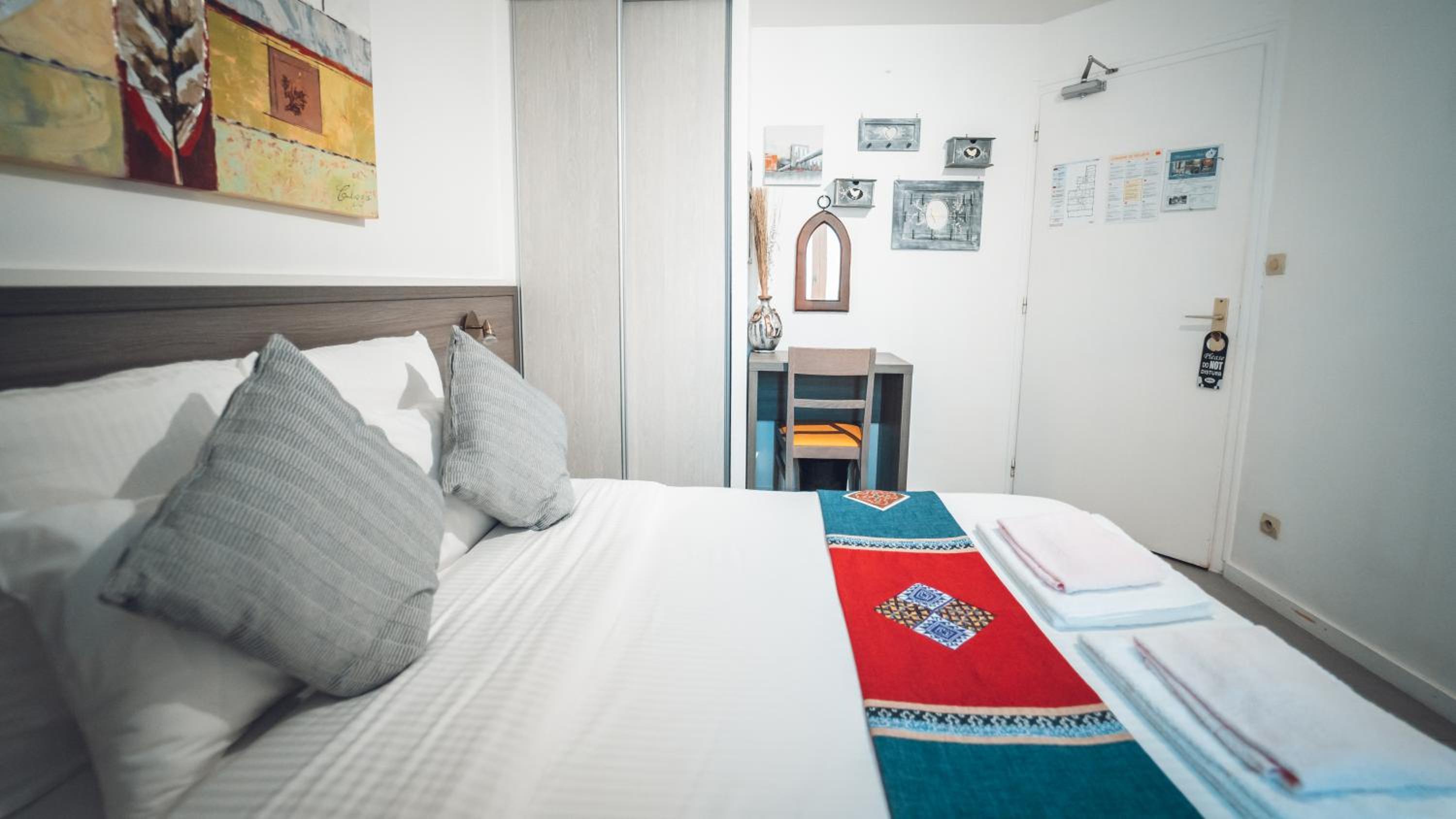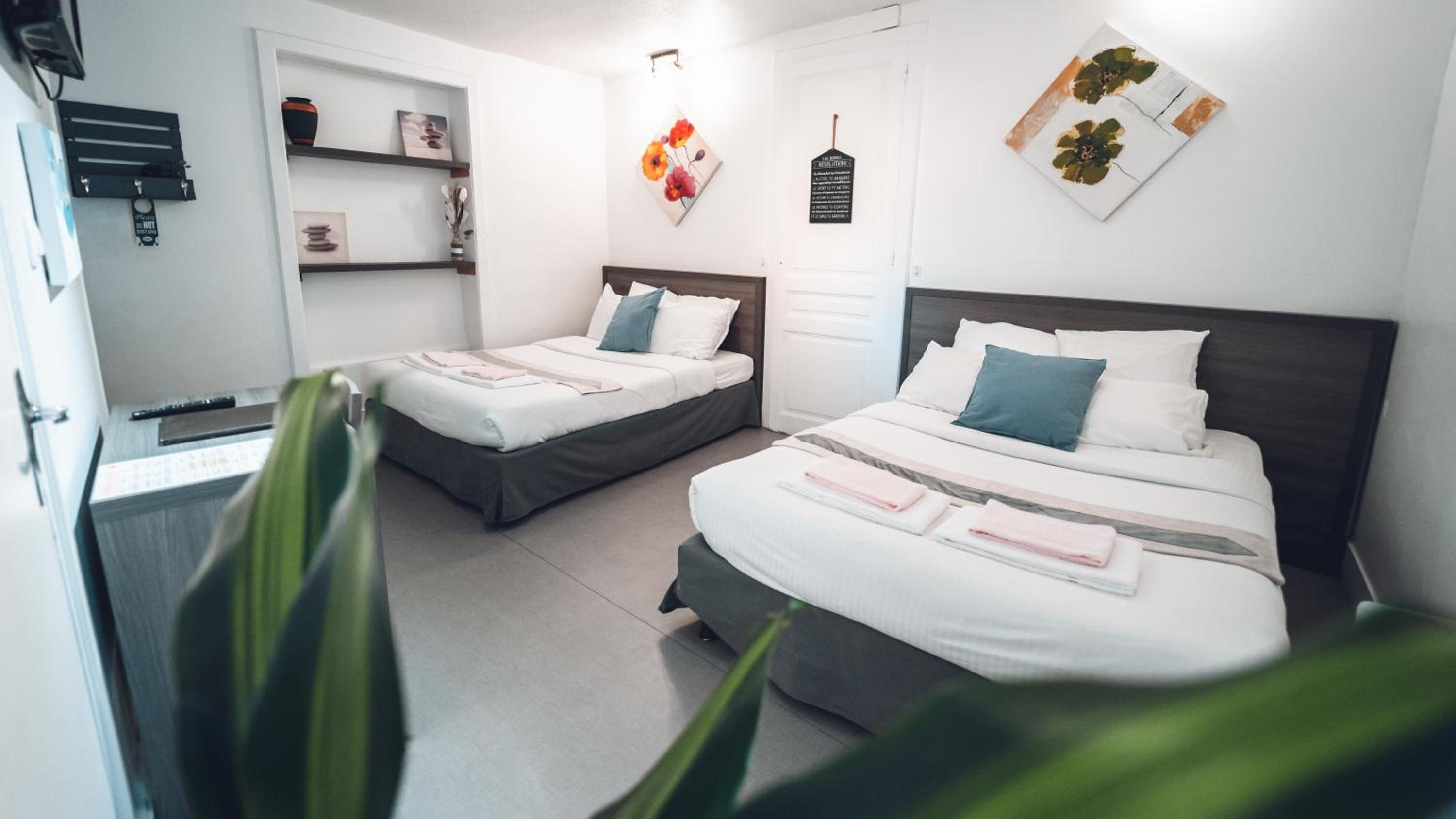 Parking gratuit aux abords et parking privatif. Personnel attentionné. Chambre propre et calme.