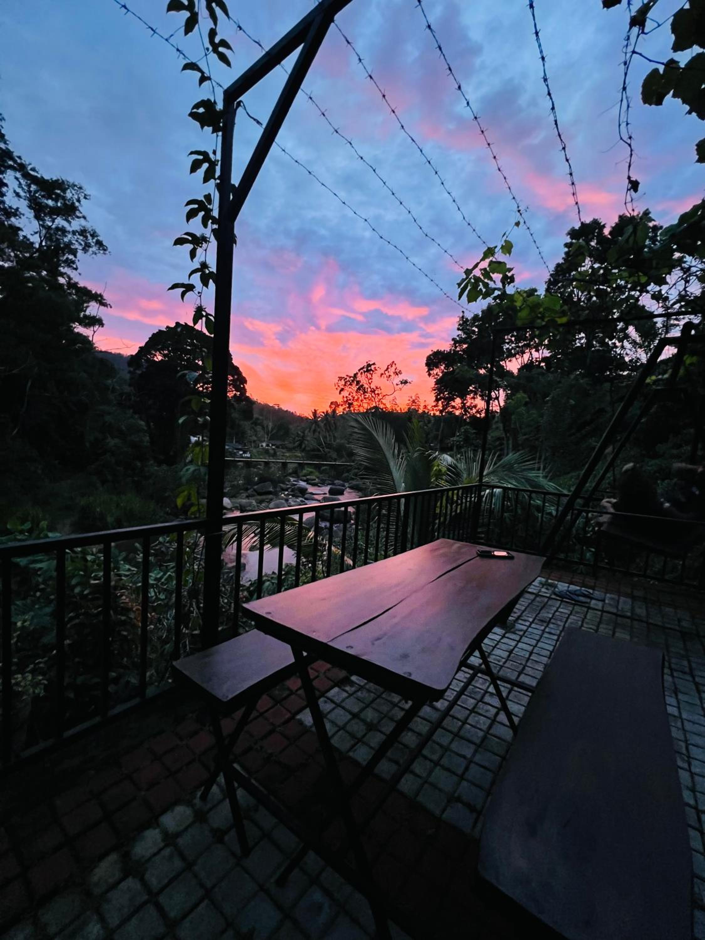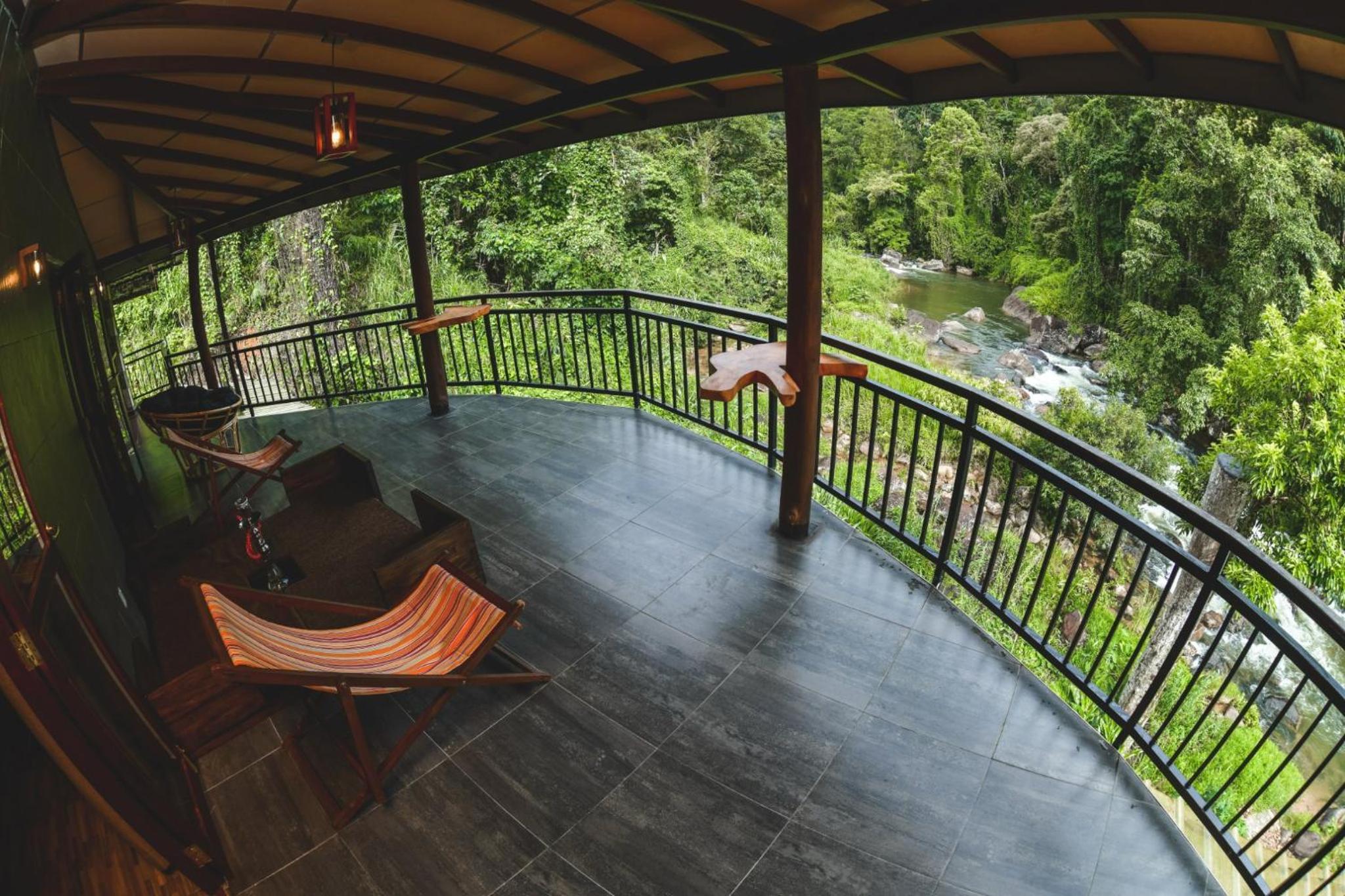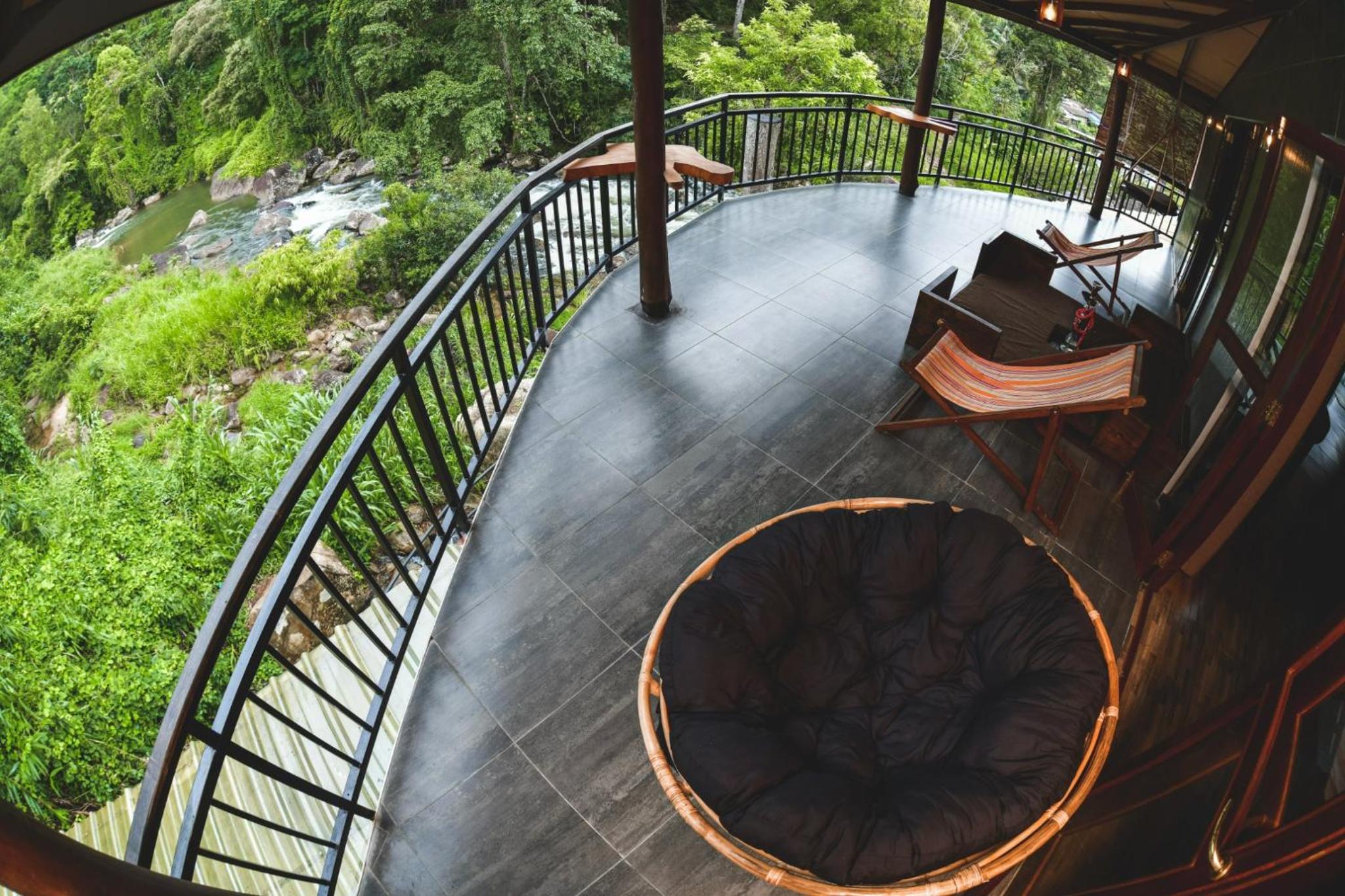 位于大自然内,周围是森林和溪流,环境优美。二楼房间的三面阳台可以360度观赏这些景色。而且阳台上的吊床和躺椅等设施非常舒服。住宿的工作人员非常热情和友好。早餐丰盛,晚餐价格实惠。