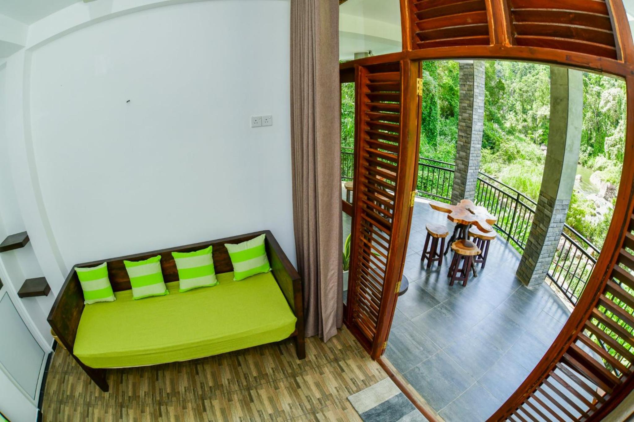 This was the best stay we had in all our time in Sri Lanka. Dolagawa Eco Resort is in a very rural location (but still easily accessible with a car/tuktuk driver and google maps) and is completely surrounded by nature. We were lucky enough to have the place to ourselves when we stayed, so a very peaceful and serene environment! The hosts were on hand when required and served us with Sri Lankan tea, great breakfasts and other good value delicious food. The vegetarian curry was excellent and well presented. The hosts also helped arrange our trip to Sinharaja Rainforest with a knowledgeable local guide. There are no shops, banks or restaurants locally but that is the alure of this place! The view from our balcony, overlooking the pool, forest clad river and waterfalls was amazing, and just a short walk down to explore and swim! At check out, our hosts ensured our easy onward journey by giving us a lift to the local town (Deniyaya) where tuktuks, taxi's and busses can be easily found.
