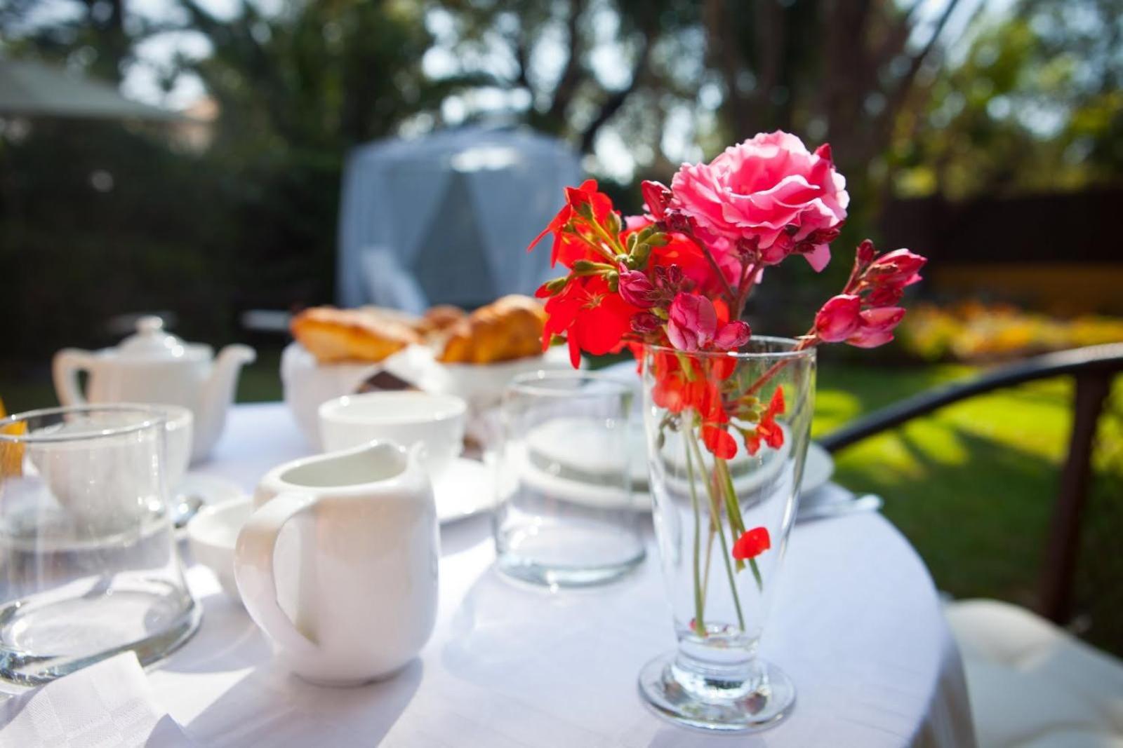 Excellent breakfast setting in the lovely gardens.