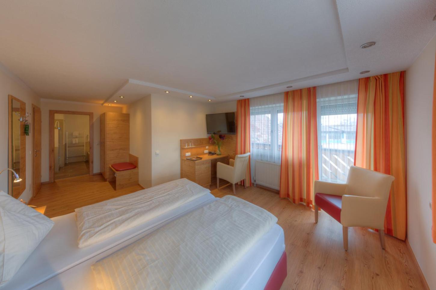 Hotel Leimer Bräu in Lenzing offers en-suite rooms with satellite TV, some even featuring a TV in the bathroom. Enjoy garden and city views from your room, along with modern amenities like free WiFi.