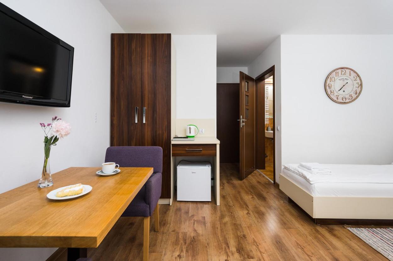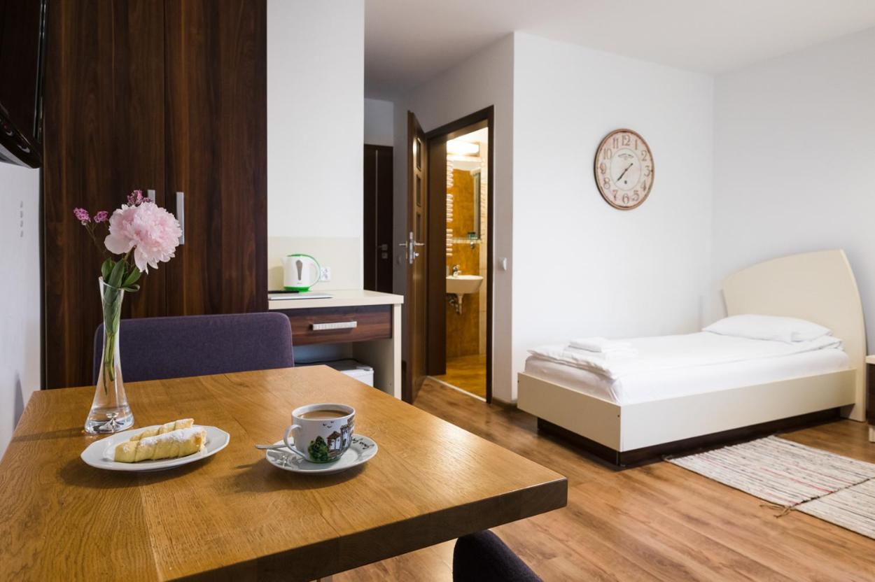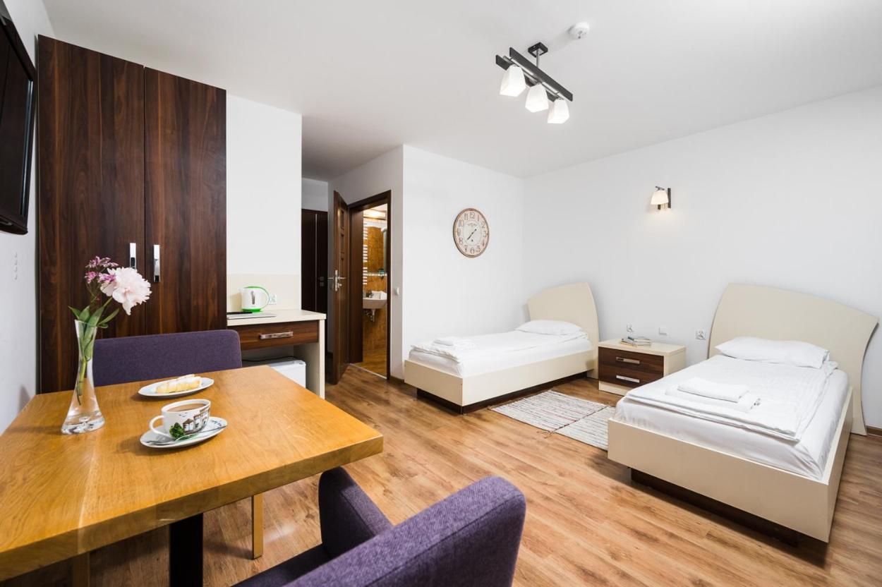 Modern Comforts: Each room at Gielarek Hotel is thoughtfully equipped with a desk, flat-screen TV, private bathroom, and cozy beddings, ensuring a comfortable stay for every guest.