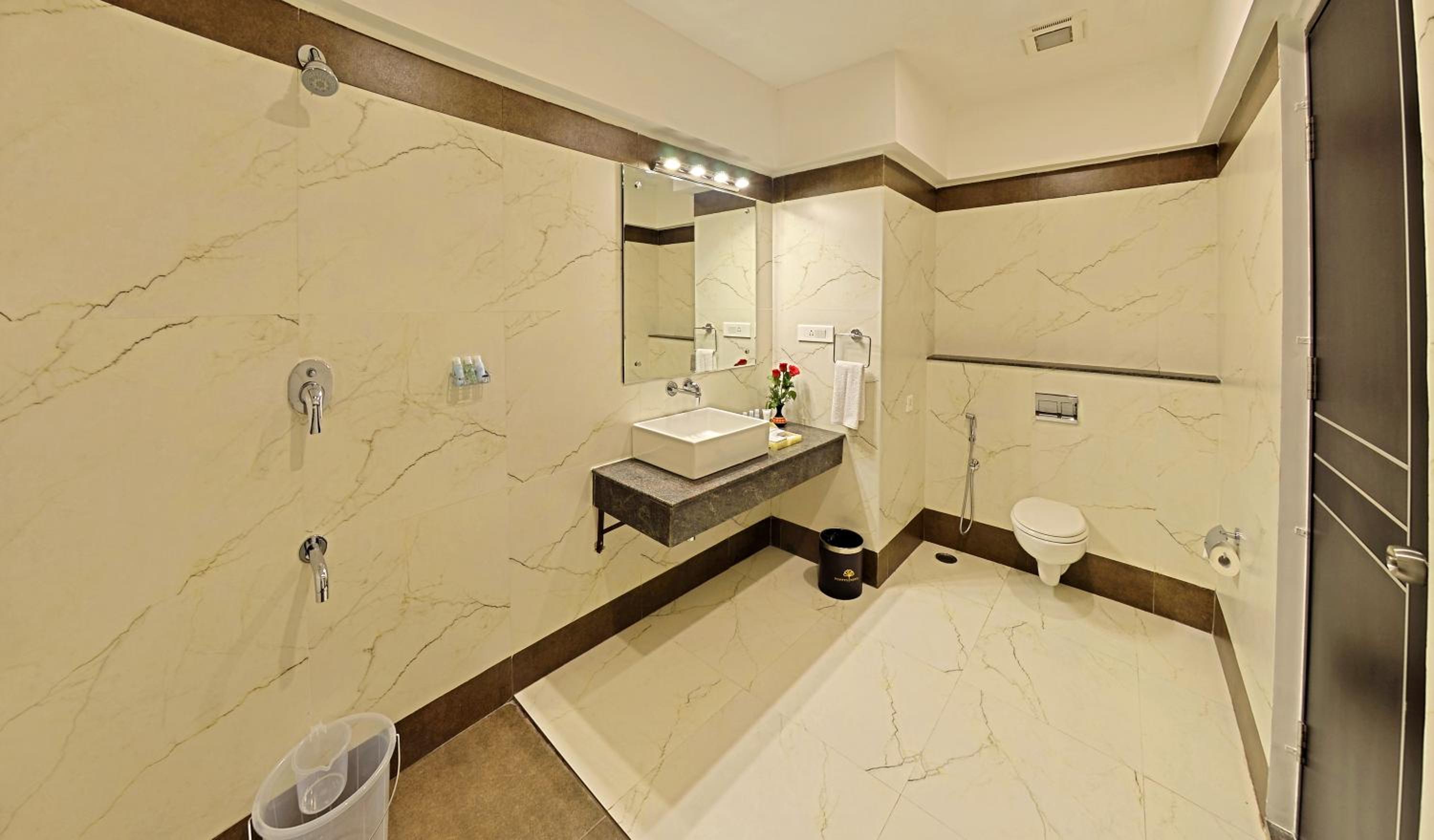 Poppys Hotel in Madurai offers spacious rooms with modern amenities including TV, air conditioning, and minibar. Enjoy city views and relax in the comfortable seating area.