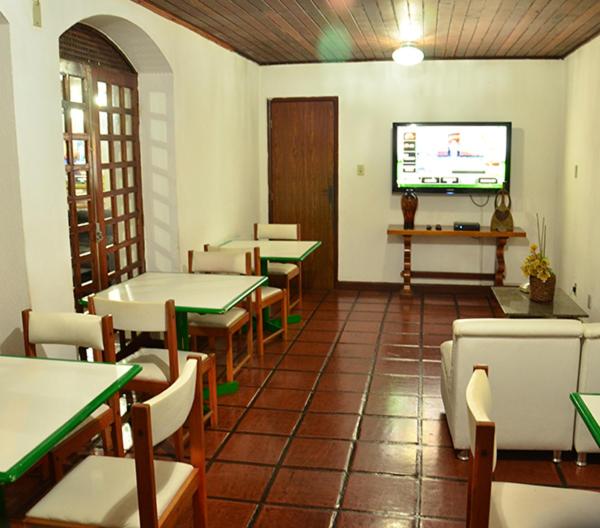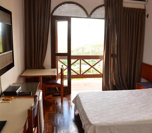 Modern Comforts: Each room at Hotel Serra do Ouro is thoughtfully designed, featuring amenities like a flat-screen TV, air conditioning, and a private bathroom with free toiletries. Some rooms even boast a balcony for a picturesque view.