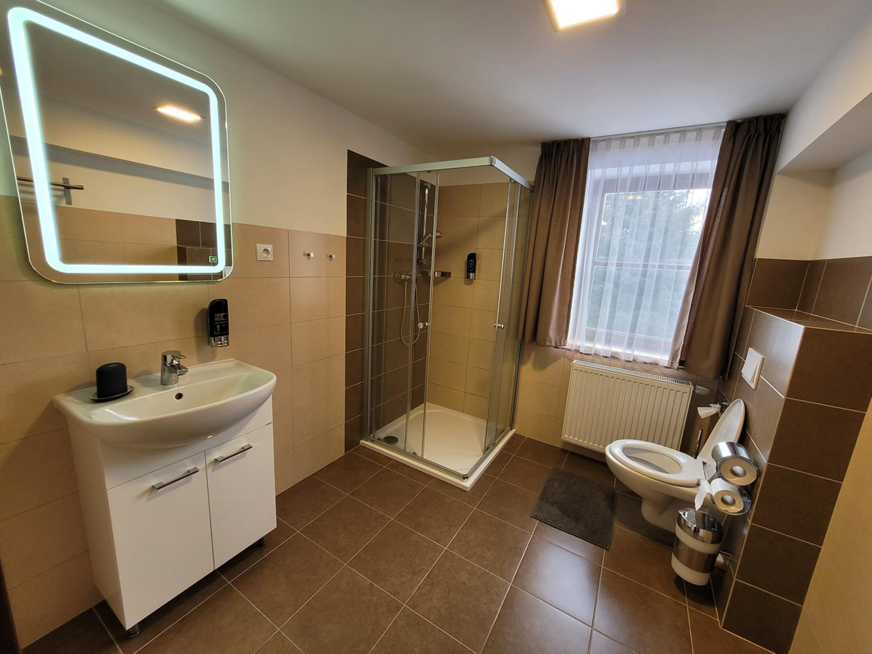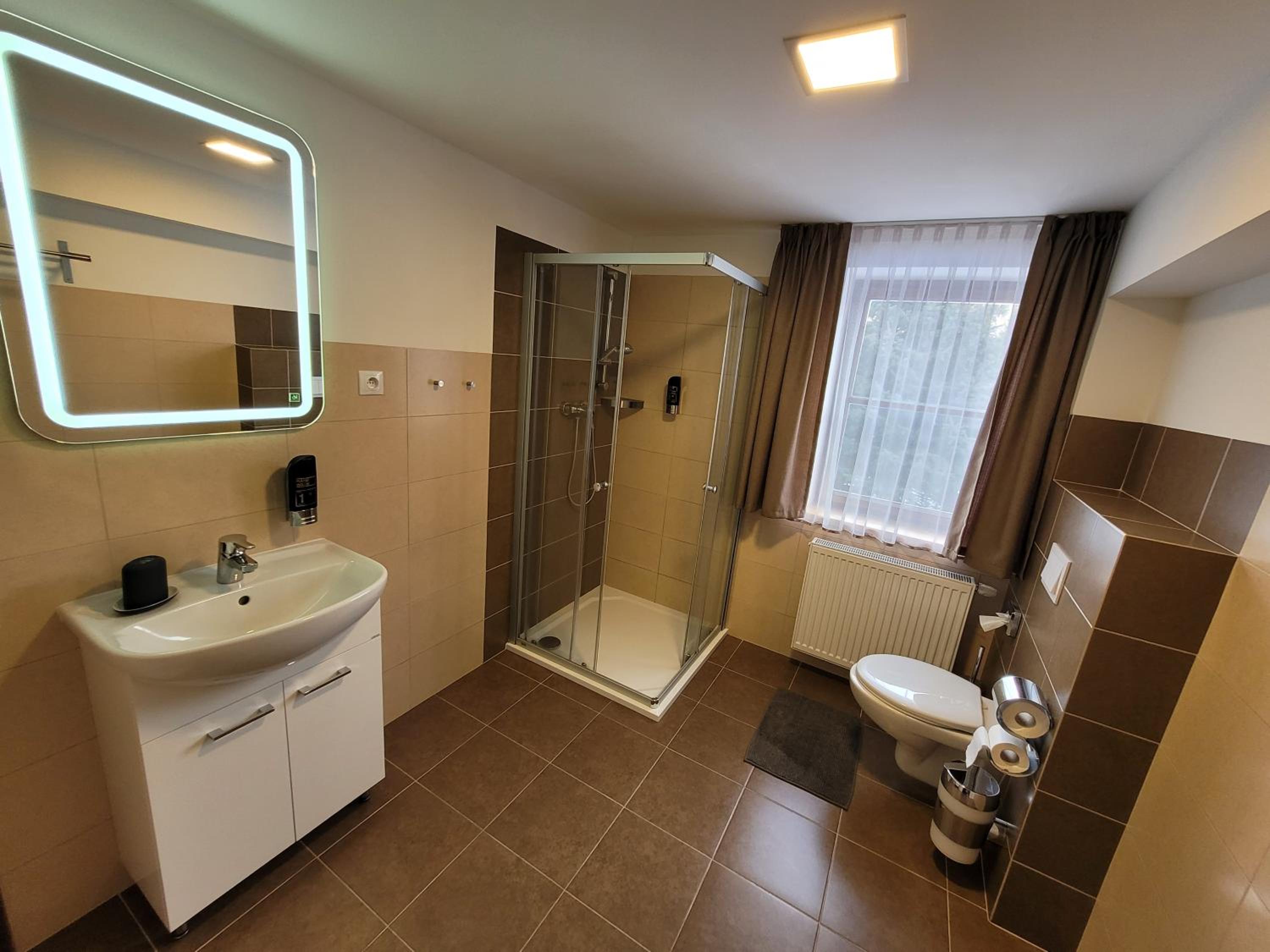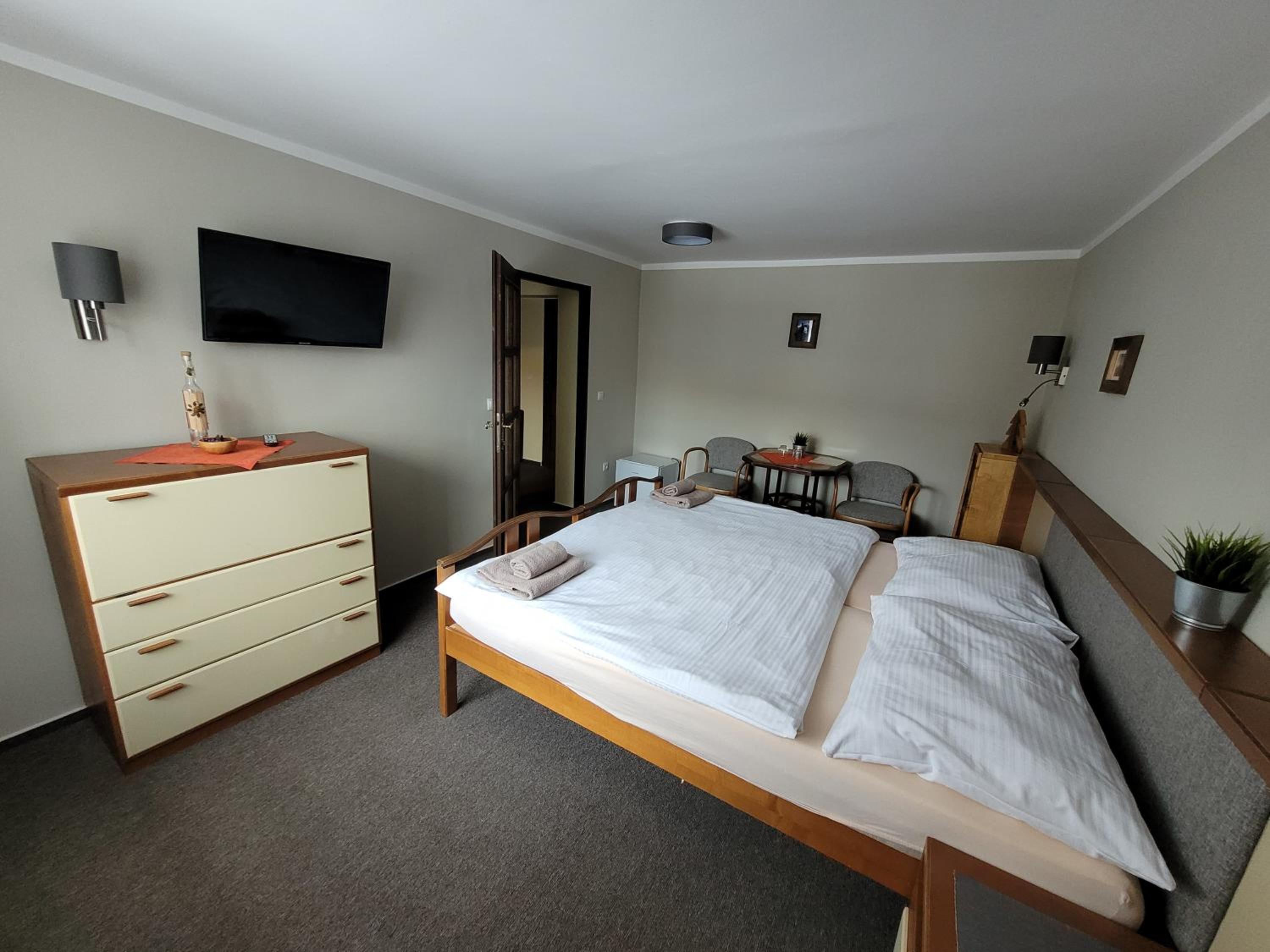 Velmi klidná lokalita, oceňuji klid a ticho. Dostatek parkovacích míst. Velmi chutné snídaně, široký výběr jídla i pití, kávovar k dispozici. Postel za mě pohodlná, navíc i deka na přikrytí. K dispozici byly ručníky i hygienické potřeby. Na pokoji TV a malá lednice, možnost zapůjčení fénu na recepci.